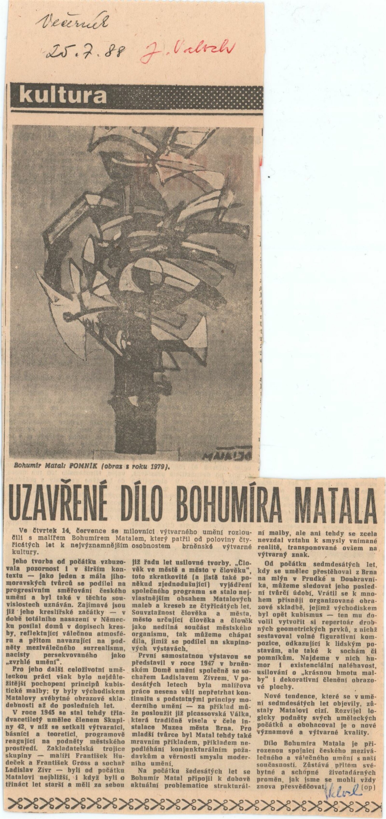 Bohumír Matal: Dům umění, 1. patro, 20. 4. – 23. 5. 1982 / Text: Anna Janištinová. – Gottwaldov: Oblastní galerie výtvarného umění, 1982. – 35 s., obr., DU 746. – MZK