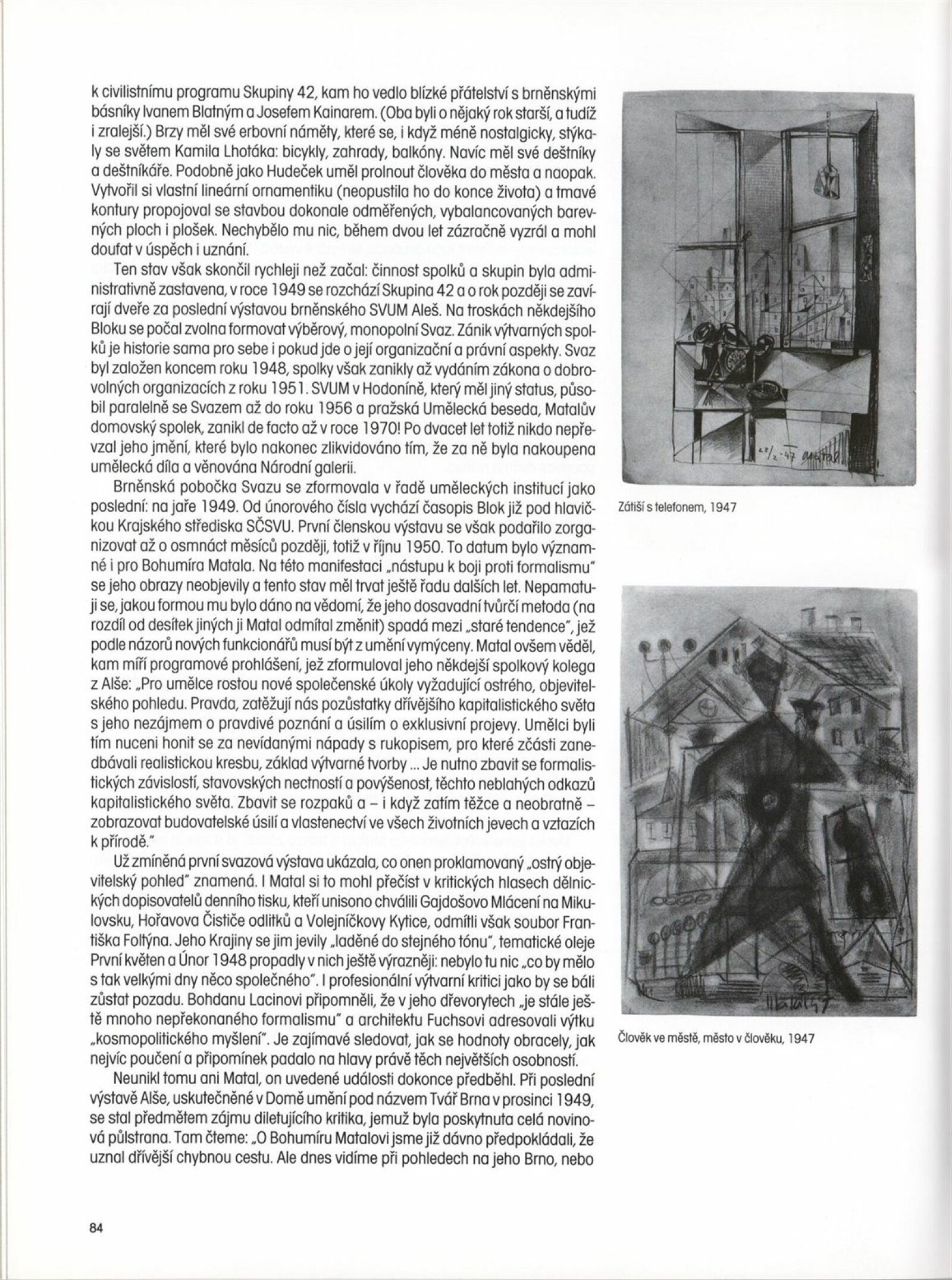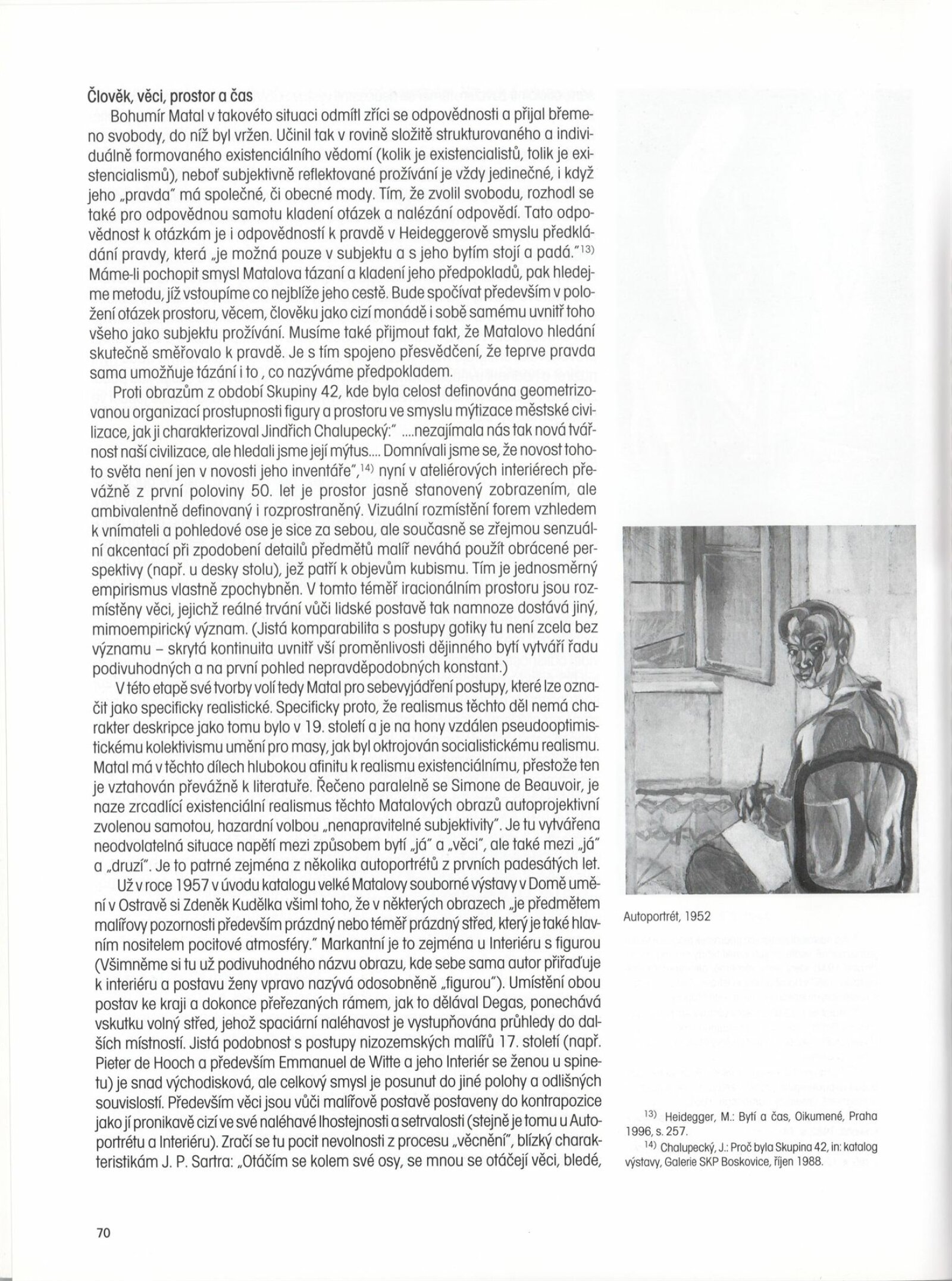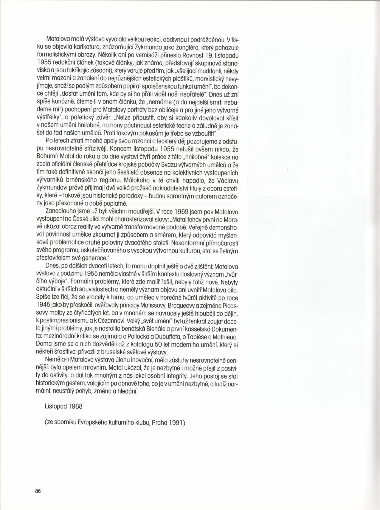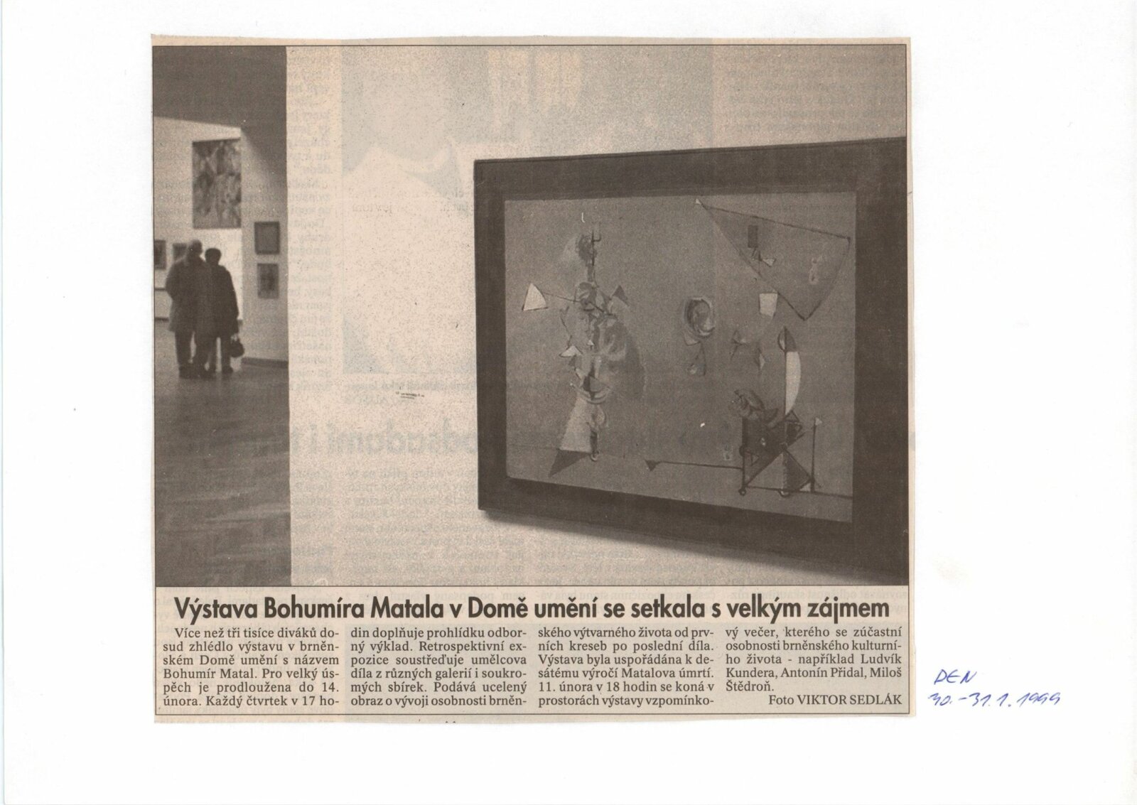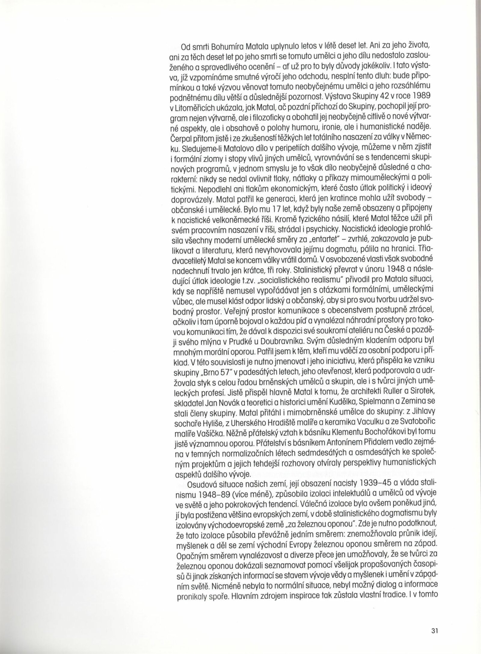 Bohumír Matal: Dům umění města Brna, 18. 12. 1998 – 31. 1. 1999 / Texty: Petr Holý, Jan Kačer, Ludvík Kundera, Pavel Liška, Marcela Macharáčková, Antonín Přidal, Petr Spielmann, Kateřina Svobodová, Lada H. Vacková, Igor Zhoř. – Brno: DUmB, 1998. – 173 s., obr., seznam vystavených prací [12] s., fotografická dokumentace, životopis, výstavy, realizace v architektuře, scénografie, knižní grafika a ilustrace, bibliografie, seznam obrazů ve veřejných sbírkách, DU 1088. – MZK