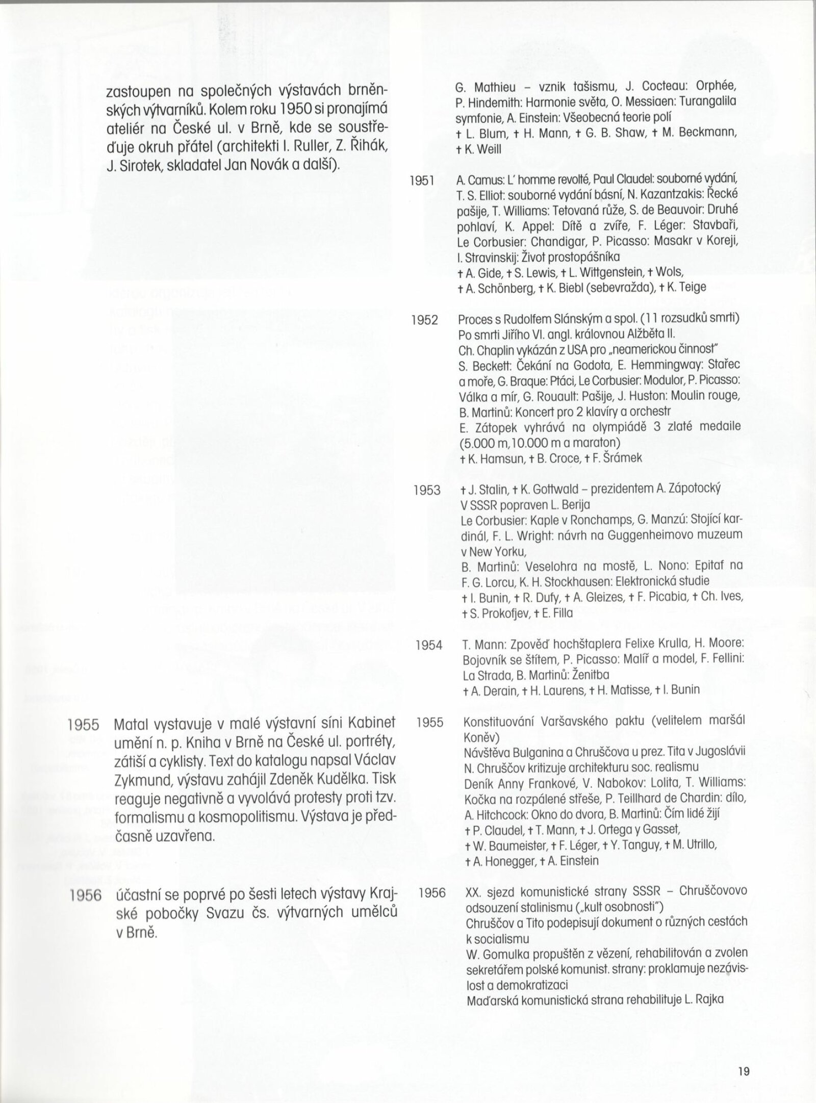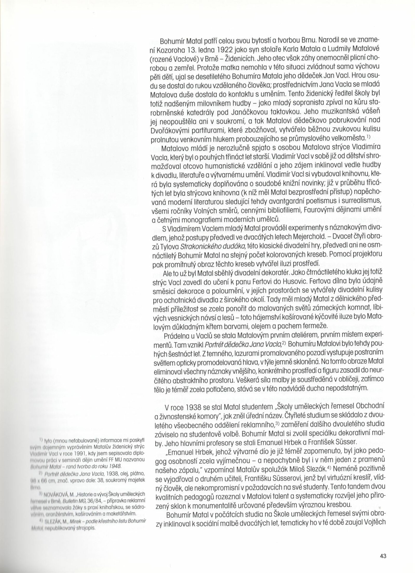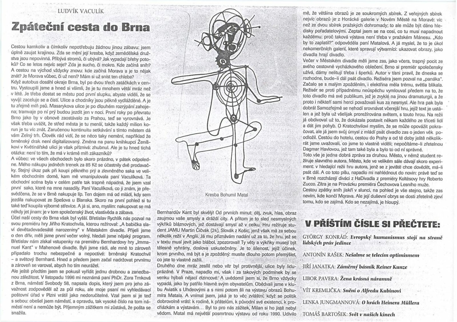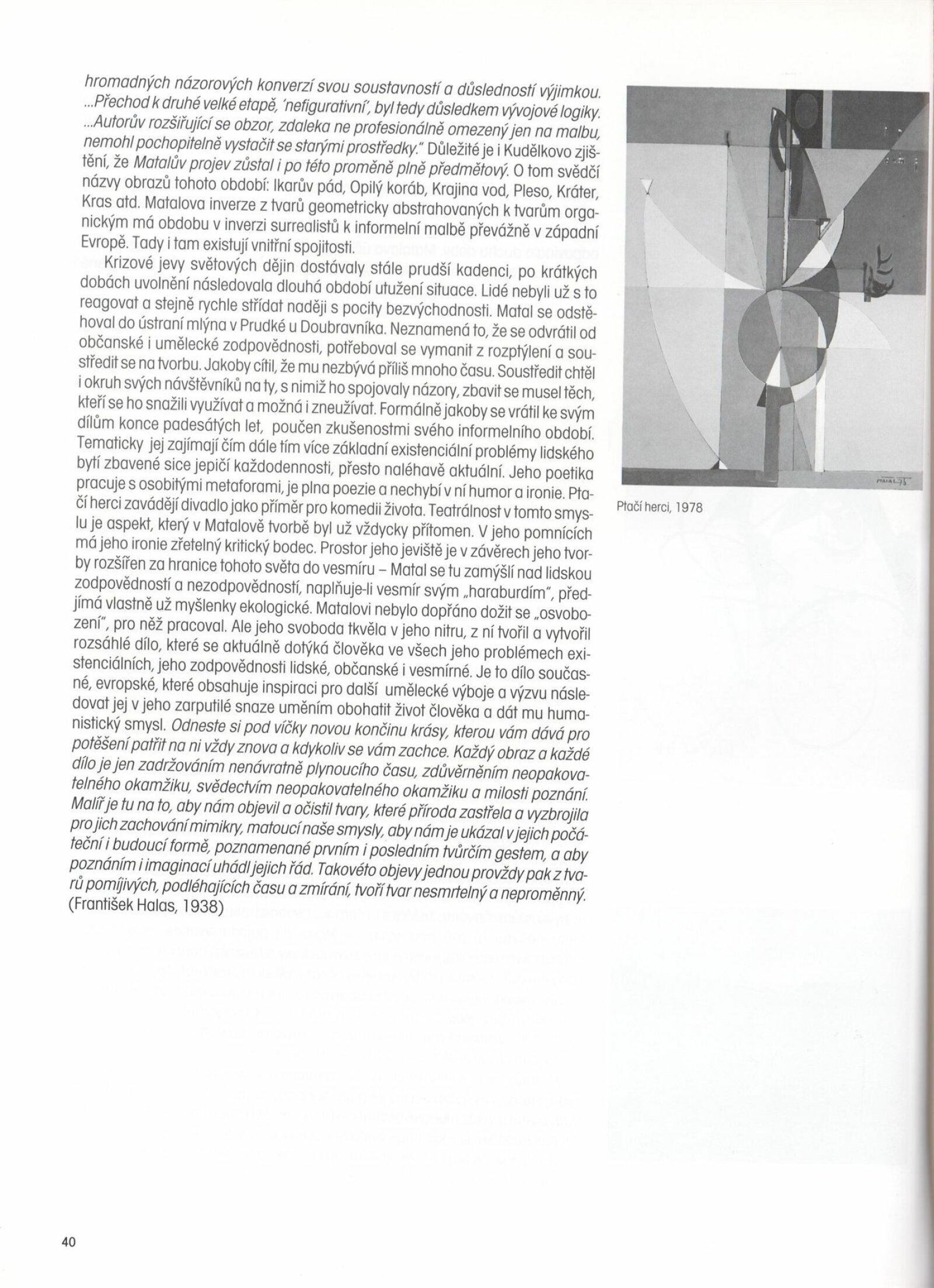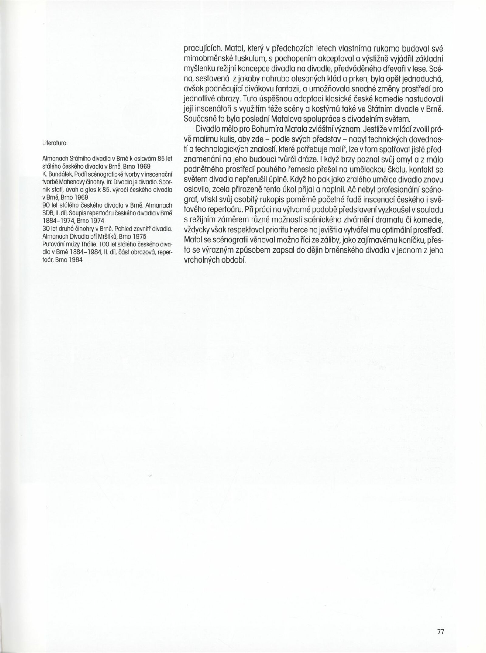 Bohumír Matal: Dům umění města Brna, 18. 12. 1998 – 31. 1. 1999 / Texty: Petr Holý, Jan Kačer, Ludvík Kundera, Pavel Liška, Marcela Macharáčková, Antonín Přidal, Petr Spielmann, Kateřina Svobodová, Lada H. Vacková, Igor Zhoř. – Brno: DUmB, 1998. – 173 s., obr., seznam vystavených prací [12] s., fotografická dokumentace, životopis, výstavy, realizace v architektuře, scénografie, knižní grafika a ilustrace, bibliografie, seznam obrazů ve veřejných sbírkách, DU 1088. – MZK