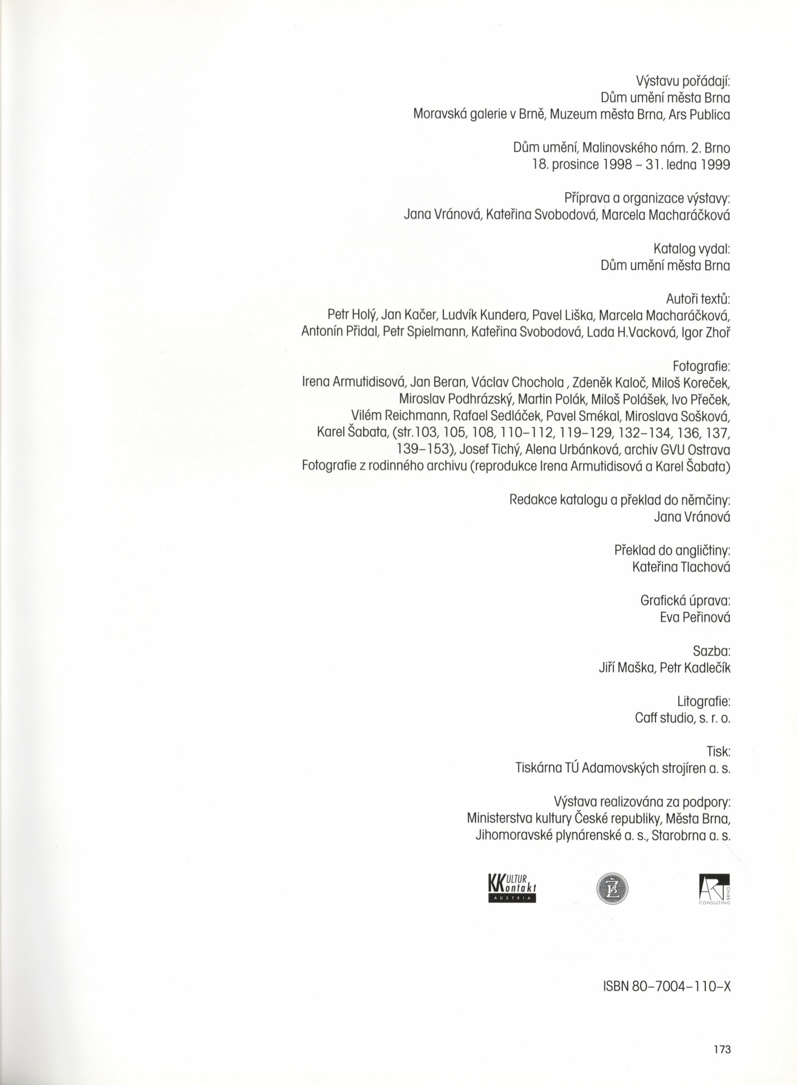 Výstavu zahájili Pavel Liška, Jana Vránová a Petr Spielmann. Na pozvánce je odlišné datum konání výstavy - 18. 12. – 31. 1. 1999.