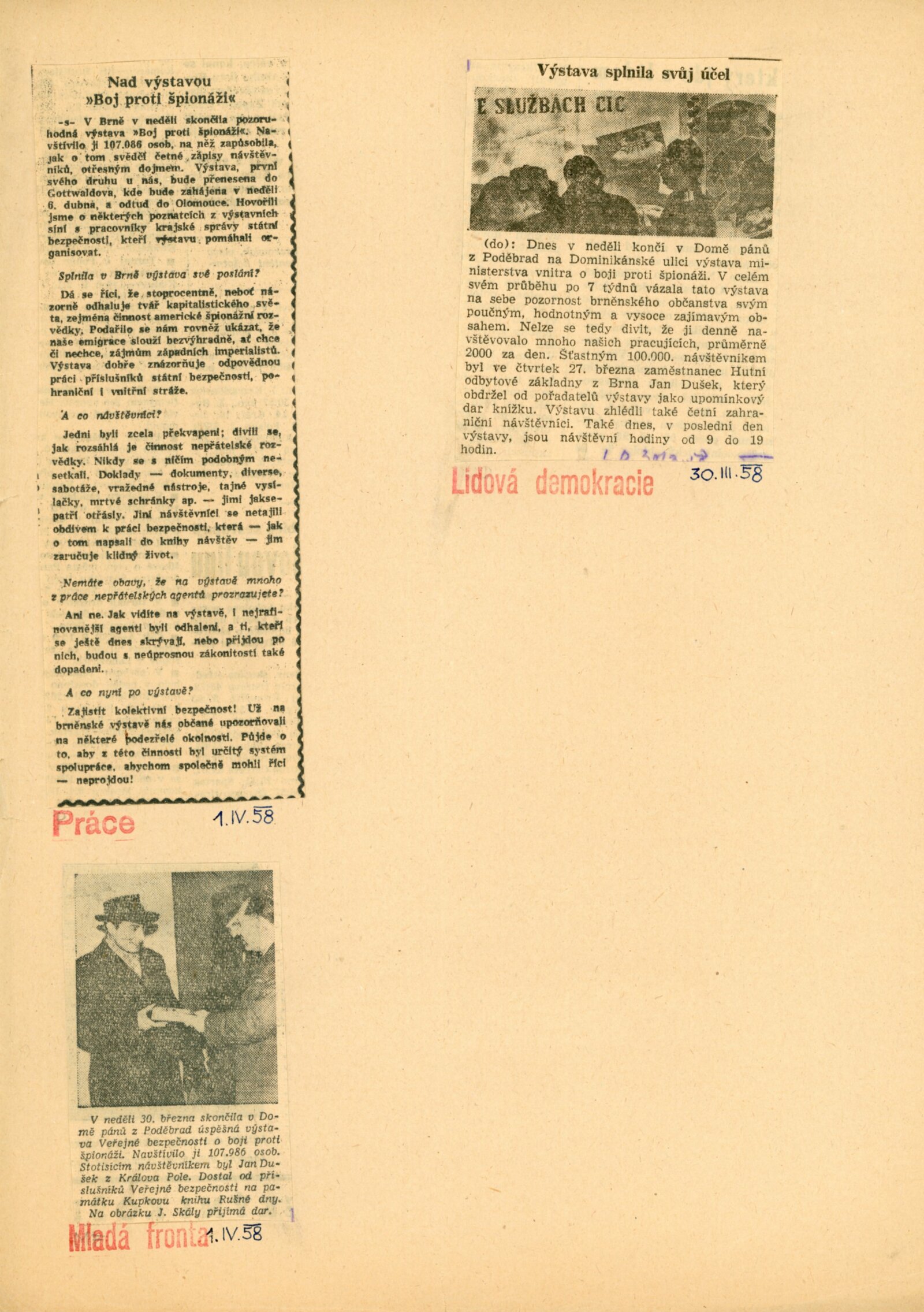 pozvánka, zápis o schůzce (deinstalace Mahenovy výstavy), recenze v tisku