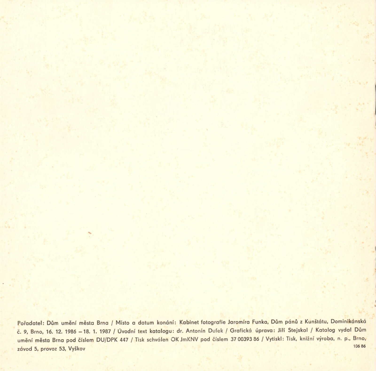 pozvánka, katalog, žádost o povolení výstavy, strojopis, provozní korespondence, žádost o výstavní termín v Kabinetu fotografie, recenze v tisku