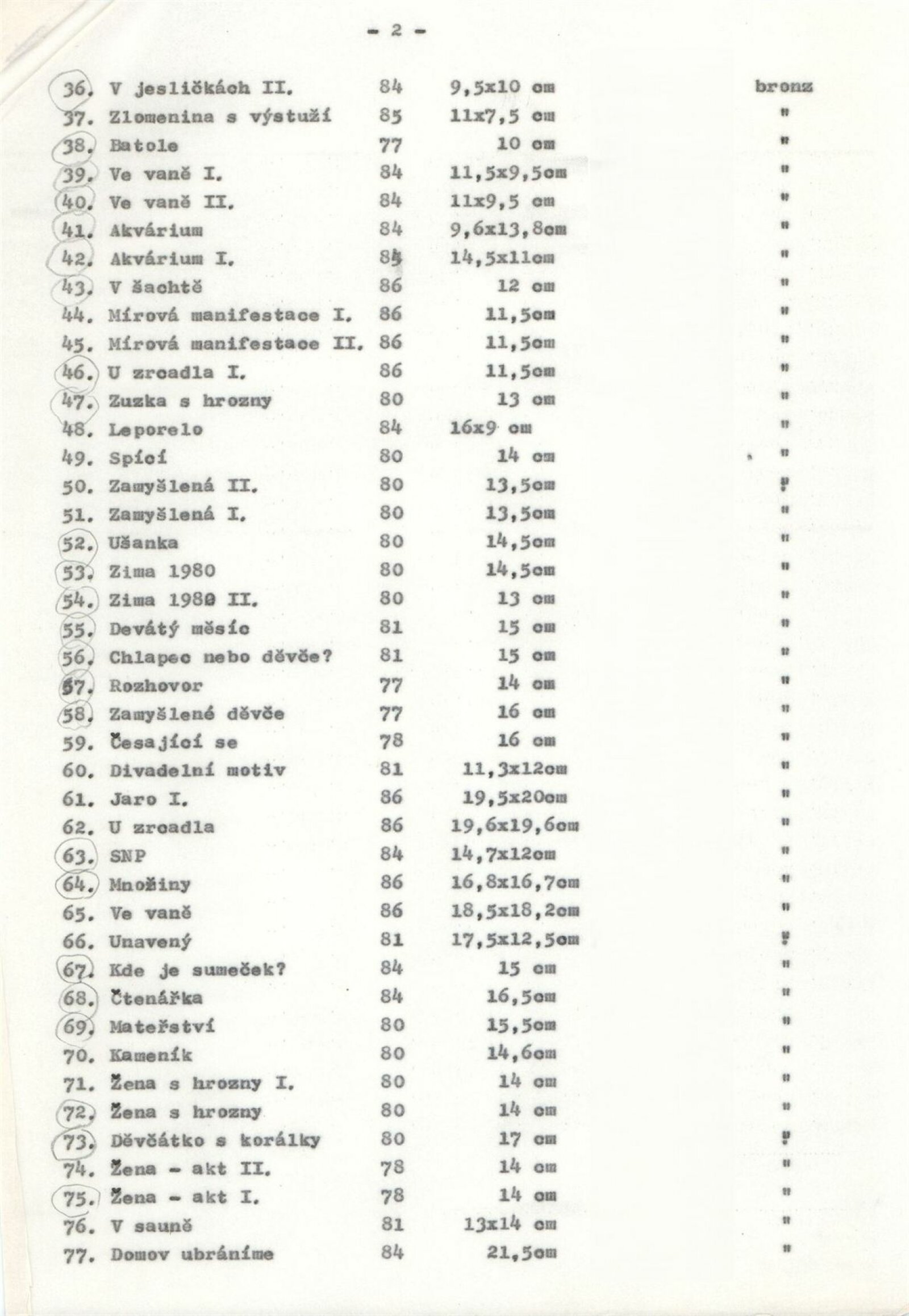 pozvánka, katalog, fotografie děl, výstavy a vernisáže, pojistný seznam, předávací protokoly, provozní korespondence (žádost o výstavu), plakát, recenze v tisku