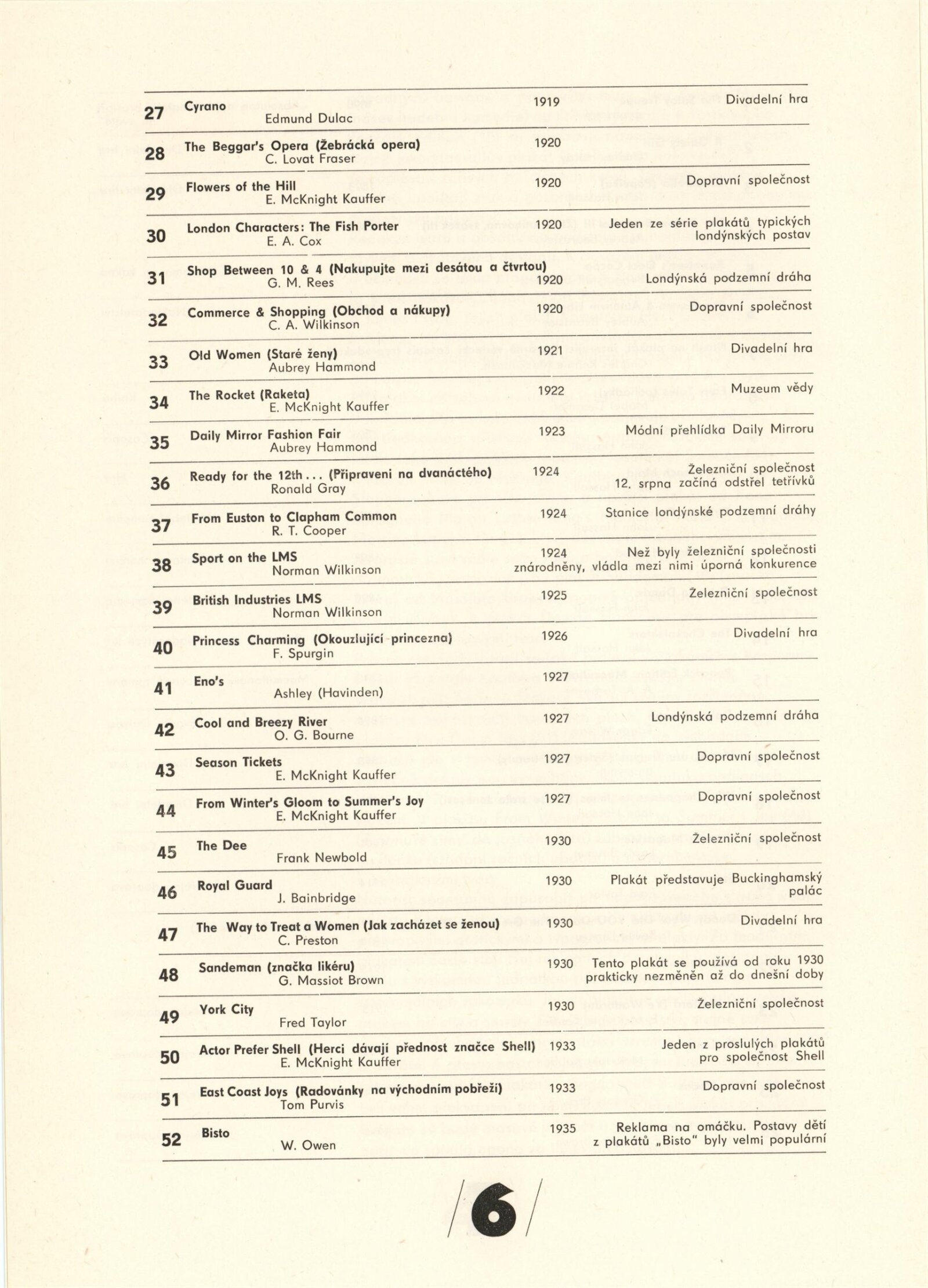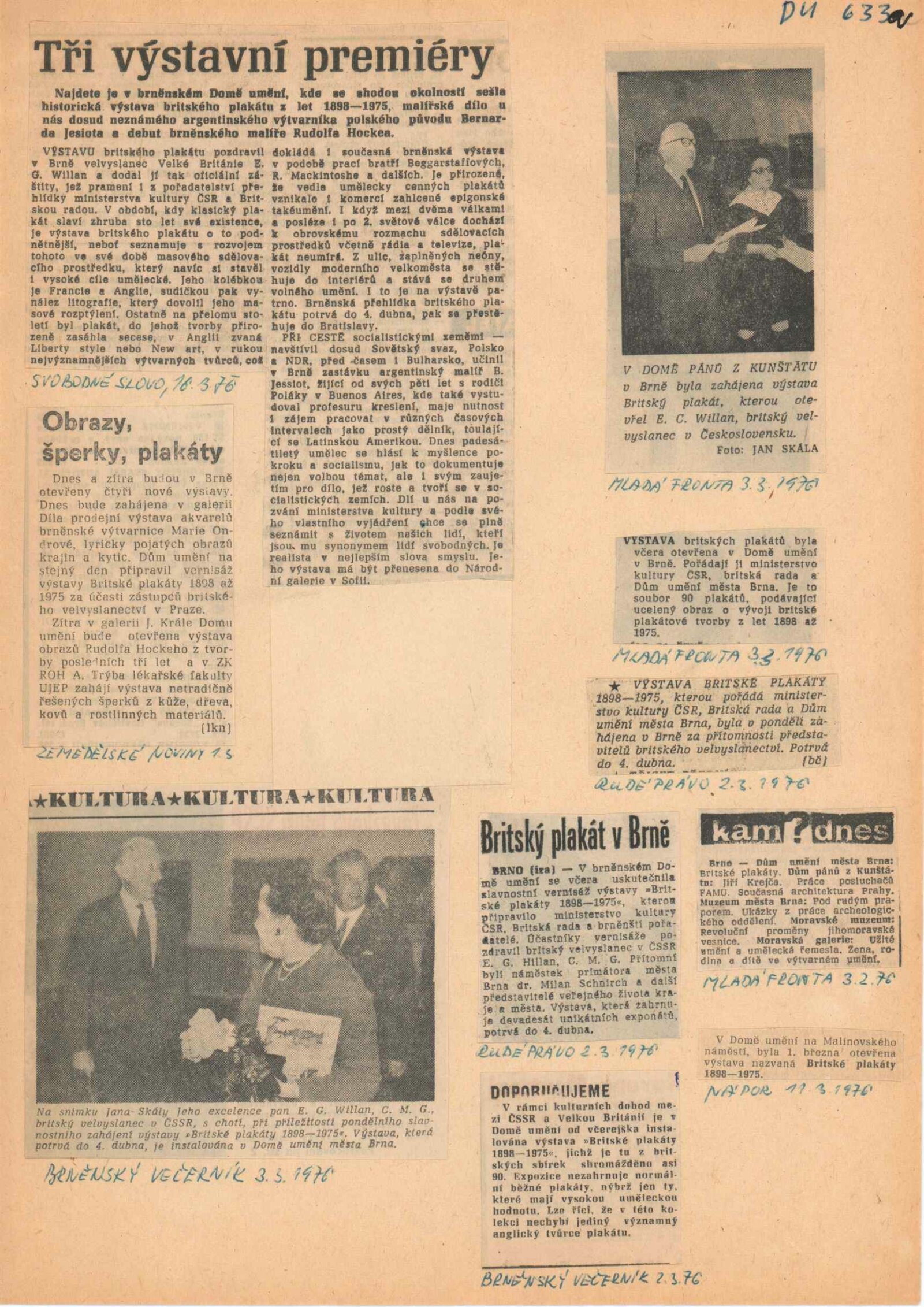 Britské plakáty 1898–1975: Dům umění města Brna, 29. 2. – 4. 4. 1976 / Text: anonymní. – Brno: DUmB, 1976. – 8 s. obr. příl., DU 633a. – MZK; MG