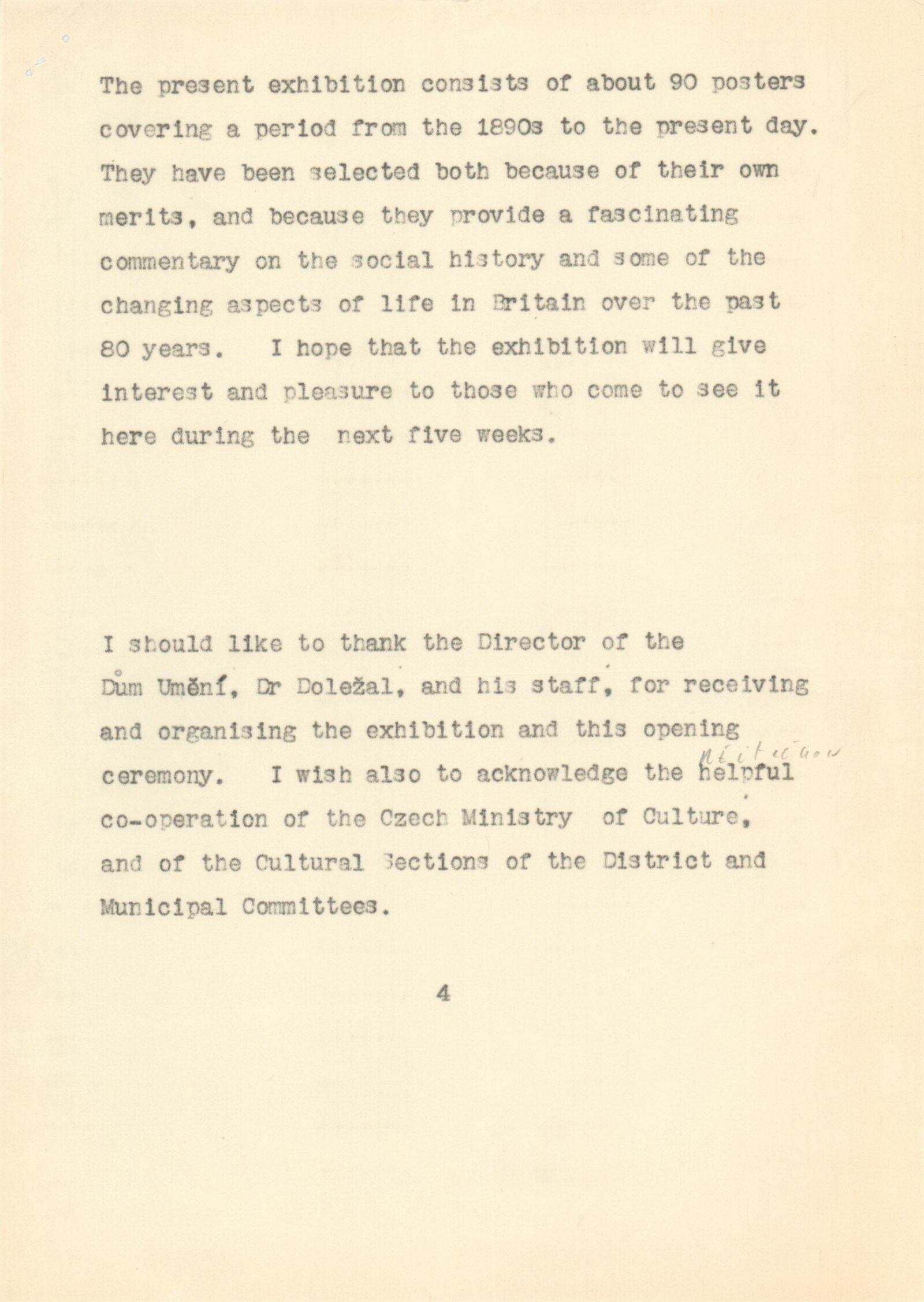 pozvánka, katalog, seznam vystavených děl, fotografie vernisáže a výstavy, úvodní slovo k výstavě (AJ), strojopis textu pro katalog, podklady pro katalog, seznam prací, prezenční listina tiskové konference, korespondence s britskou ambasádou a MK ČSR, provozní korespondence, žádost o povolení výstavy, recenze v tisku