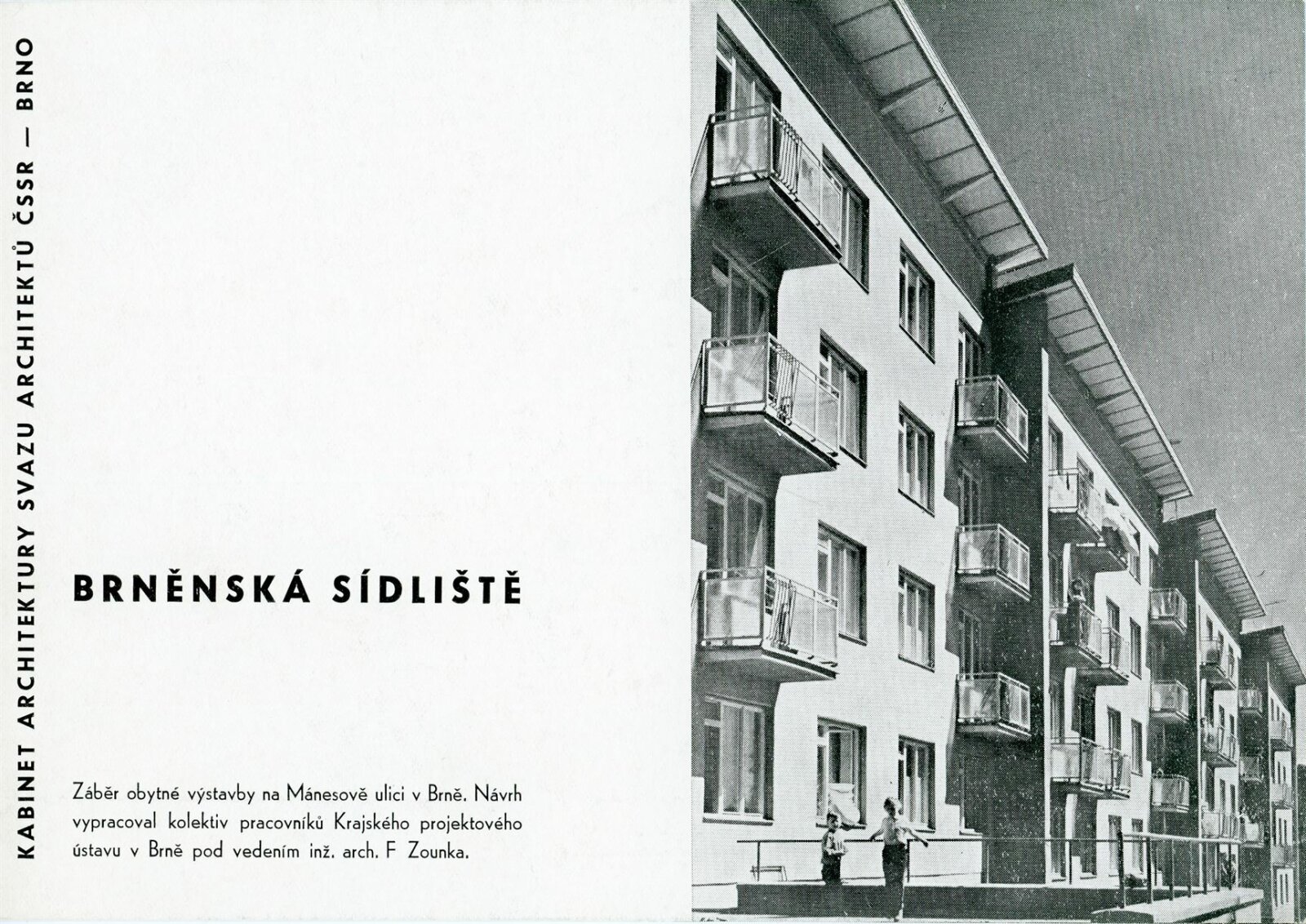 Brněnská sídliště: Dům umění města Brna / Dům pánů z Kunštátu, Kabinet architektury Svazu architektů ČSSR, 6. 10. – 30. 10. 1960 / Brno: Svaz architektů ČSSR, 1960. – 4 s., obr., DPK 86. – MZK