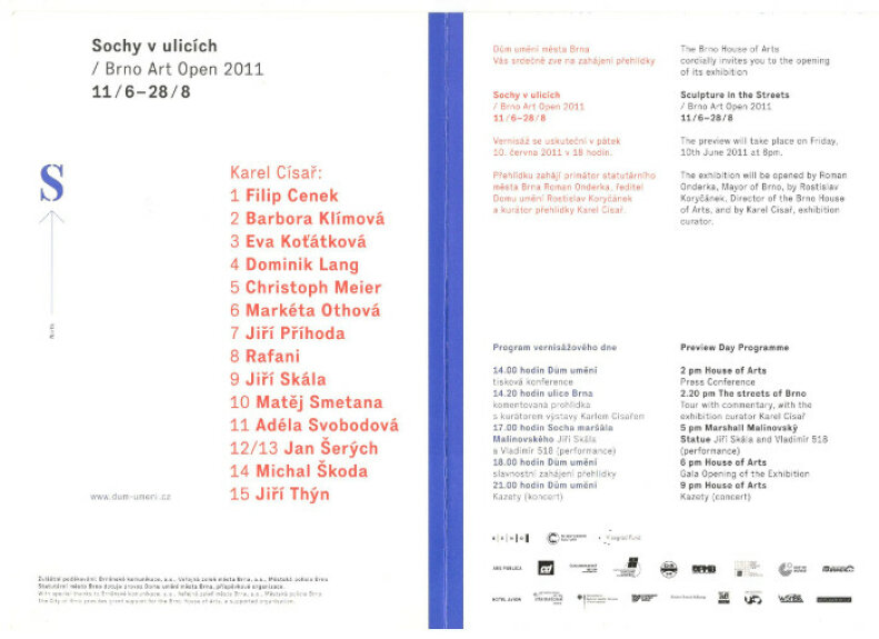 Třetí ročník přehlídky Sochy v ulicích Brno Art Open 2011 navazuje na záměr předchozích dvou ročníků rozvíjet téma výtvarné umění a jeho funkce ve veřejném prostoru. Letošní ročník se však odlišuje snahou o systematické přehodnocení všech tří základních komponentů tohoto typu výstavního formátu – role umění, prostoru a diváků. Na pólu umění se přehlídka pokouší předvést co nejširší pole výrazových prostředků, které mohou být do podobné výstavy zahrnuty. Byli proto osloveni především umělkyně a umělci střední a mladší generace, jejichž práce překračují tradiční vymezení uměleckých disciplín a kteří se volně pohybují mezi odlišnými vyjadřovacími prostředky. Z hlediska prostoru byla volena taková místa, která – přestože se nacházejí v historické části města – většinou nejsou na hlavních komunikacích a ukazují mimořádnou vrstevnatost brněnského městského prostoru. Označuje-li tradičně umístěná socha zpravidla místo historické paměti, pak intervenující díla současného umění poukazují spíše na možnosti, které by dané místo mohlo mít v budoucnosti. S tím souvisí i třetí a ústřední pól přehlídky, jímž jsou diváci – jejich vztah k místu a uměleckému dílu a zvláště pak otázka, jakou roli v životě jedince i společnosti může umění hrát.