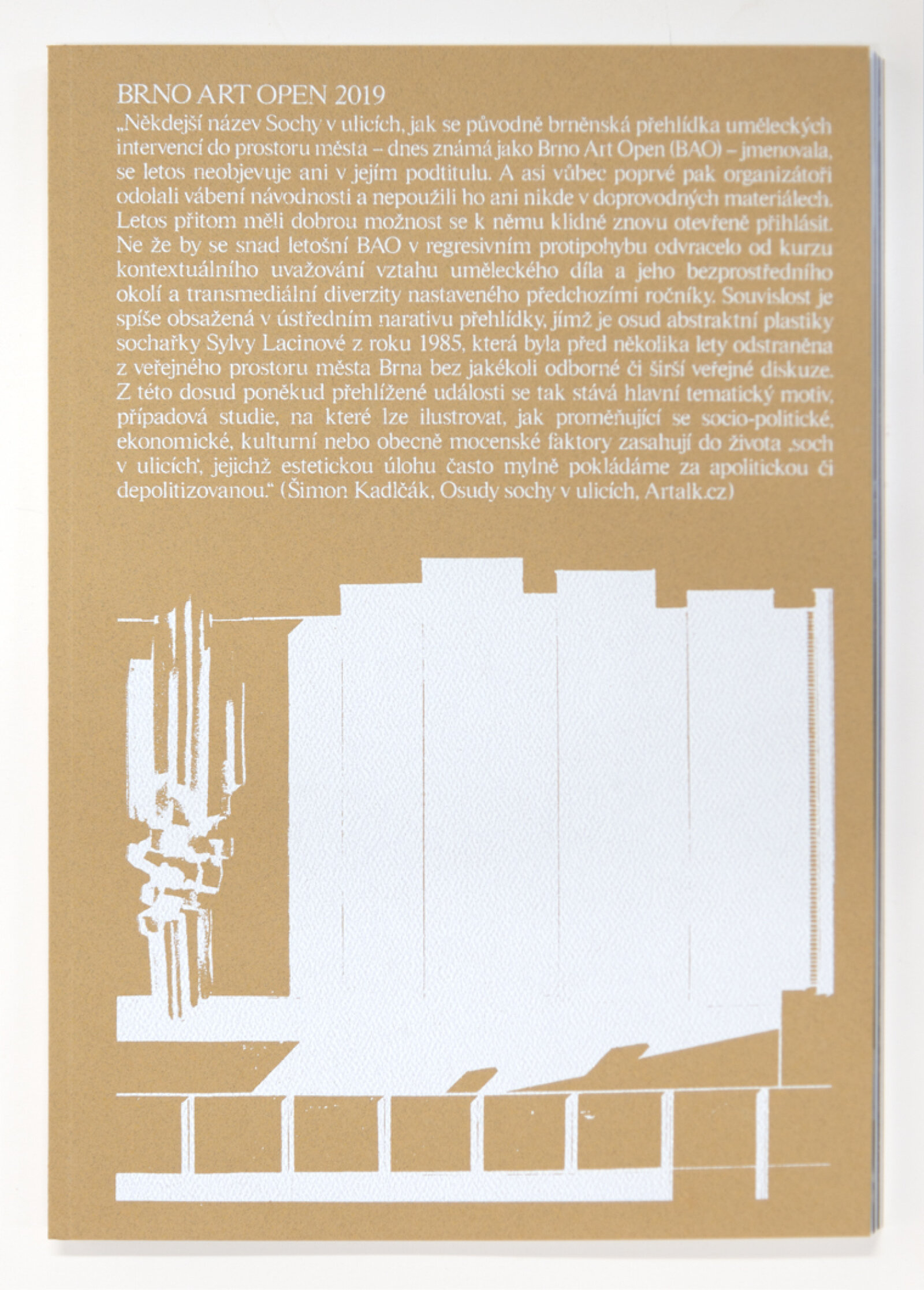 Katalog k sedmému ročníku mezinárodní přehlídky BRNO ART OPEN 2019, který se konal v Brně od 4. 6. do 11. 8. 2019. S podtitulem JSEM ZÁVISLÝ OBJEKT v něm představil kurátorský tým sdružený pod platformou Café Utopia třináct realizací umělců a umělkyň z Velké Británie, Maďarska, Polska, České republiky a Slovenska. Jejich díla byla tentokrát umístěna nejen na otevřených městských prostranstvích, ale také v interiérech veřejných budov a institucí, v dočasných architektonických strukturách a jiných neuralgických bodech města Brna. Autory textů v katalogu jsou kromě kurátorského týmu / Katarína Hládeková, Marika Kupková, Zuzana Janečková a Markéta Žáčková/ i Anežka Bartlová, Petra Hlaváčková, Terezie Petišková a Václav Magid.