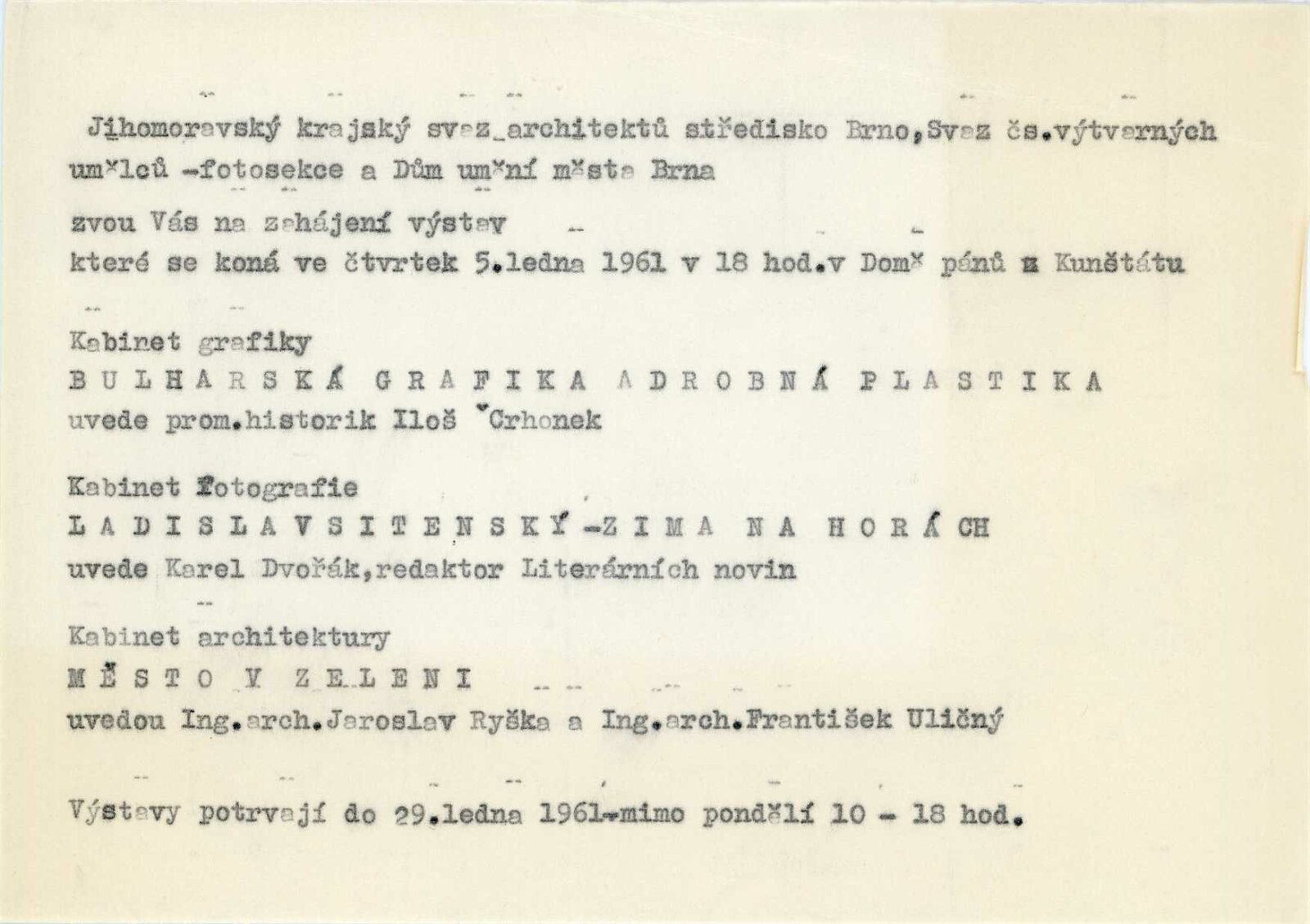 5. 1. – 29. 1. 1961