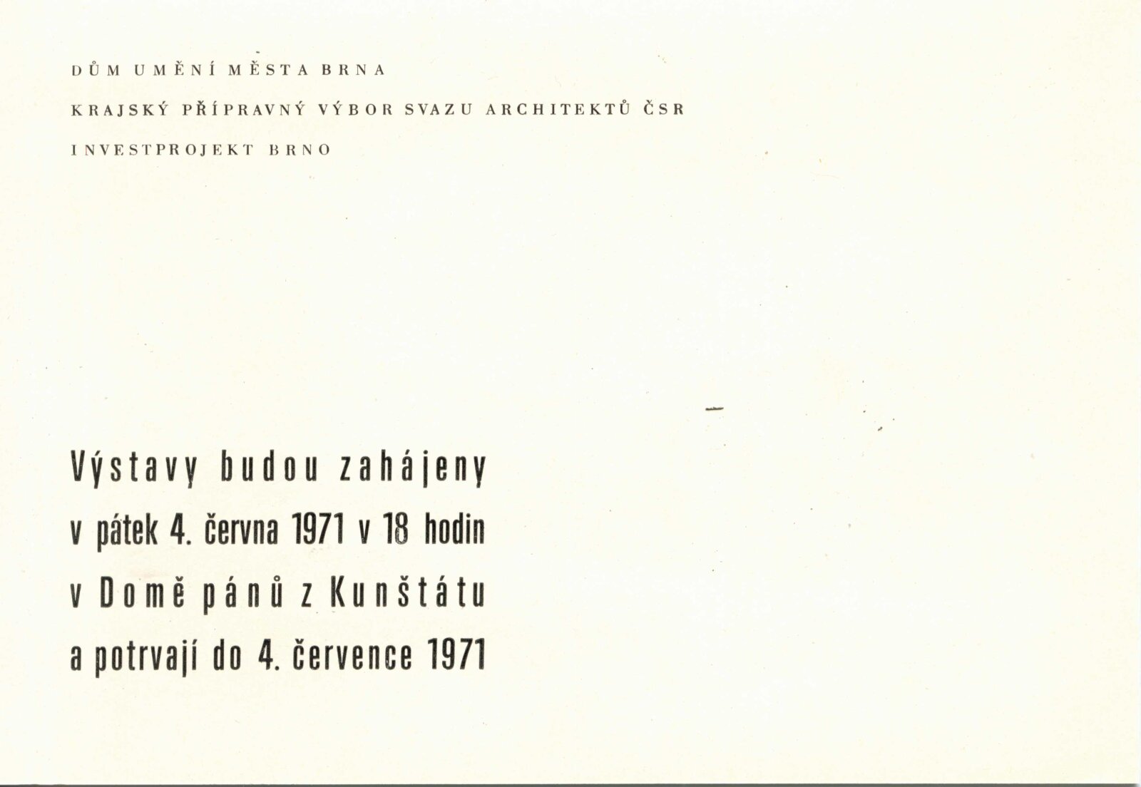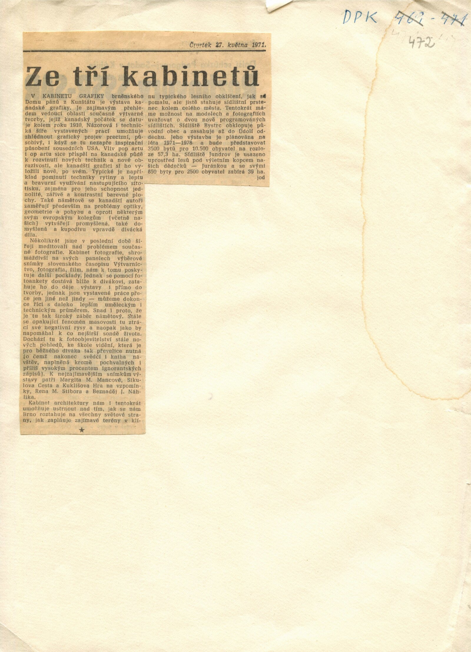 pozvánka, žádost o povolení výstavy, žádost o povolení neuskutečněné výstavy „Bydlení v Brně – sídliště Kohoutovice, sídliště Libušino údolí“, recenze v tisku
