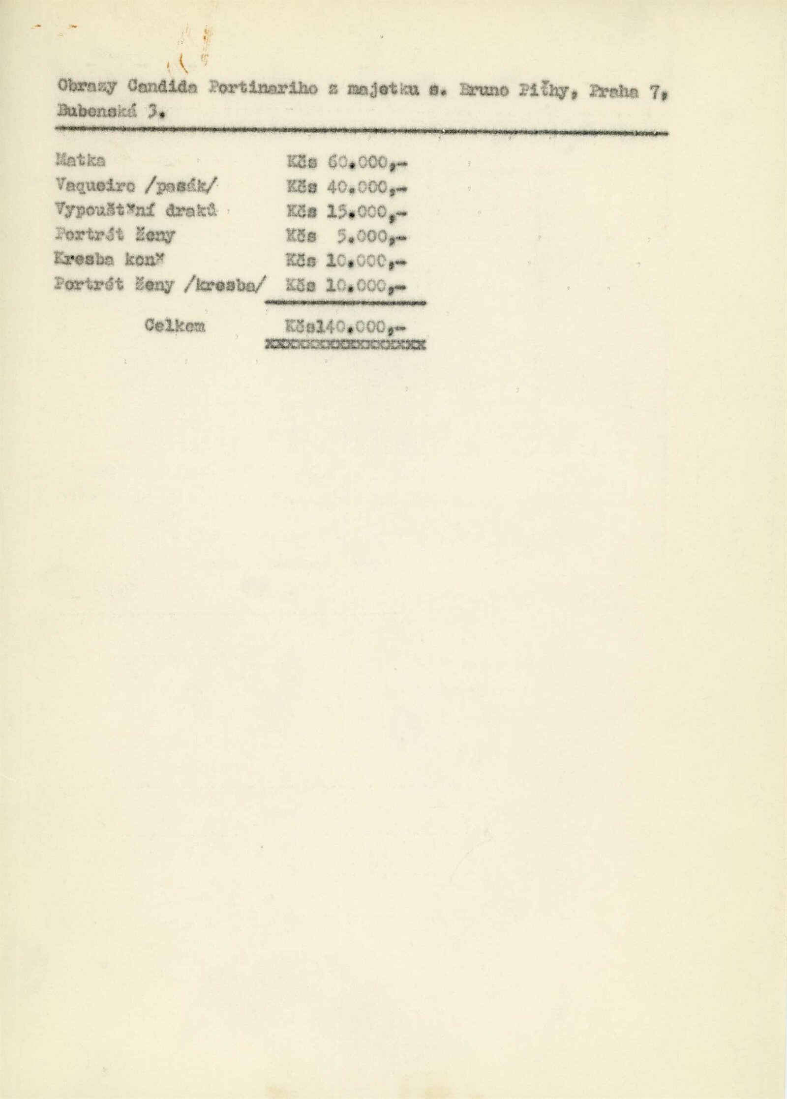 pozvánka, fotografie děl, seznam obrazů a kreseb, korespondence (o realizaci výstavy s MŠK a MV KSČ, provozní korespondence), reversy, rozpočet, majitelé děl Portinariho v Praze, báseň C. Alvarese, převzetí výstavy SSVU/SFVU Dielo v Bratislavě, recenze v tisku