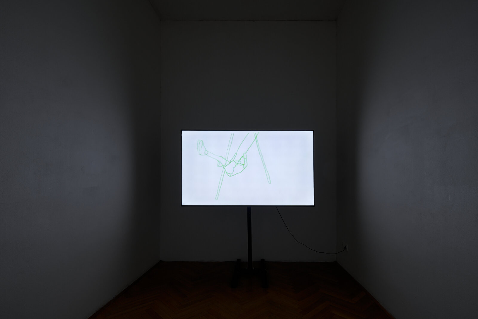Výstava nových prací Matěje Smetany s názvem Čas zvenku navazuje na prostředky, které autor v minulosti využíval v animovaných sériích Návody, Továrny, a nověji v animovaných filmech Poslední malíř nebo O stavbě a oděvu, věnovaném Adolfu Loosovi. Ústředním motivem několika vystavených digitálních a ručně animovaných kreseb je pozorování času a způsob, jakým jej zprostředkovává médium animace. Jak naznačuje název výstavy, je plynutí času nahlíženo z odstupu, zvenčí, z prostoru, který není ověřitelný exaktním měřením, ale je přístupný uměleckému zkoumání. Přestože animaci vnímáme podobně jako film, tedy jako záznam plynule ubíhajícího časového děje, ve skutečnosti se jedná o zobrazení velkého množství statických jednotlivostí/obrazů/kreseb uvedených svou následností do zdánlivého pohybu. Čas, který může být zjednodušeně definován jako „neprostorové lineární kontinuum, v němž se události stávají ve zjevně nevratném pořadí“ (Wikipedie), si můžeme představit také jako řadu okamžiků, které bezprostředně následují jeden za druhým.