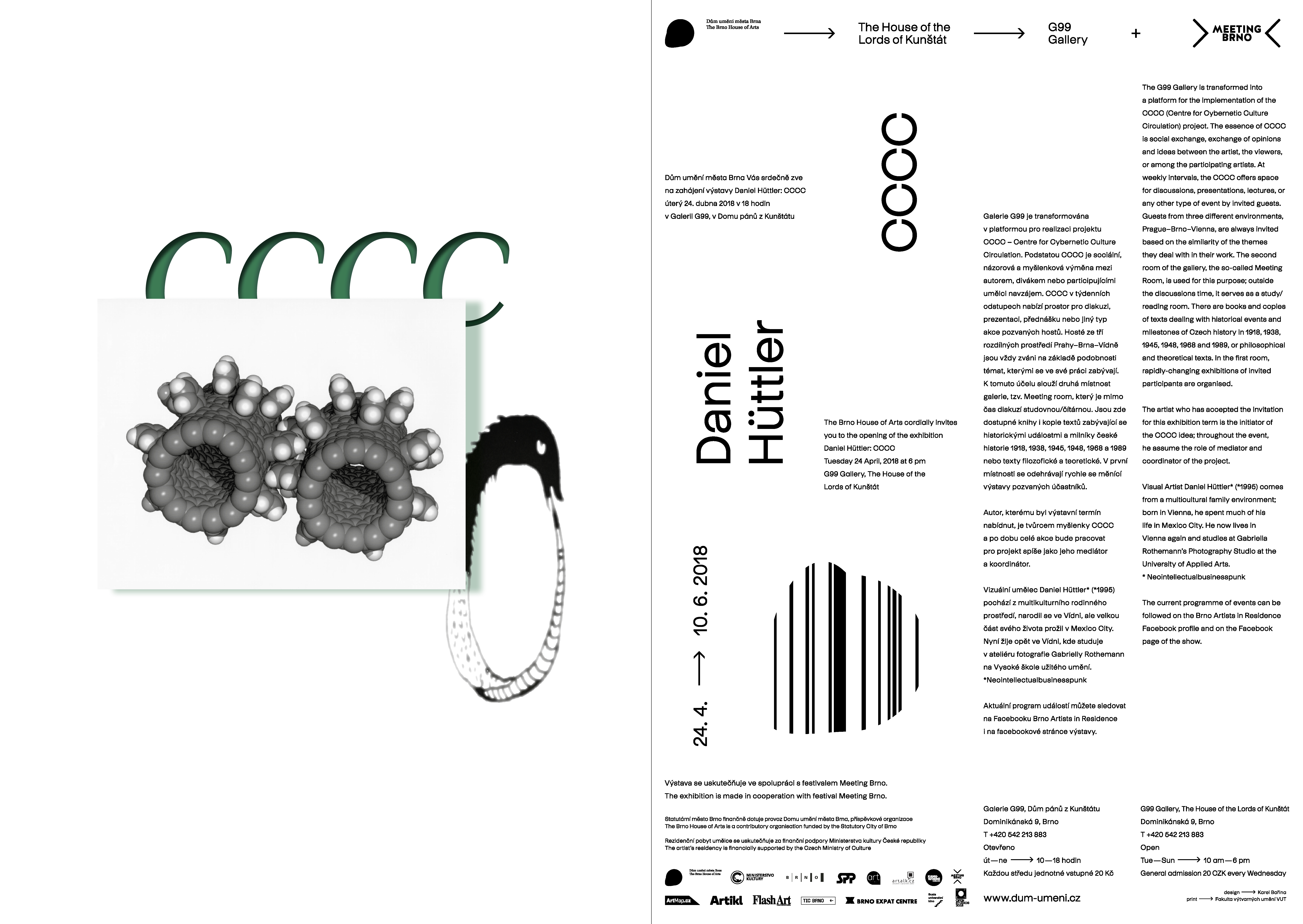 Galerie G99 se na dobu výstavy stane platformou pro realizaci projektu CCCC – Centre for Cybernetic Culture Circulation. Jeho podstatou je sociální a myšlenková výměna mezi autorem, divákem nebo participujícími umělci. CCCC tak nabízí prostor pro diskuzi, přednášku či performanci hostů, pozvaných sem ze tří rozdílných prostředí (Prahy, Brna či Vídně). V tzv. Meeting Roomu, který je mimo čas pořadů studovnou, naleznete knihy i kopie textů zabývající se historickými událostmi a milníky české historie 1918, 1938, 1945, 1948, 1968 a 1989 nebo tématy filozofickými a teoretickými.