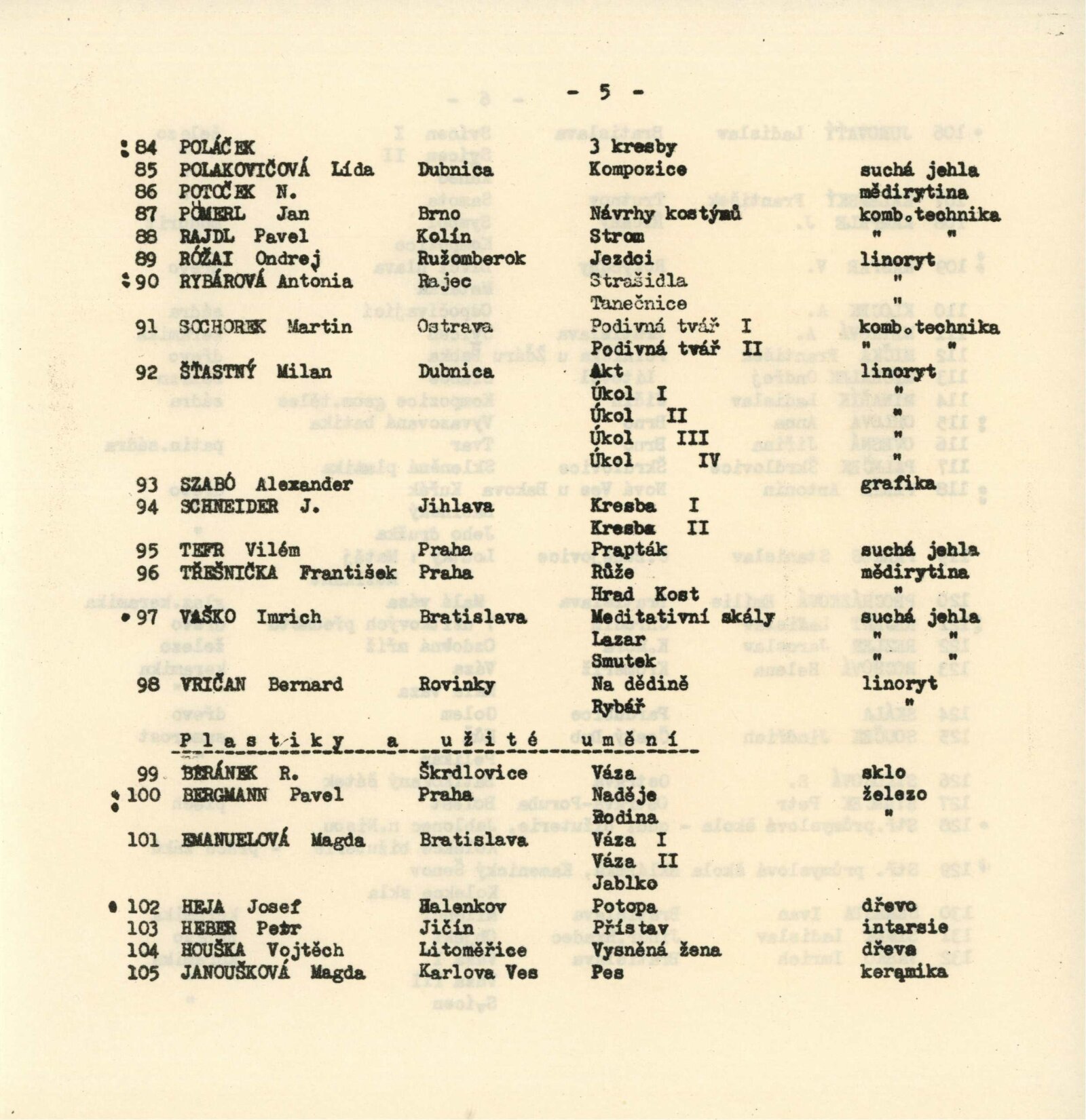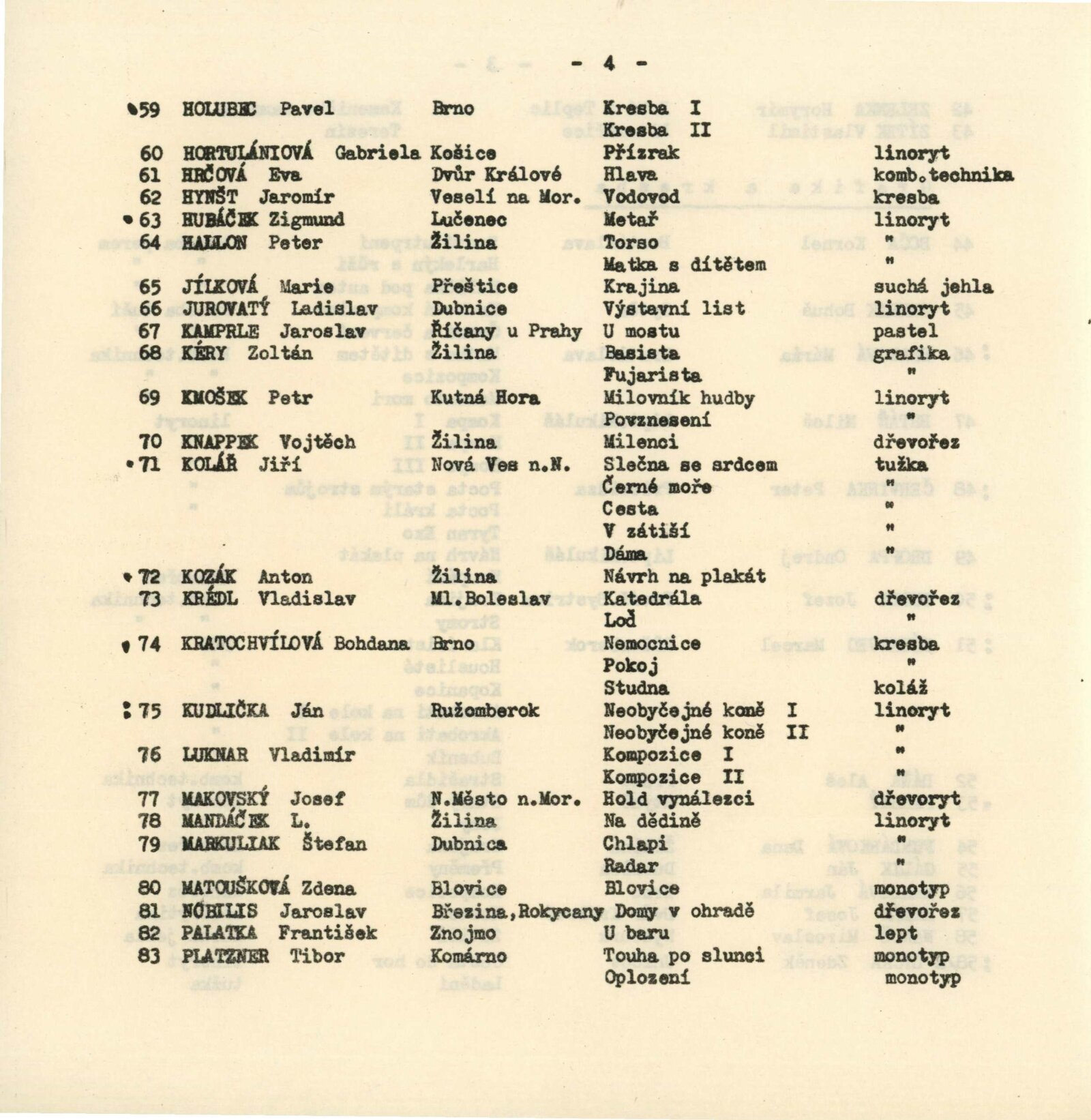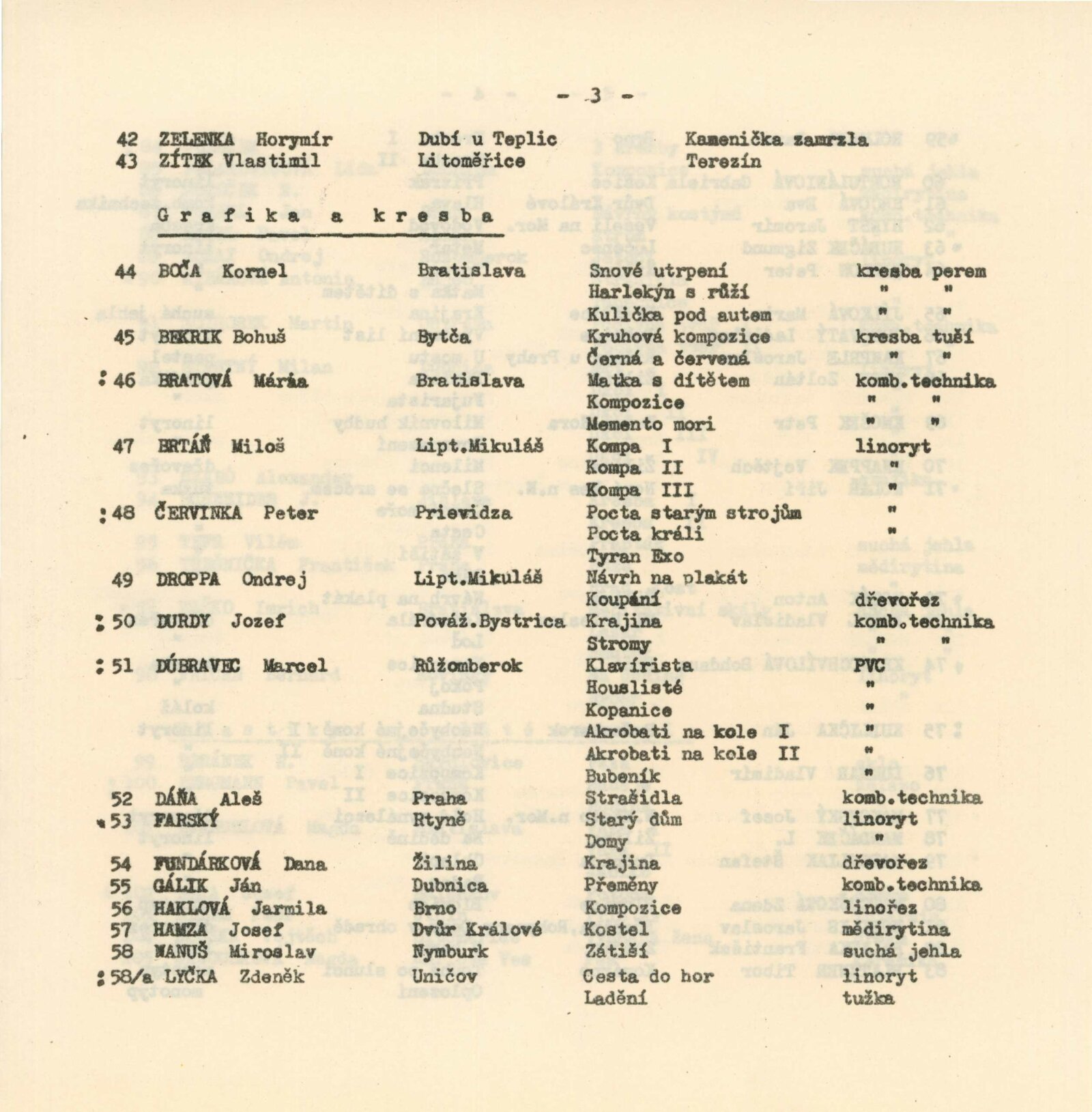 Daniel Aimássi, Václav Antonín, Ladislav Beránek, Jiří Bielecký, Vladimír Brozman, Ján Eichenberger, Vladimír Fait, Alois Heja, František Janata, Marie Janků, Josef Jelenák, Václav Jíra, Zdeněk Justic, Karel Košárek, Jan Křen, Adolf Kubrický, Miroslav Kužela, Walter Lauf, Juraj Lauko, Dana Lorencová, Rudolf Mareš, Cecilie Marková, František Mistr, Jan Moštěk, Milan Morávek, Ladislav Müller, Miroslav Opletal, Otmar Pachr, Antonín Pavlúsek, Stanislav Pícha, Pavol Potoček, Josef Považan, Karol Raymann, Antonín Řehák, Jan Splídek, Antonie Stanislavová, František Sunek, Ladislav Šimek, Ladislav Šoulák, Ondrej Šteberl, Jan Štěpánek, Horymír Zelenka, Vlastimil Zítek, Kornel Boča, Bohuš Bekrik, Mária Bratová, Miloš Brtáň, Peter Červinka, Ondrej Droppa, Jozef Durdy, Marcel Dúbravec, Aleš Dáňa, Farský, Dana Fundárková, Ján Gálík, Jarmila Haklová, Josef Hamza, Miroslav Nanuš, Zdeněk Lyčka, Pavel Holubec, Gabriela Hortulániová, Eva Hrčová, Jaromír Hynšt, Zigmund Hubáček, Peter Hellon, Marie Jílková, Ladislav Jurovatý, Jaroslav Kamprle, Zoltán Kéry, Petr Kmošek, Vojtěch Knappek, Jiří Kolář, Anton Kozák, Vladislav Krédl, Bohdana Kratochvílová, Ján Kudlička, Vladimír Luknar, Josef Makovský, L. Mandáček, Štefan Markuliak, Zdena Matoušková, Jaroslav Nobilis, František Palatka, Tibor Platzner, Poláček, Lída Polakovičková, N. Potoček, Jan Pömerl, Pavel Rajdl, Ondrej Róžai, Antonia Rybáková, Martin Sochorek, Milan Šťastný, Alexander Szabó, Jan Schneider, Vilém Tefr, František Třešnička, Imrich Vaško, Bernard Vričan, R. Beránek, Pavel Bergmann, Magda Emanuelová, Josef Heja, Petr Heber, Vojtěch Houška, Magda Janoušková, Ladislav Jurovatý, František Kalenský, J. Kamprle, V. Kašpar, Adam Kloček, A. Metková, František Mička, Ondřej Michálek, Ladislav Minařík, Anna Orlová, Jiřina Ovesná, Paleček, Antonín Pařík, Stanislav Parkos, Emílie Procházková Ladislav Rejent, Jaroslav Rezler, Helena Rochová, Skála, Jindřích Souček, S. Sýkorová, Ivan Šebesta, Jiří Veselý, Milada Vykydalová, Karol Weisberger, Wolfová, Michal Žitník