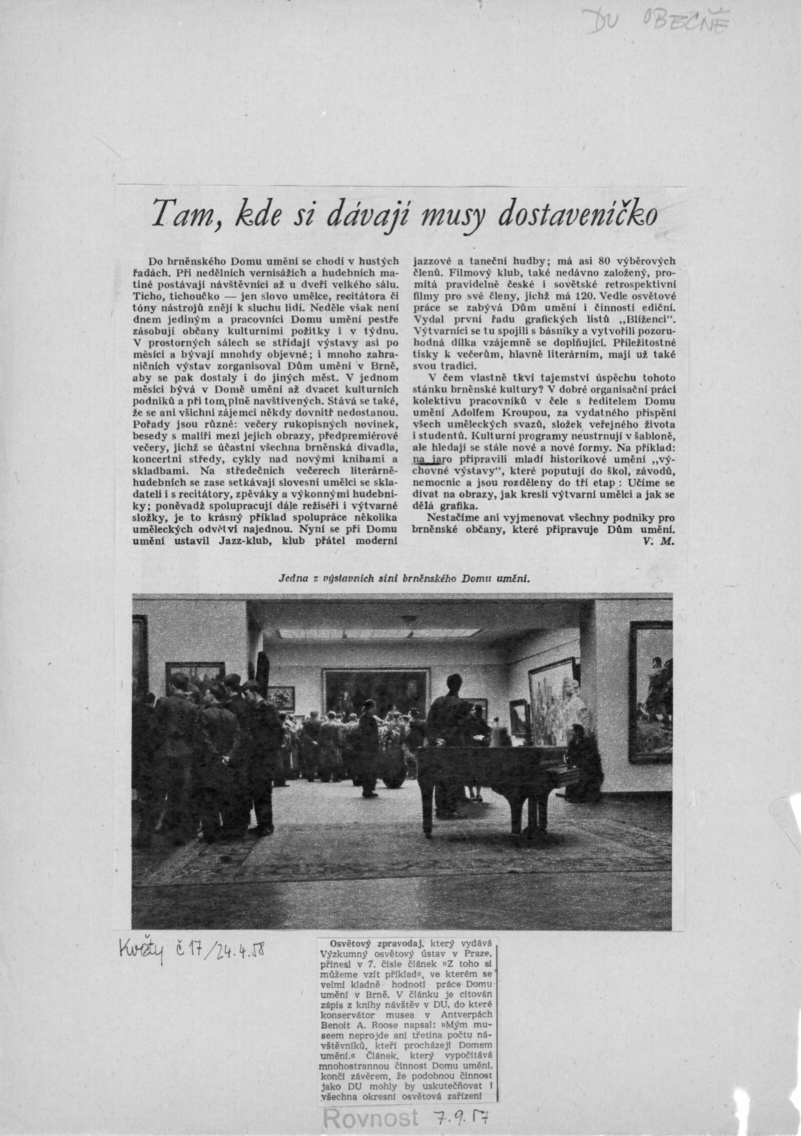 pozvánky, katalog, korespondence (ROH, L. Linhart), provozní korespondence – vyřizování vrácení exponátů, objednávky, recenze v tisku