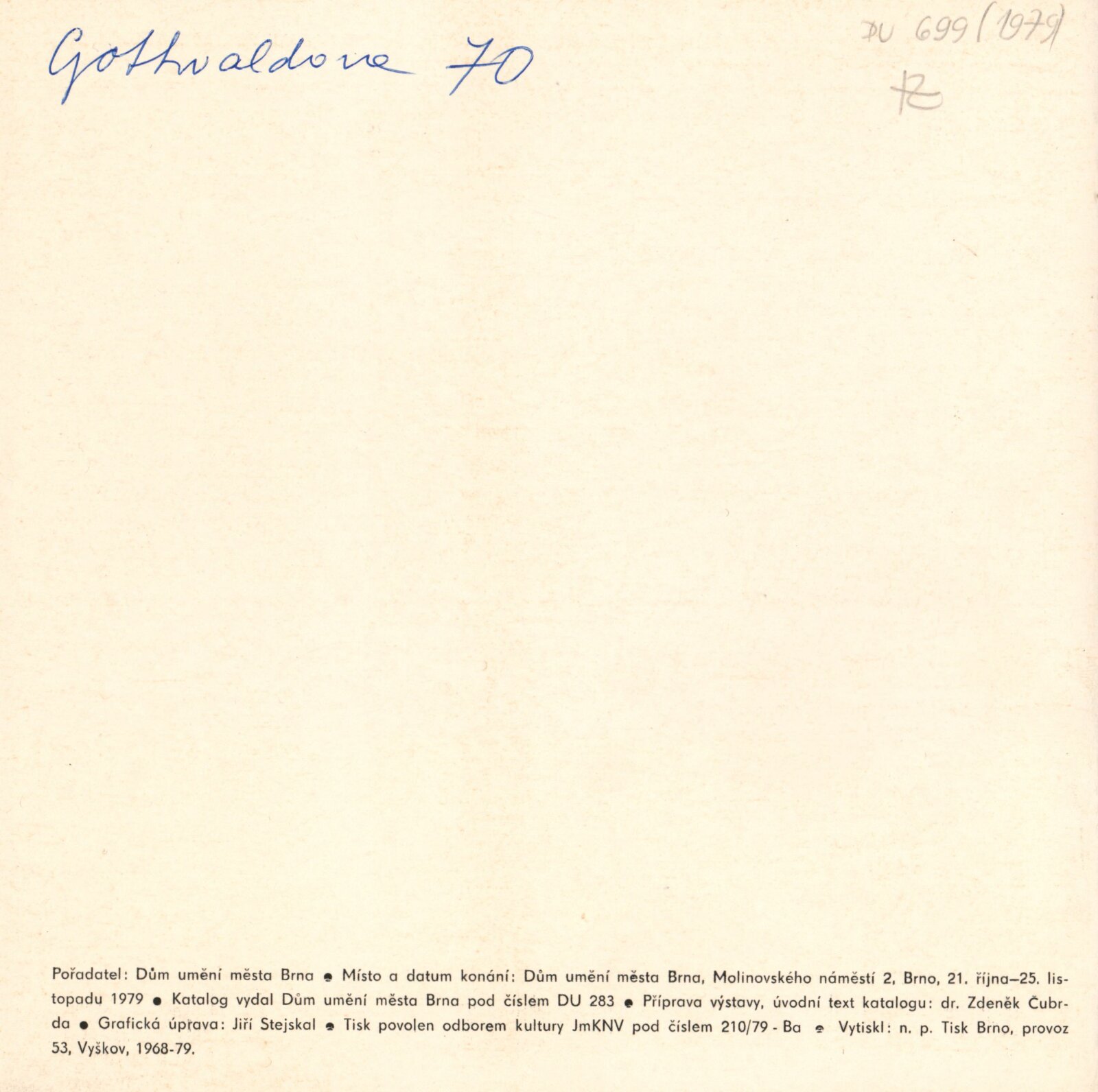 pozvánka, katalog, fotografie z vernisáže, seznamy vystavených děl, korespondence DU s autorem, žádost o povolení výstavy, reversy, recenze v tisku