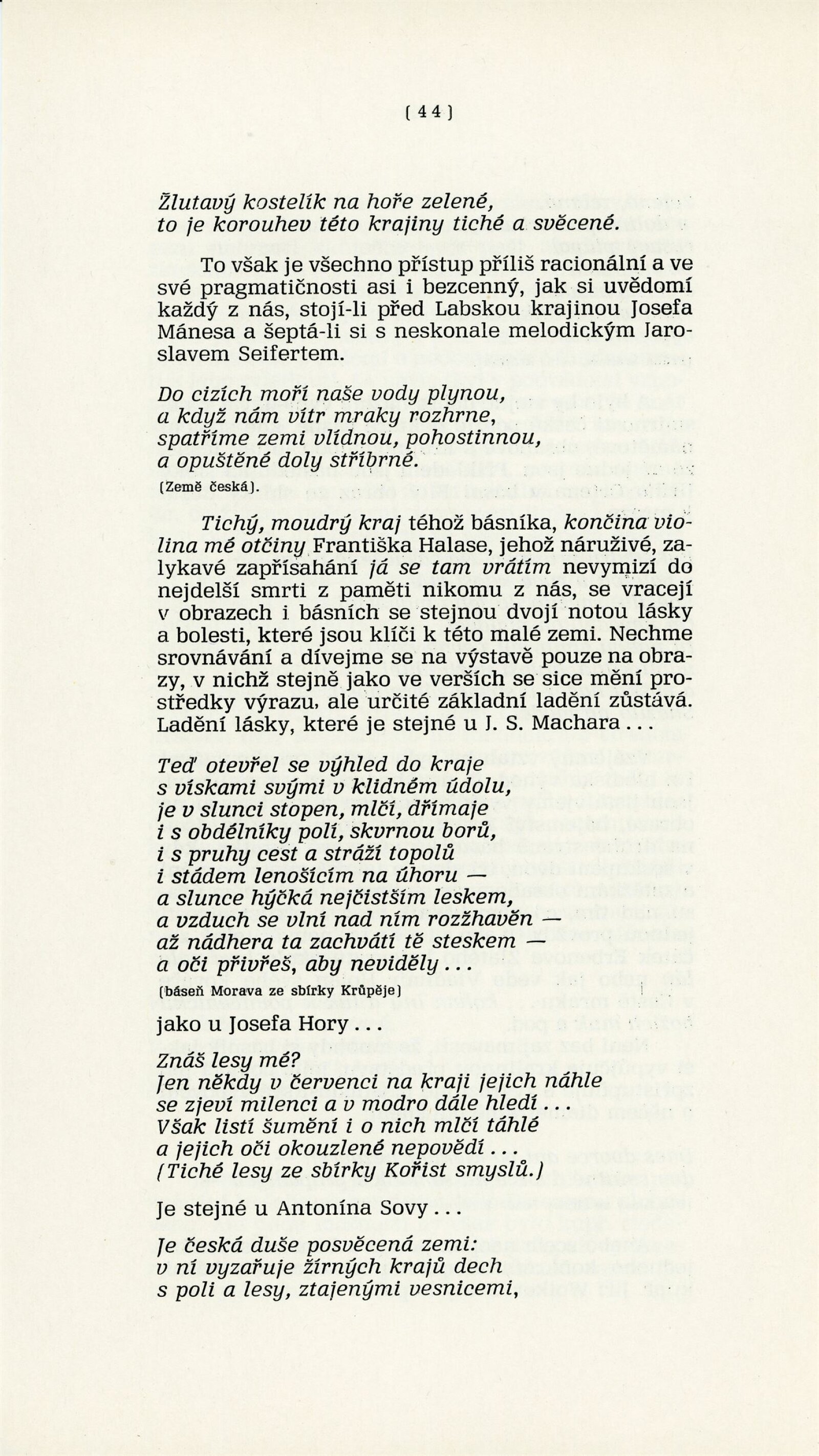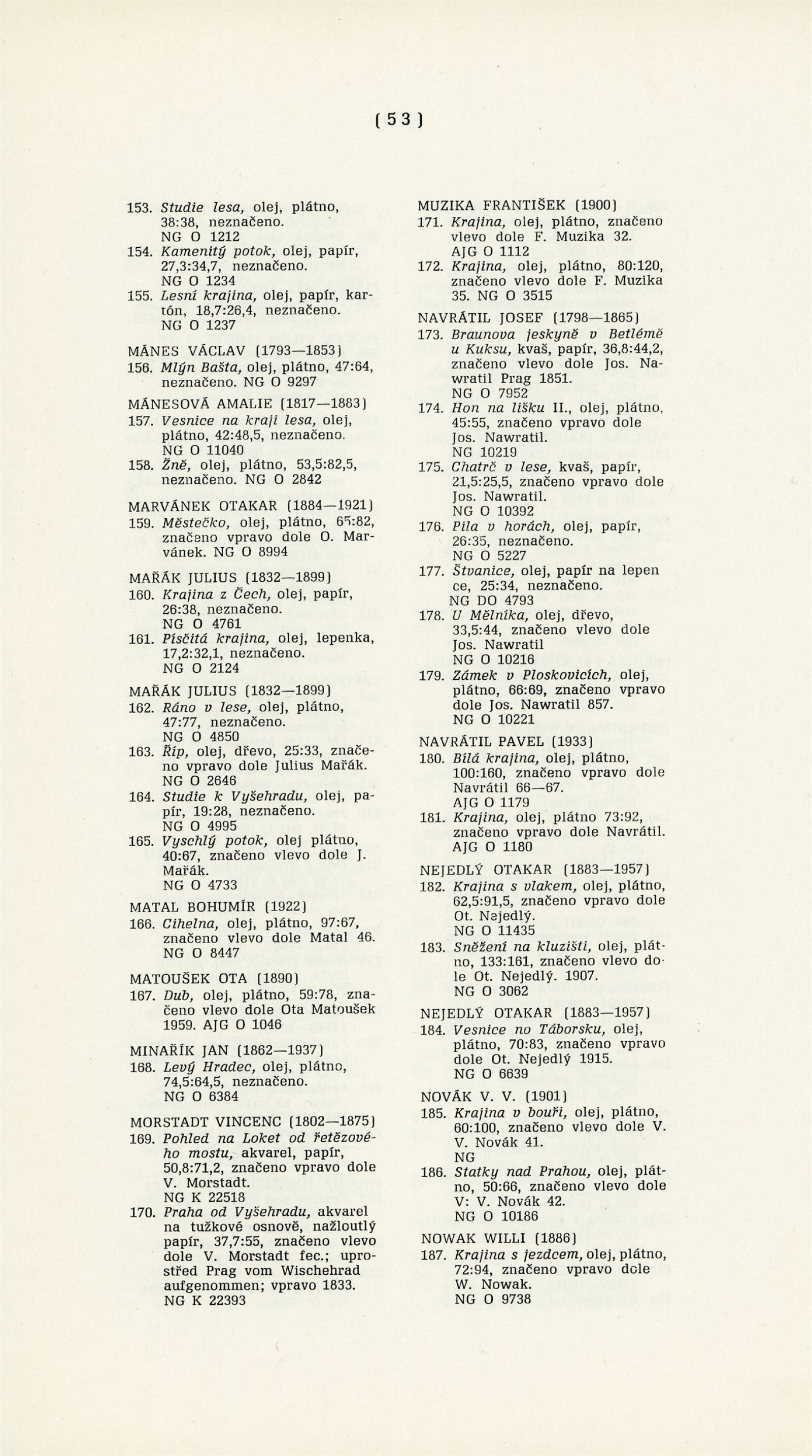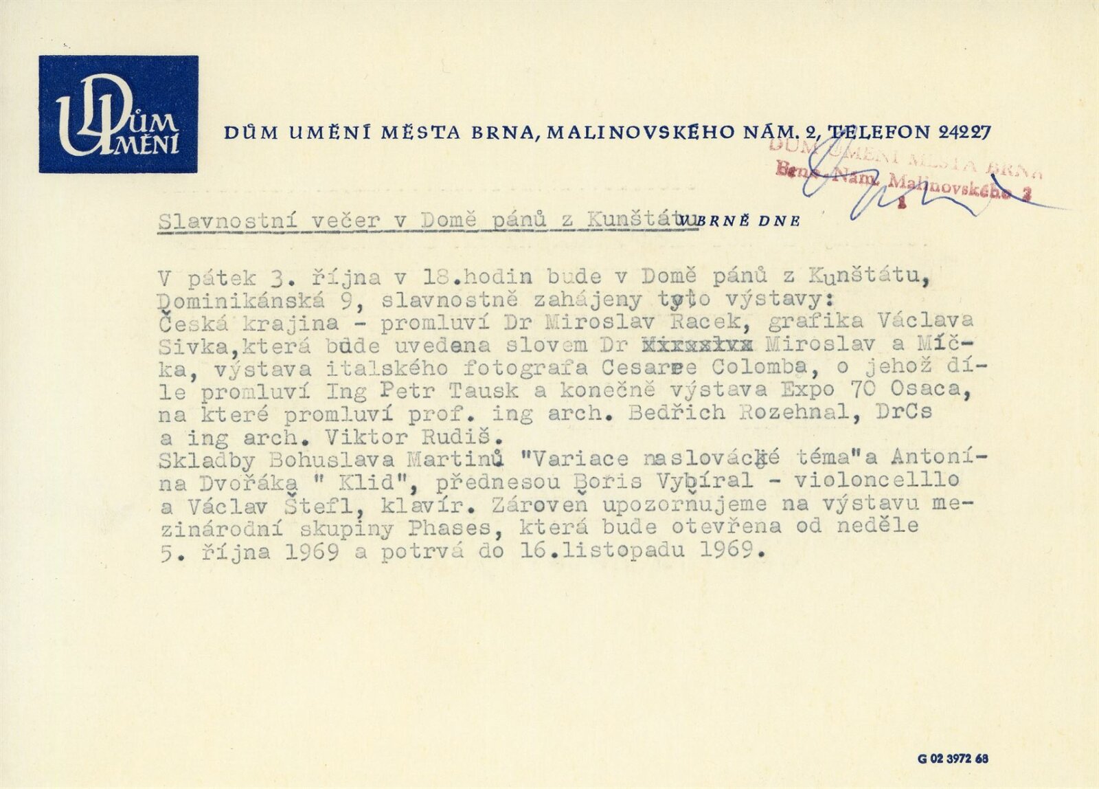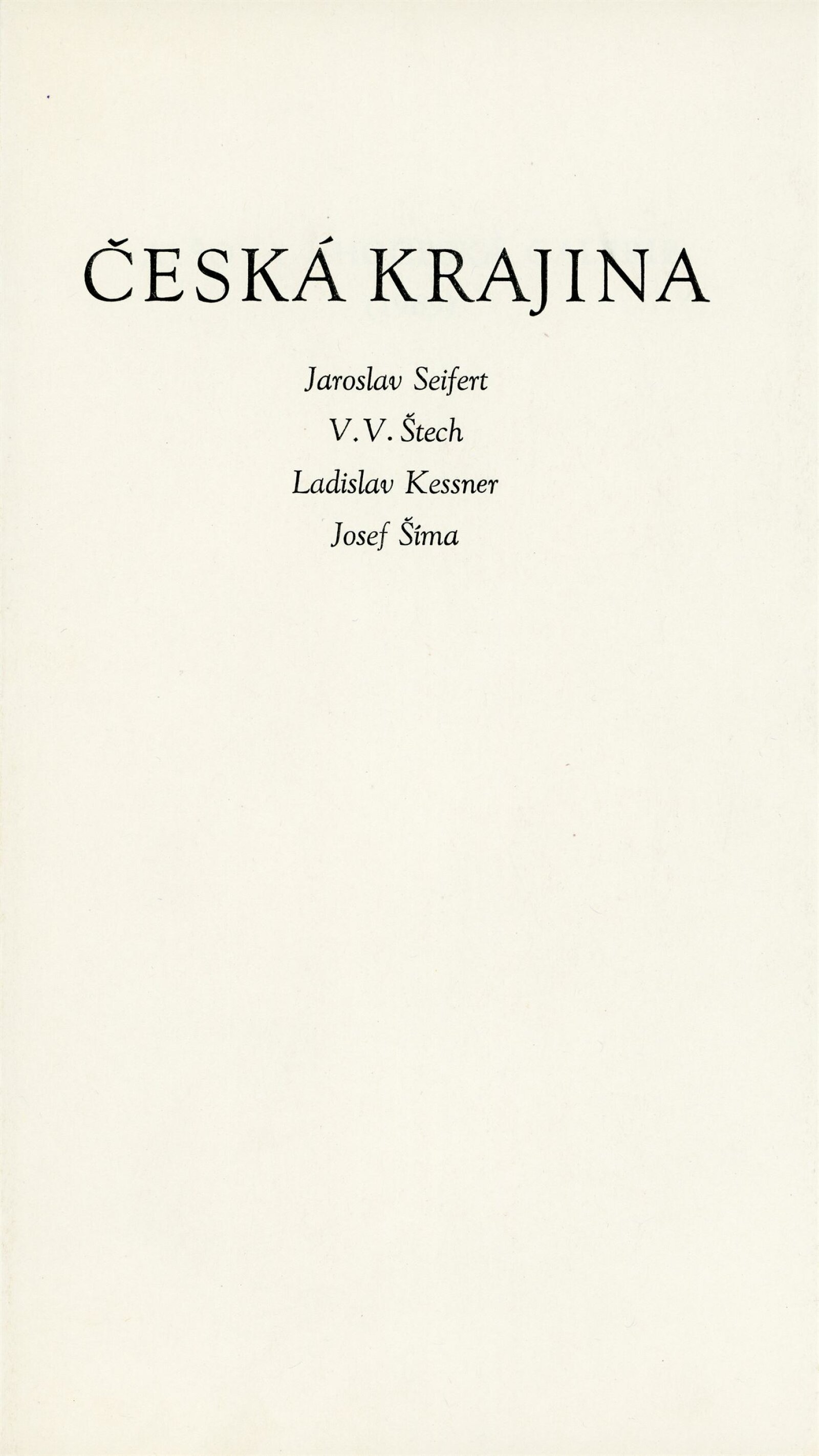 Česká krajina: Dům umění města Brna / Dům pánů z Kunštátu, 3. 10. – 16. 11. 1969 / Převzatý katalog. Česká krajina: Hluboká nad Vltavou, 1969 / Text: Jaroslav Seifert, Václav V. Štech, Ladislav Kessner, Josef Šíma a doslov: Buhmil Houdek. – Hluboká nad Vltavou: Alšova jihočeská galerie, 1969. – 56 s., DPK 420. – MZK; MG