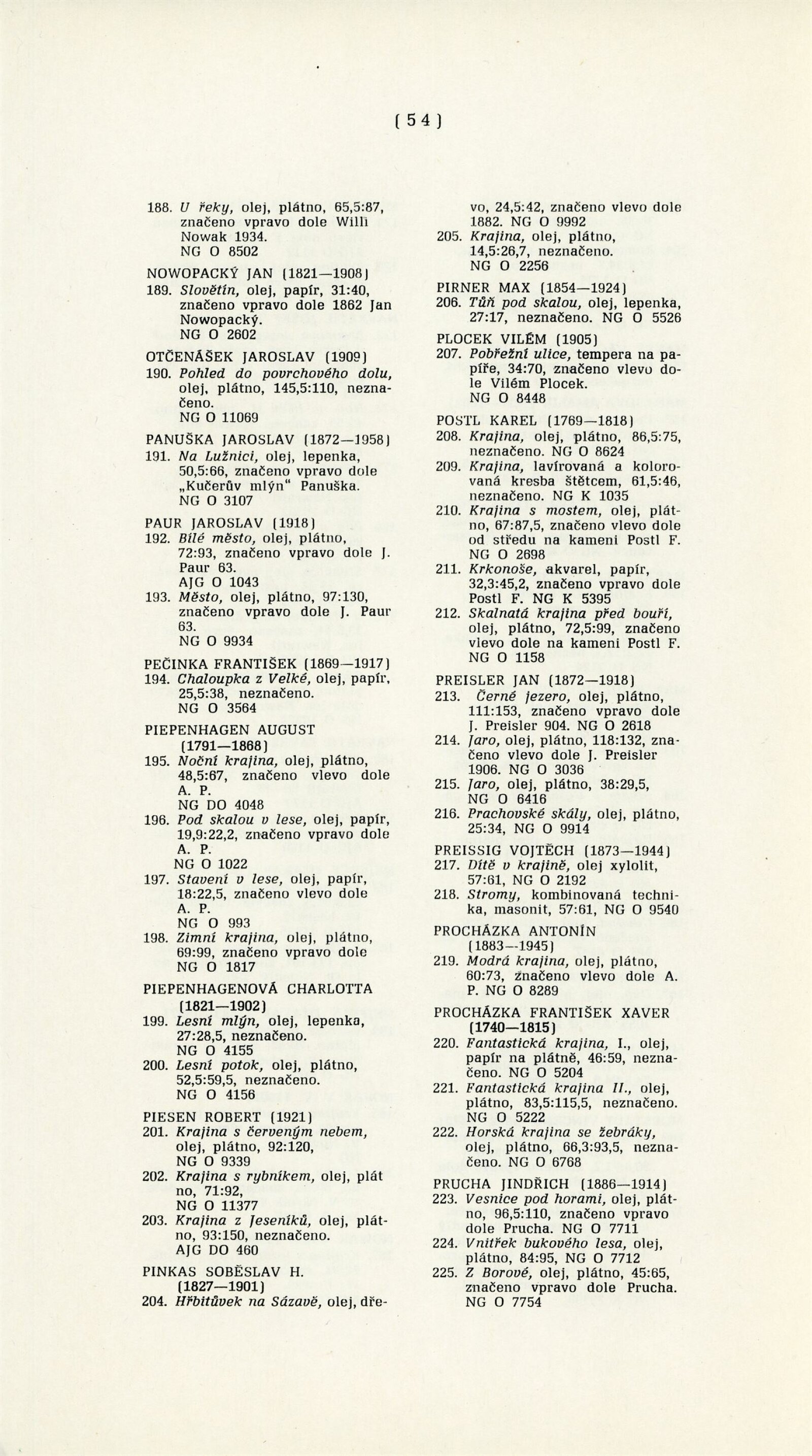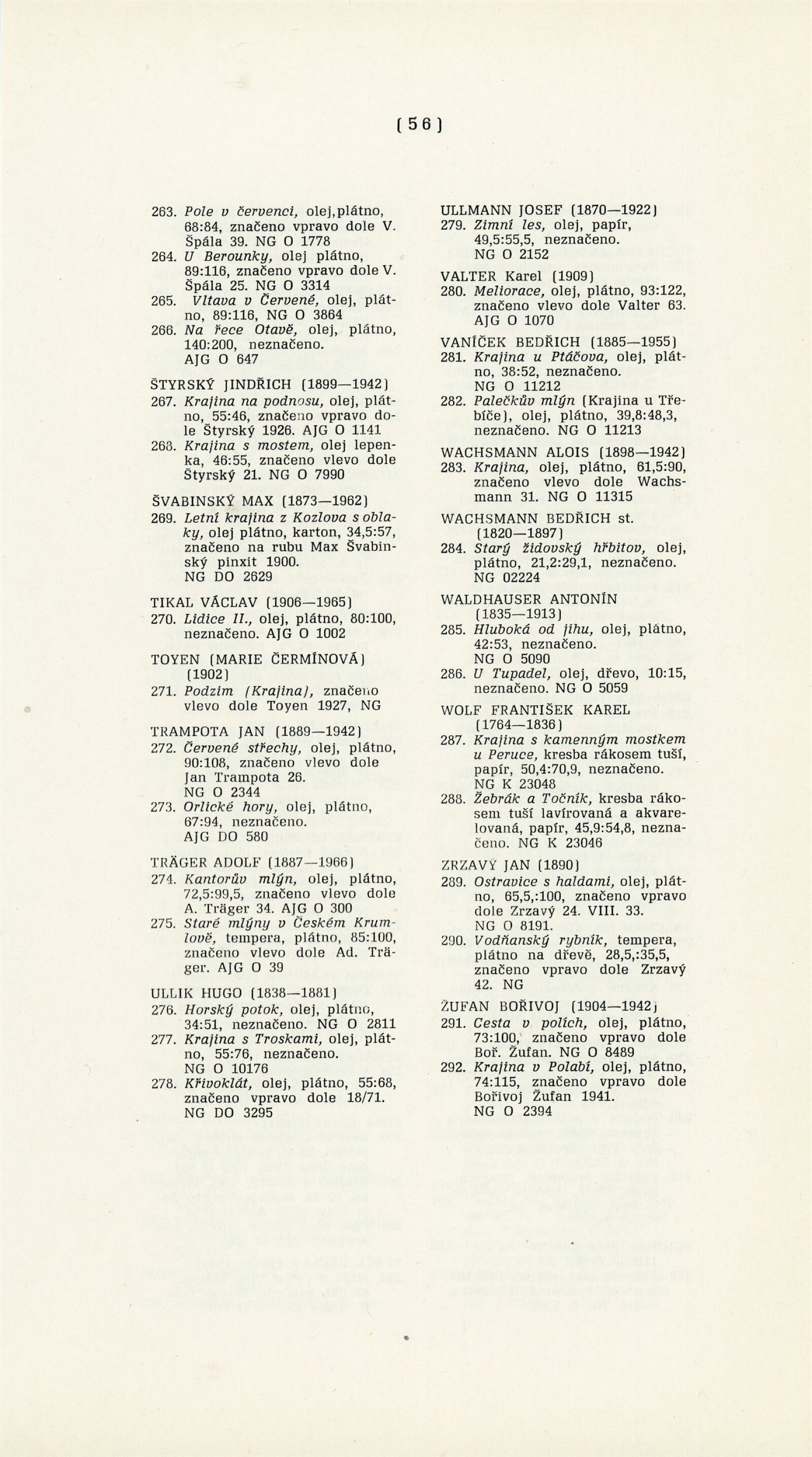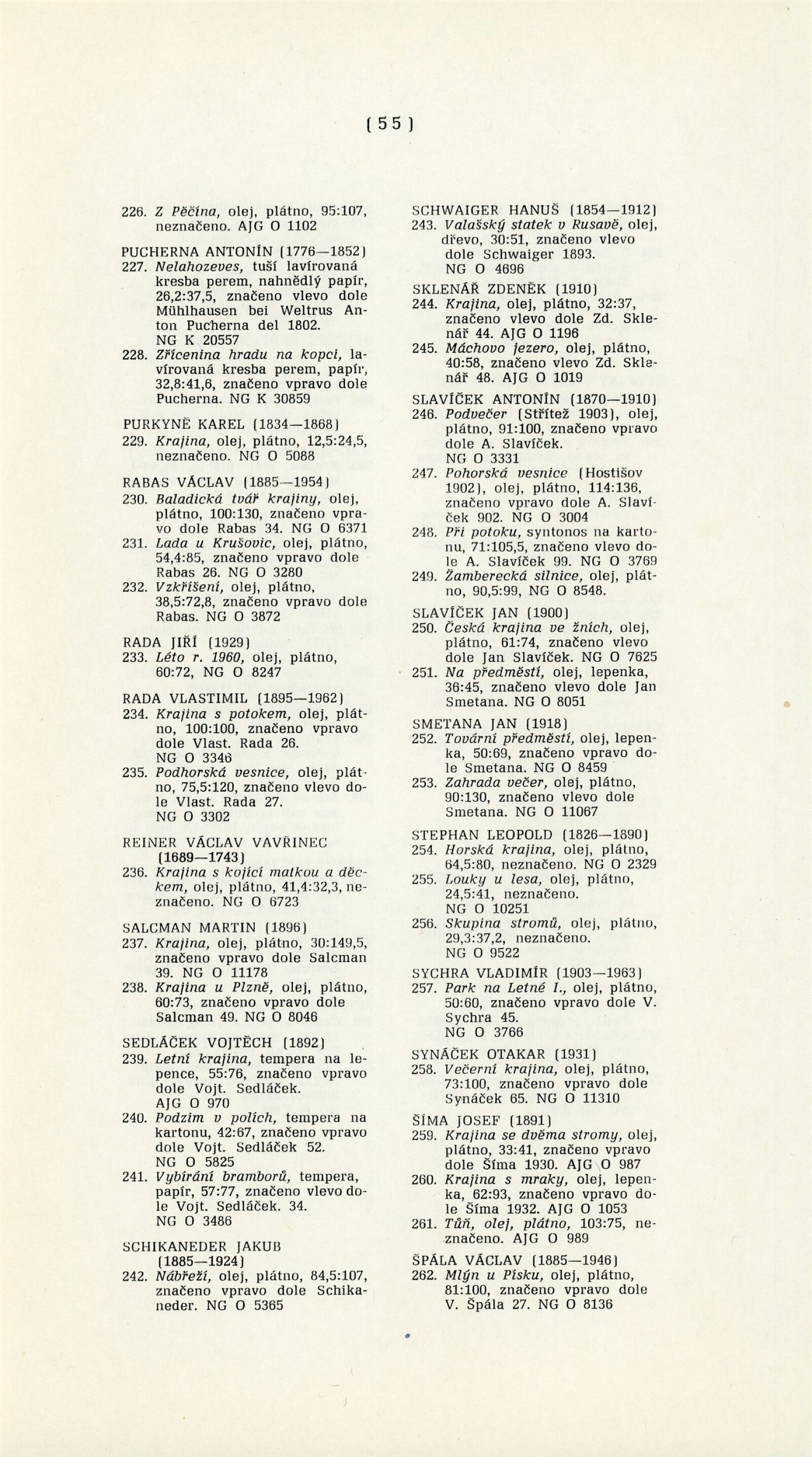 Mikoláš Aleš, Antonín Balzer, Václav Bartovský, Viktor Barvitius, Jan Bauch, Vincenc Beneš, Oldřich Blažíček, Karel Boháček, Václav Boštík, Zdenka Braunerová, Josef Brož, Václav Brožík, Václav Březina, Alois Bubák, Oto Bubeníček, Jan Cihla, Josef Čapek, Jaroslav Čermák, Běla Čermáková, Karel Černý, Bohumír Dvorský, Bohuslav Dvořák, Ferdinand Engelmüller, Emil Filla, Alois Fišárek, František Foltýn, František Gross, Norbert Frund, Jaroslav Grus, František Antonín Hartmann, Max Haushoffer, Roman Havelka, Bedřich Havránek, Edvard Herold, Karel Holan, Miloslav Holý, Jan Honsa, Vladimír Hroch, Josef Hubáček, Antonín Hudeček, František Hudeček, Antonín Chittussi, Adolf Chvála, Václav Jansa, Miloš Jiránek, Josef Jíra, František Jiroudek, Jiří John, Alfréd Justitz, Čestmír Kafka, Alois Kalvoda, Ladislav Karoušek, František Kaván, Oldřich Kerhart, Alois Kirnig, Beneš Knüpfer, Jan Kohan, Bohdan Kopecký, Adolf Kosárek, Jiří Krejčí, Rudolf Kremlička, Václav Kroupa, Bohuslav Kroupa, Ludvík Kuba, Otakar Kubín, Bohumil Kubišta, Bohdan Lacina, Josef Lada, Karel Langer, Richard Lauda, Otakar Lebeda, Antonín Lhota, Kamil Lhoták, Adolf Liebscher, Stanislav Lolek, Antonín Mánes, Josef Mánes, Václav Mánes, Amalie Mánesová, Otakar Marvánek, Julius Mařák, Bohumír Matal, Ota Matoušek, Jan Minařík, Vincenc Morstadt, František Muzika, Josef Navrátil, Pavel Navrátil, Otakar Nejedlý, V. V. Novák, Willi Nowak, Jan Nowopacký, Jaroslav Otčenášek, Jaroslav Panuška, Jaroslav Paur, František Pečinka, August Piepenhagem, Charlotta Piepenhagenová, Robert Piesen, Soběslav H. Pinkas, Max Pirner, Vilém Plocek, Karel Postl, Jan Preisler, Vojtěch Preissig, Antonín Procházka, František Xaver Procházka, Jindřich Prucha, Antonín Pucherna, Karel Purkyně, Václav Rabas, Jiří Rada, Vlastimil Rada, Václav Vavřinec Reiner, Martin Salcman, Vojtěch Sedláček, Jakub Schikaneder, Hanuš Schwaiger, Zdeněk Sklenář, Antonín Slavíček, Jan Slavíček, Jan Smetana, Leopold Stephan, Vladimír Sychra, Otakar Synáček, Josef Šíma, Václav Špála, Jindřích Štýrský, Max Švabinský, Václav Tikal, Toyen (Marie Čermínová), Jan Trampota, Adolf Träger, Hugo Ullik, Josef Ullmann, Karel Valter, Bedřich Vaníček, Alois Waschmann, Bedřich st. Waschmann, František Karel Wolf, Jan Zrzavý, Bořivoj Žufan