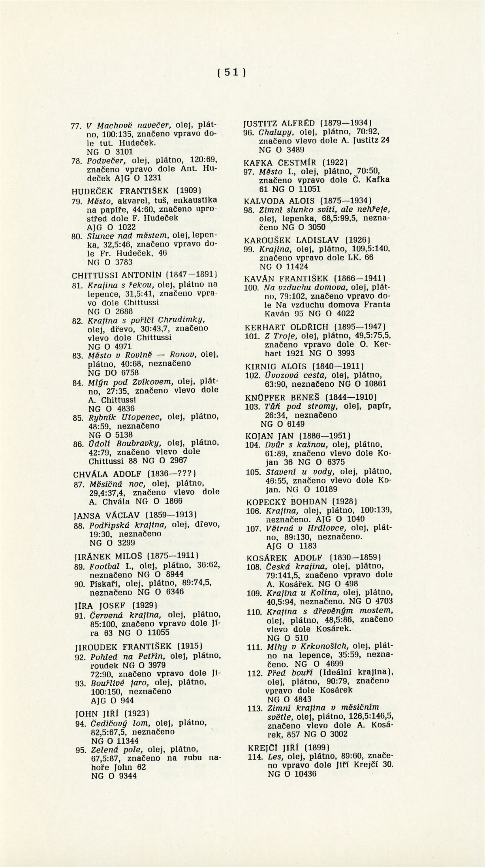 pozvánka, katalog, strojopis anotace, text k výstavě (besedy, prohlídky výstavy), popisky s obrazům, korespondence (provozní korespondence – AJG/NG/DU, dopisy o realizaci výstavy DU/Adolf Kroupa + NG/Jiří Kotalík + AJG/Bohumil Houdek), předávací protokol, smlouva + seznam pojištěných exponátů, recenze v tisku, pozvánka (AJG)