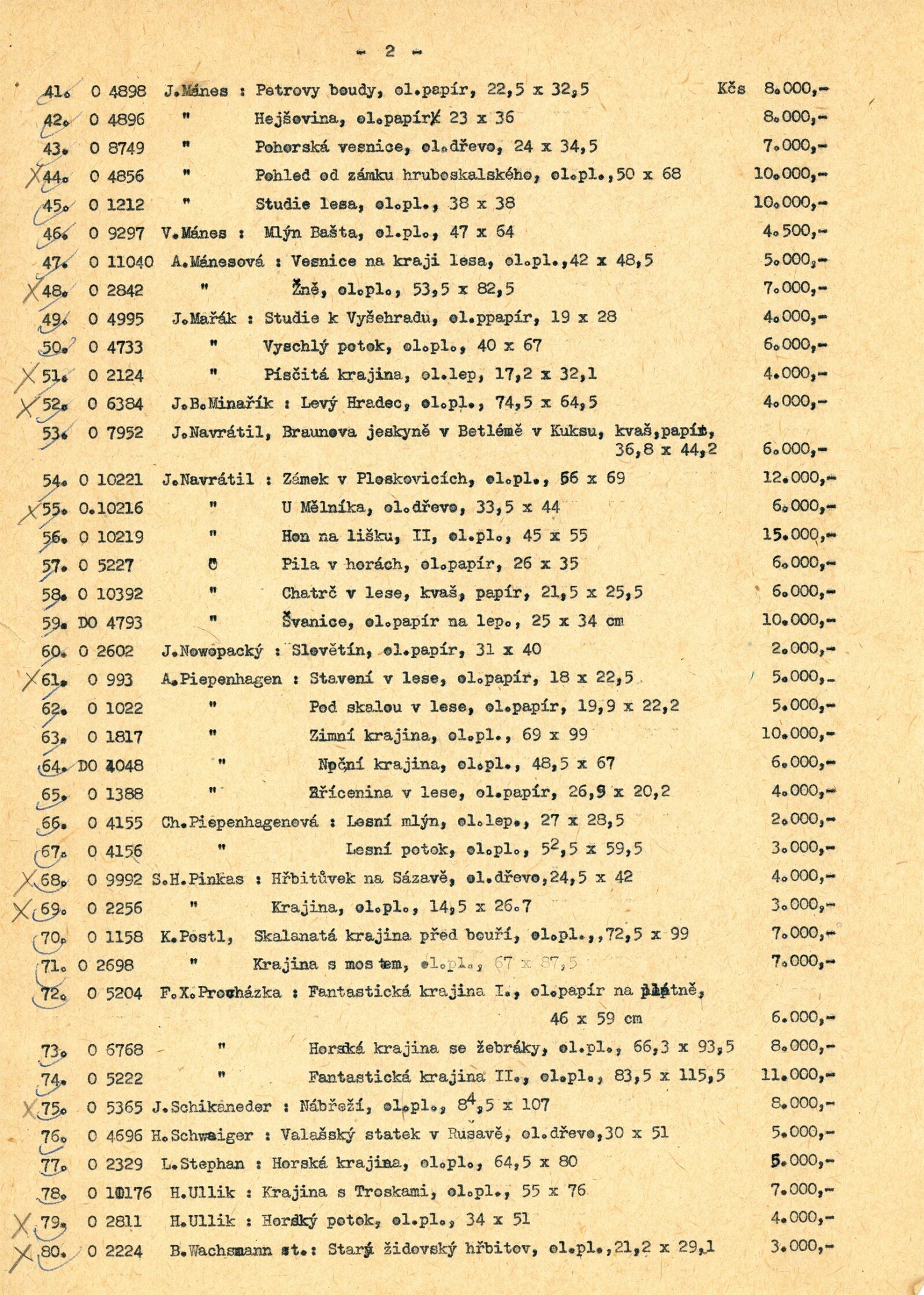 Mikoláš Aleš, Antonín Balzer, Václav Bartovský, Viktor Barvitius, Jan Bauch, Vincenc Beneš, Oldřich Blažíček, Karel Boháček, Václav Boštík, Zdenka Braunerová, Josef Brož, Václav Brožík, Václav Březina, Alois Bubák, Oto Bubeníček, Jan Cihla, Josef Čapek, Jaroslav Čermák, Běla Čermáková, Karel Černý, Bohumír Dvorský, Bohuslav Dvořák, Ferdinand Engelmüller, Emil Filla, Alois Fišárek, František Foltýn, František Gross, Norbert Frund, Jaroslav Grus, František Antonín Hartmann, Max Haushoffer, Roman Havelka, Bedřich Havránek, Edvard Herold, Karel Holan, Miloslav Holý, Jan Honsa, Vladimír Hroch, Josef Hubáček, Antonín Hudeček, František Hudeček, Antonín Chittussi, Adolf Chvála, Václav Jansa, Miloš Jiránek, Josef Jíra, František Jiroudek, Jiří John, Alfréd Justitz, Čestmír Kafka, Alois Kalvoda, Ladislav Karoušek, František Kaván, Oldřich Kerhart, Alois Kirnig, Beneš Knüpfer, Jan Kohan, Bohdan Kopecký, Adolf Kosárek, Jiří Krejčí, Rudolf Kremlička, Václav Kroupa, Bohuslav Kroupa, Ludvík Kuba, Otakar Kubín, Bohumil Kubišta, Bohdan Lacina, Josef Lada, Karel Langer, Richard Lauda, Otakar Lebeda, Antonín Lhota, Kamil Lhoták, Adolf Liebscher, Stanislav Lolek, Antonín Mánes, Josef Mánes, Václav Mánes, Amalie Mánesová, Otakar Marvánek, Julius Mařák, Bohumír Matal, Ota Matoušek, Jan Minařík, Vincenc Morstadt, František Muzika, Josef Navrátil, Pavel Navrátil, Otakar Nejedlý, V. V. Novák, Willi Nowak, Jan Nowopacký, Jaroslav Otčenášek, Jaroslav Panuška, Jaroslav Paur, František Pečinka, August Piepenhagen, Charlotta Piepenhagenová, Robert Piesen, Soběslav H. Pinkas, Max Pirner, Vilém Plocek, Karel Postl, Jan Preisler, Vojtěch Preissig, Antonín Procházka, František Xaver Procházka, Jindřich Prucha, Antonín Pucherna, Karel Purkyně, Václav Rabas, Jiří Rada, Vlastimil Rada, Václav Vavřinec Reiner, Martin Salcman, Vojtěch Sedláček, Jakub Schikaneder, Hanuš Schwaiger, Zdeněk Sklenář, Antonín Slavíček, Jan Slavíček, Jan Smetana, Leopold Stephan, Vladimír Sychra, Otakar Synáček, Josef Šíma, Václav Špála, Jindřích Štýrský, Max Švabinský, Václav Tikal, Toyen (Marie Čermínová), Jan Trampota, Adolf Träger, Hugo Ullik, Josef Ullmann, Karel Valter, Bedřich Vaníček, Alois Waschmann, Bedřich st. Waschmann, František Karel Wolf, Jan Zrzavý, Bořivoj Žufan