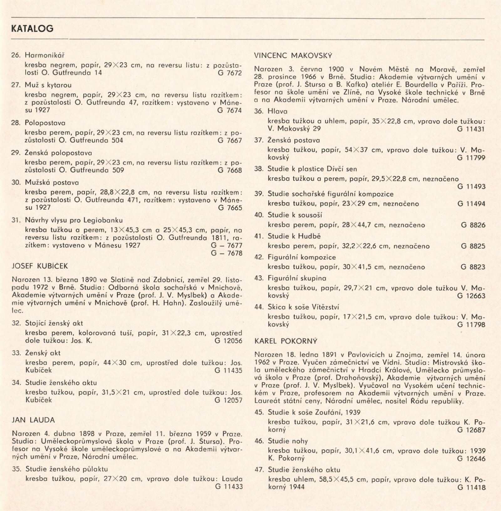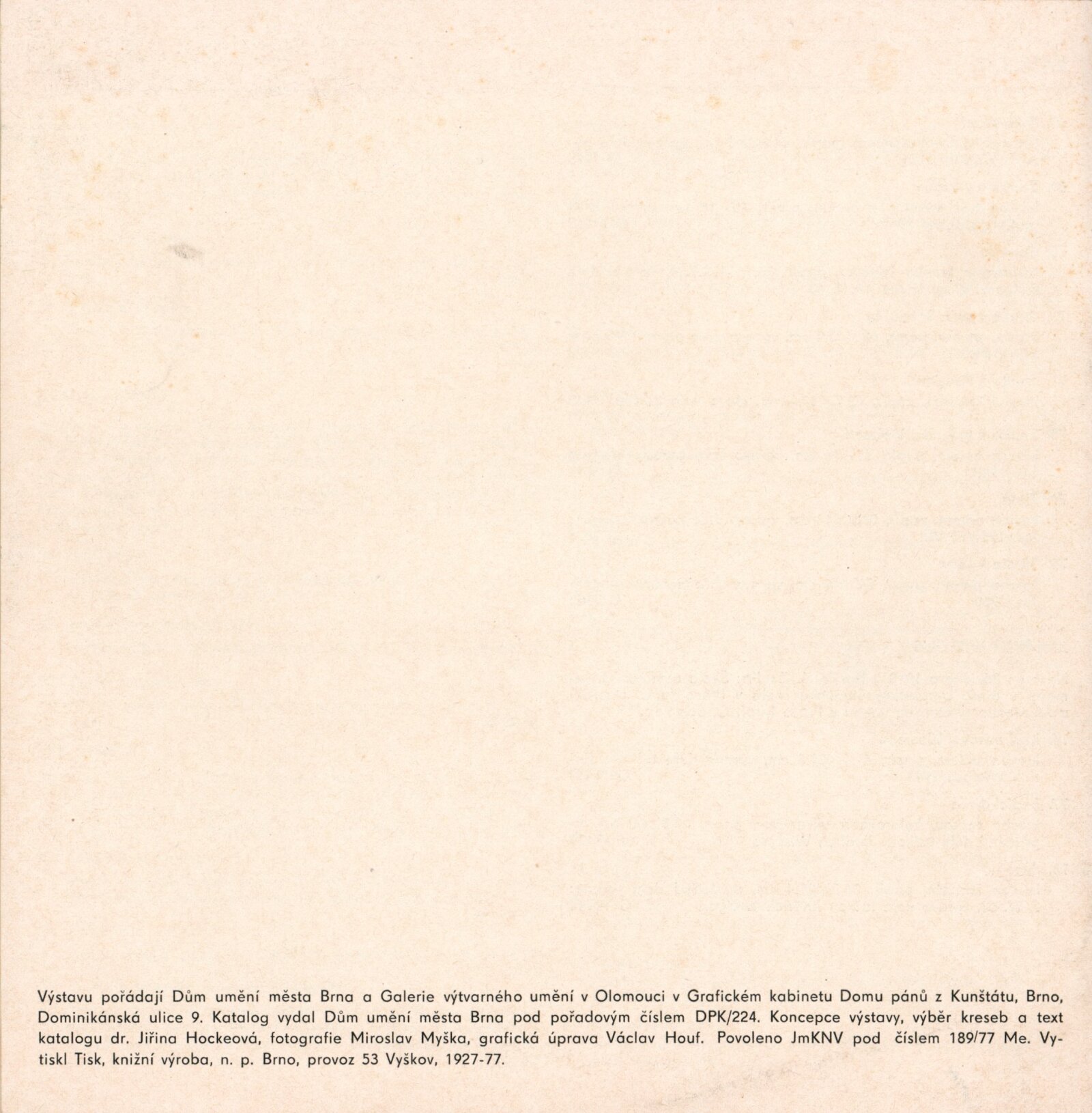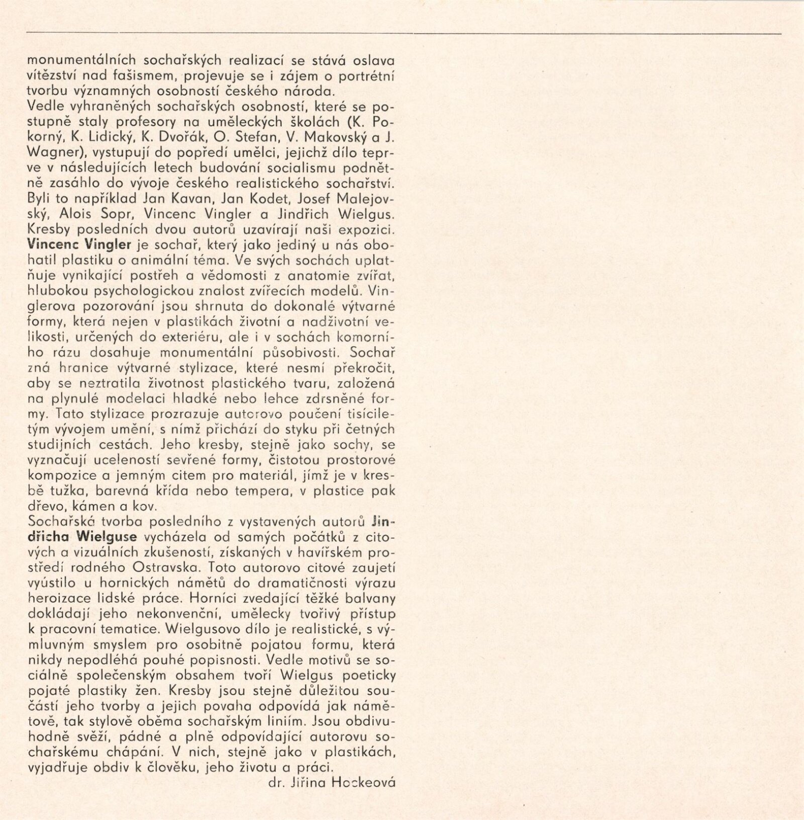 Česká sochařská kresba XX. století. Kresby ze sbírek Galerie výtvarných umění v Olomouci: Dům umění / Dům pánů z Kunštátu, Kabinet grafiky, 4. 9. – 2. 10. 1977 / Text: Jiřina Hockeová. – Brno: DUmB, 1977. – 21 s., obr., DPK 658. – MG; MMB