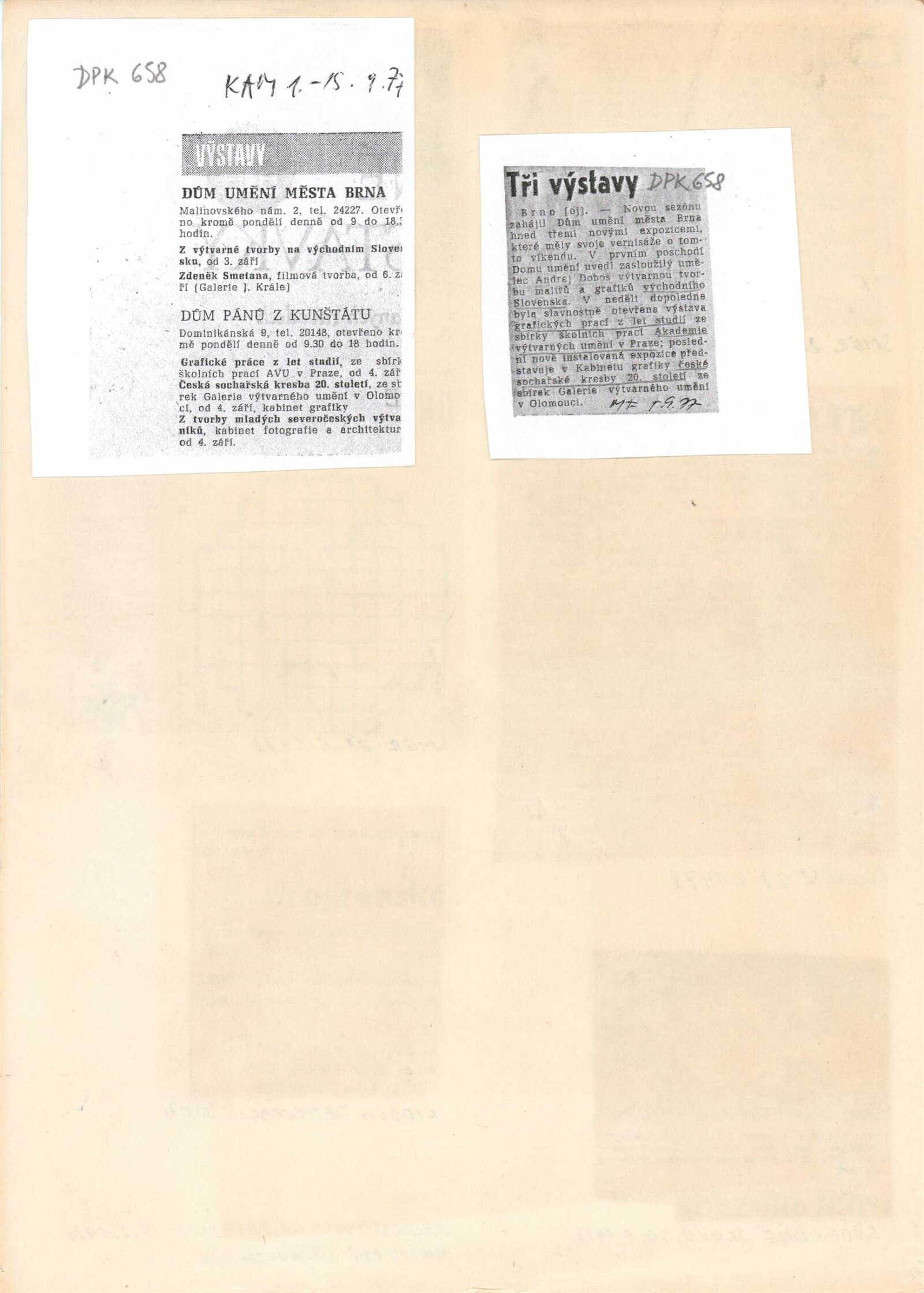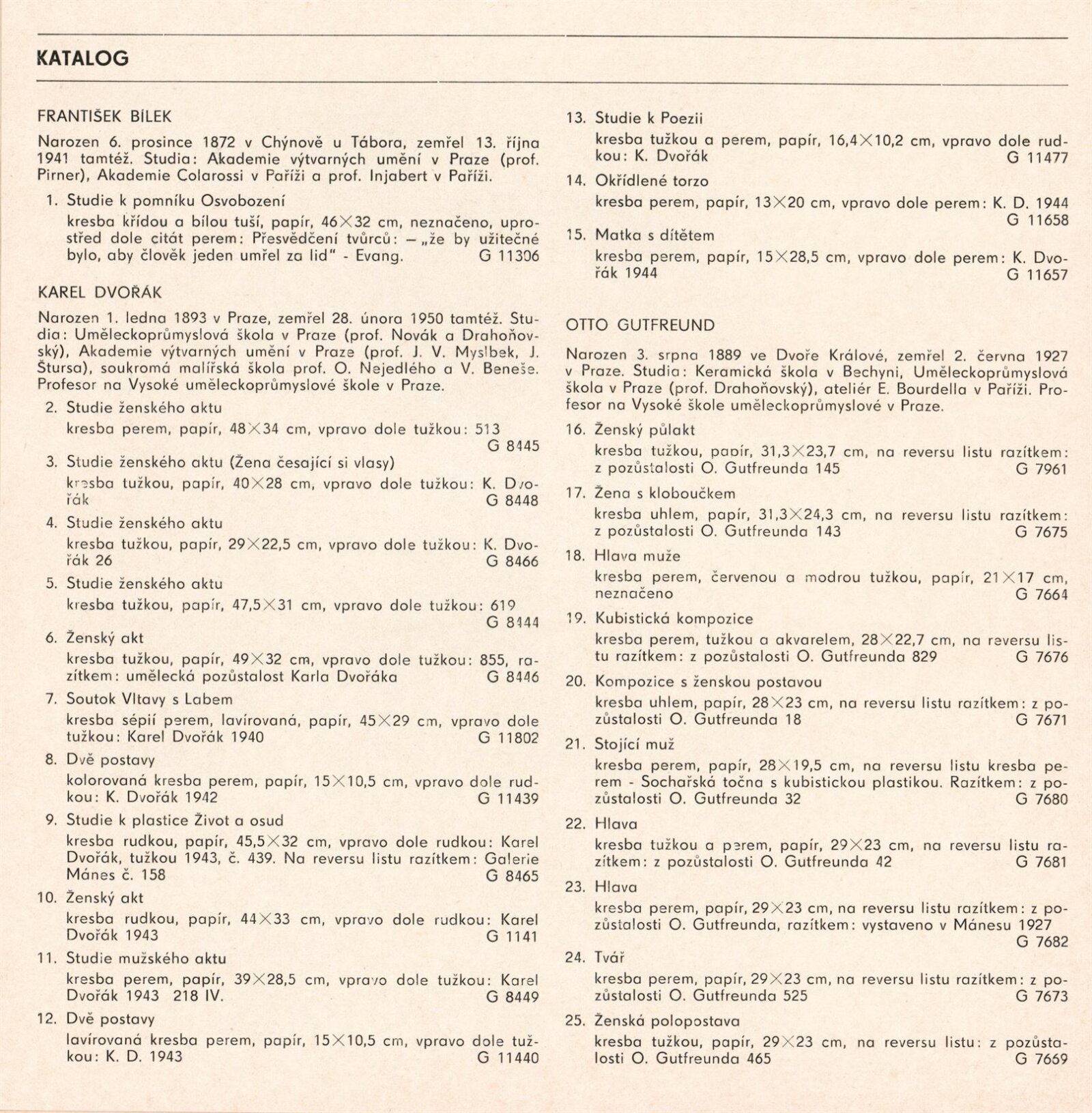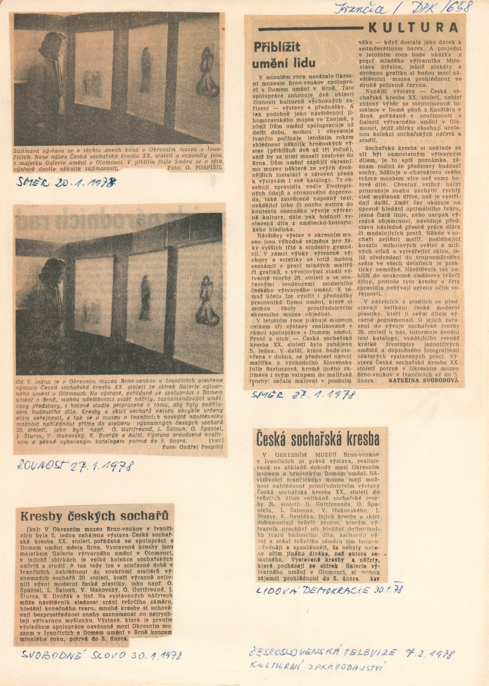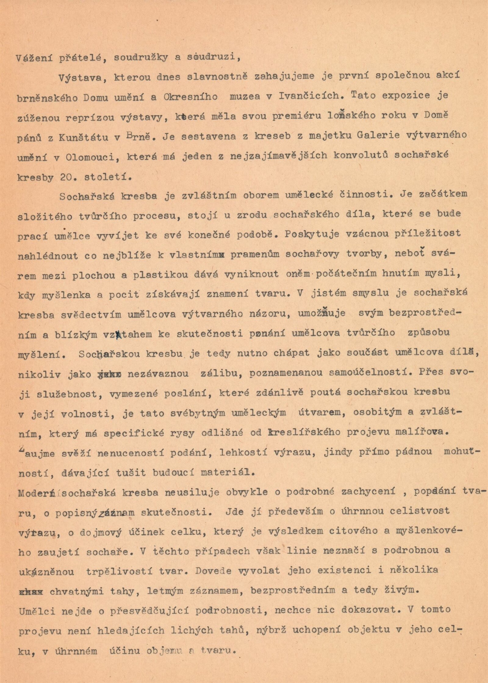 Česká sochařská kresba XX. století. Kresby ze sbírek Galerie výtvarných umění v Olomouci: Dům umění / Dům pánů z Kunštátu, Kabinet grafiky, 4. 9. – 2. 10. 1977 / Text: Jiřina Hockeová. – Brno: DUmB, 1977. – 21 s., obr., DPK 658. – MG; MMB