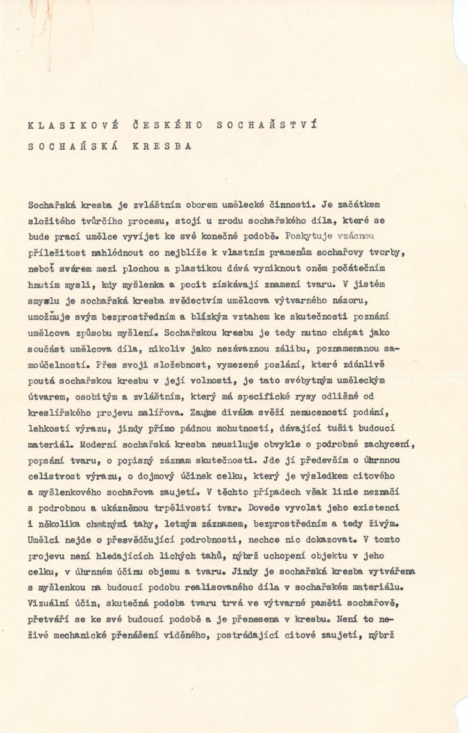Česká sochařská kresba XX. století (ze sbírek GVU v Olomouci)