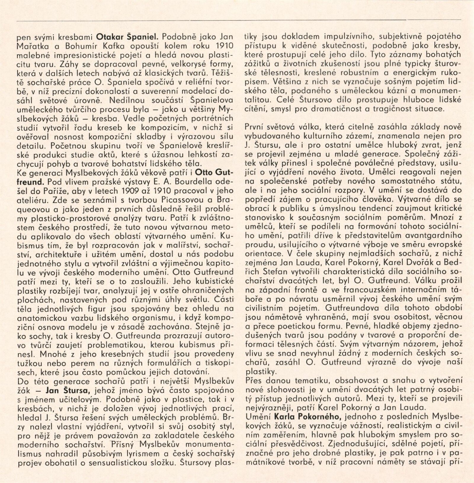 František Bílek, Karel Dvořák, Otto Gutfreund, Josef Kubíček, Jan Lauda, Vincenc Makovský, Karel Pokorný, Ladislav Šaloun, Otakar Španiel, Jan Štursa, Vincenc Vingler, Josef Wagner, Jindřich Wielgus