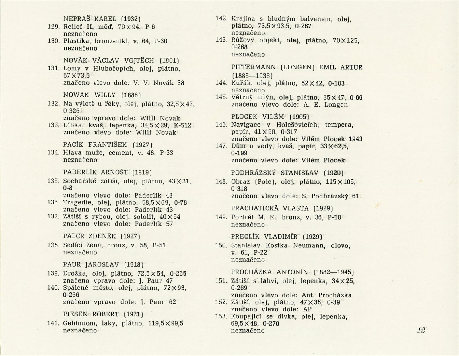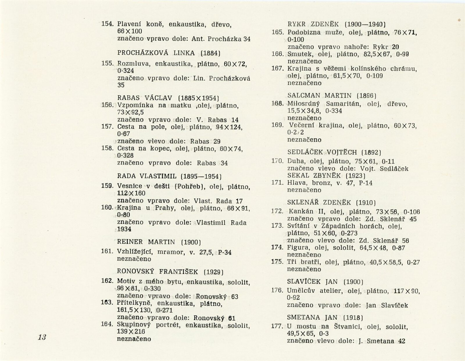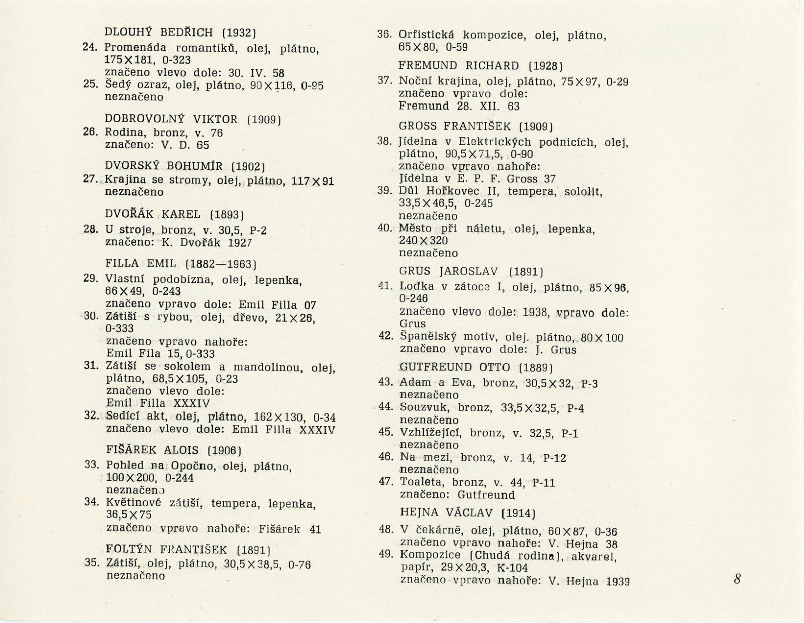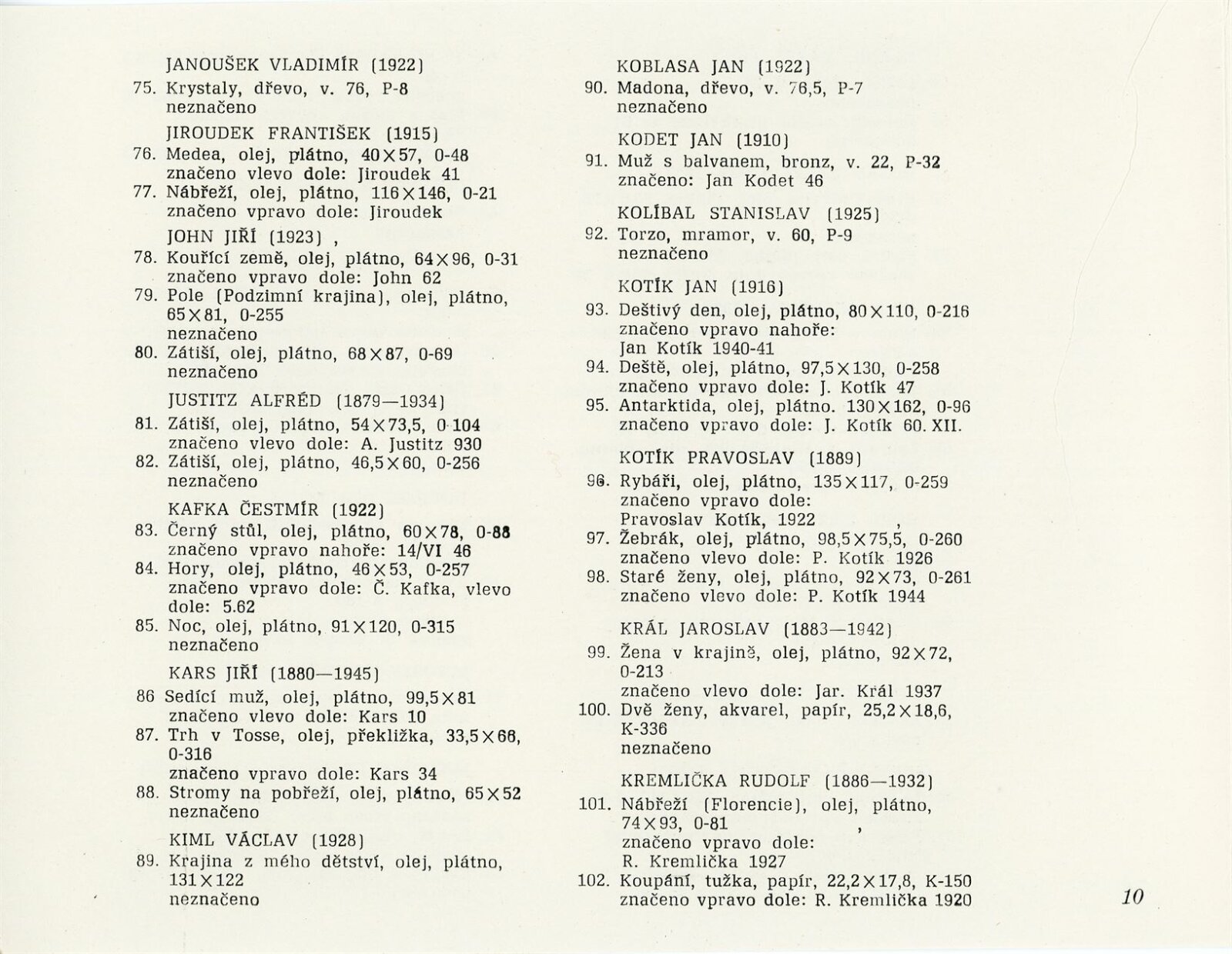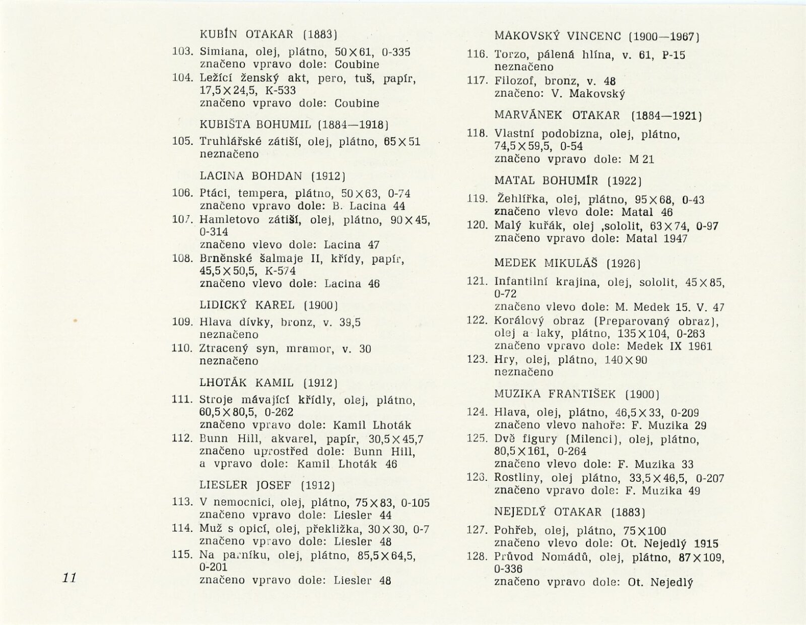 České výtvarné umění XX. století ze sbírek Středočeské galerie: Dům umění, 19. 2. – 27. 3. 1967/ Převzatý katalog s obálkou pro brněnskou výstavu. České umění XX. století: Středočeská galerie, Expozice Nelahozeves, květen–říjen 1967/ Text: Jiří Kohoutek. – Praha: Středočeská galerie, 1967. – 15 s., 46 l. obr. příl., DU 477