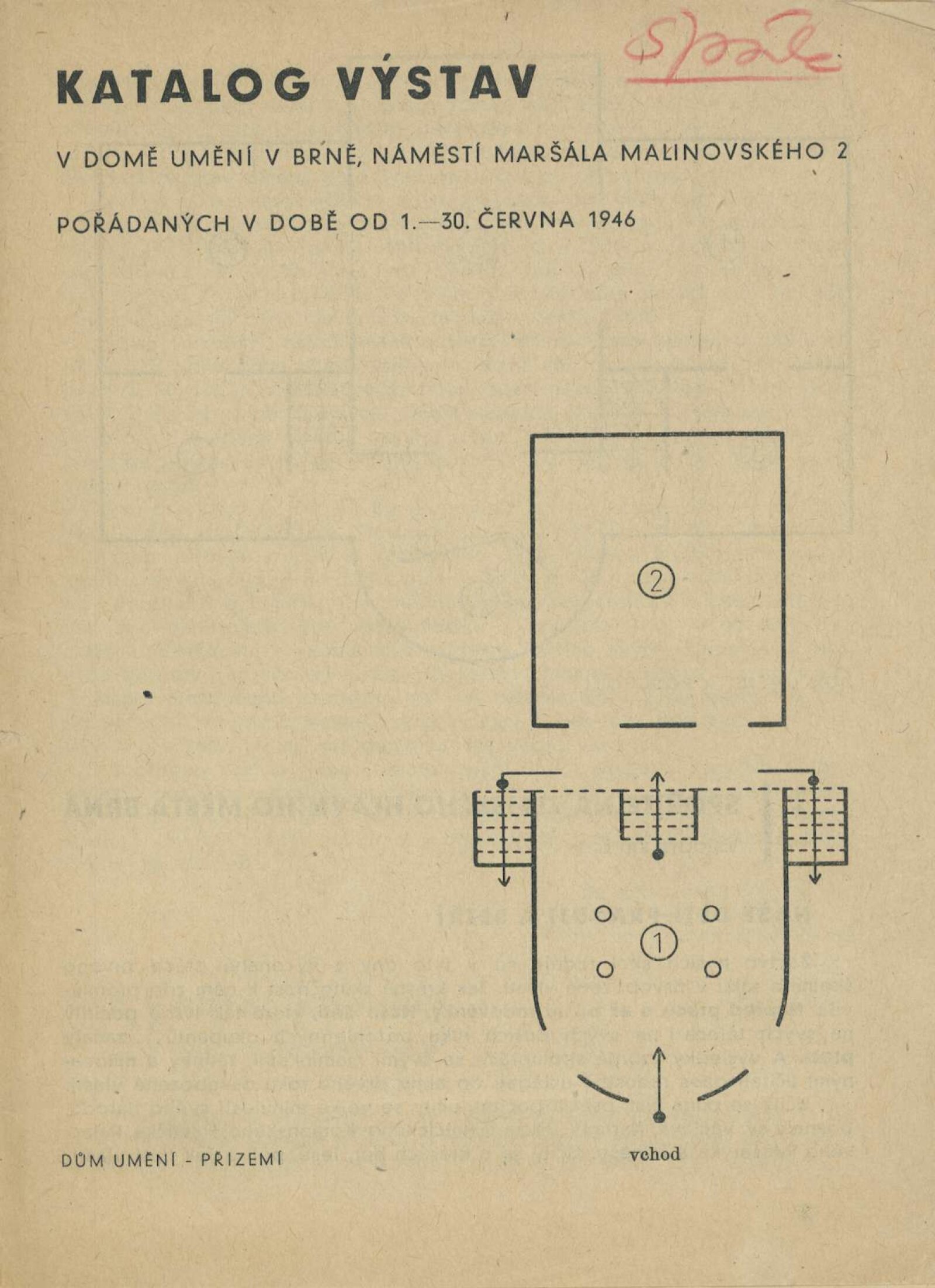 Katalog výstav v Domě umění, pořádaných 1. 6. – 30. 6. 1946 / Obsahuje výstavy: Spořitelna zemského hlavního města Brna, Naše děti pracují a šetří, Royal Air Force, Československá bombardovací peruť v Anglii za války 1941–1945, In memoriam Václava Špály, Výtvarníci dětem. – Brno: Dům umění, Zemský výzkumný ústav pedagogický a Klub přátel umění v Brně, 1946. – 7 s., obr., DU 16–18. – UPM