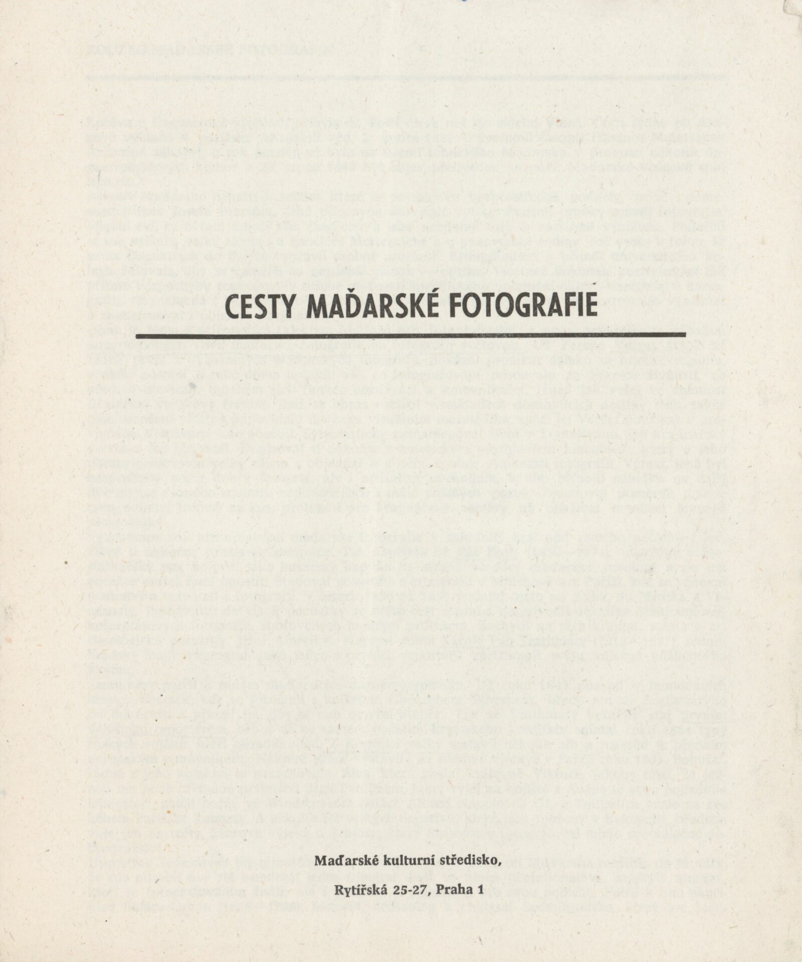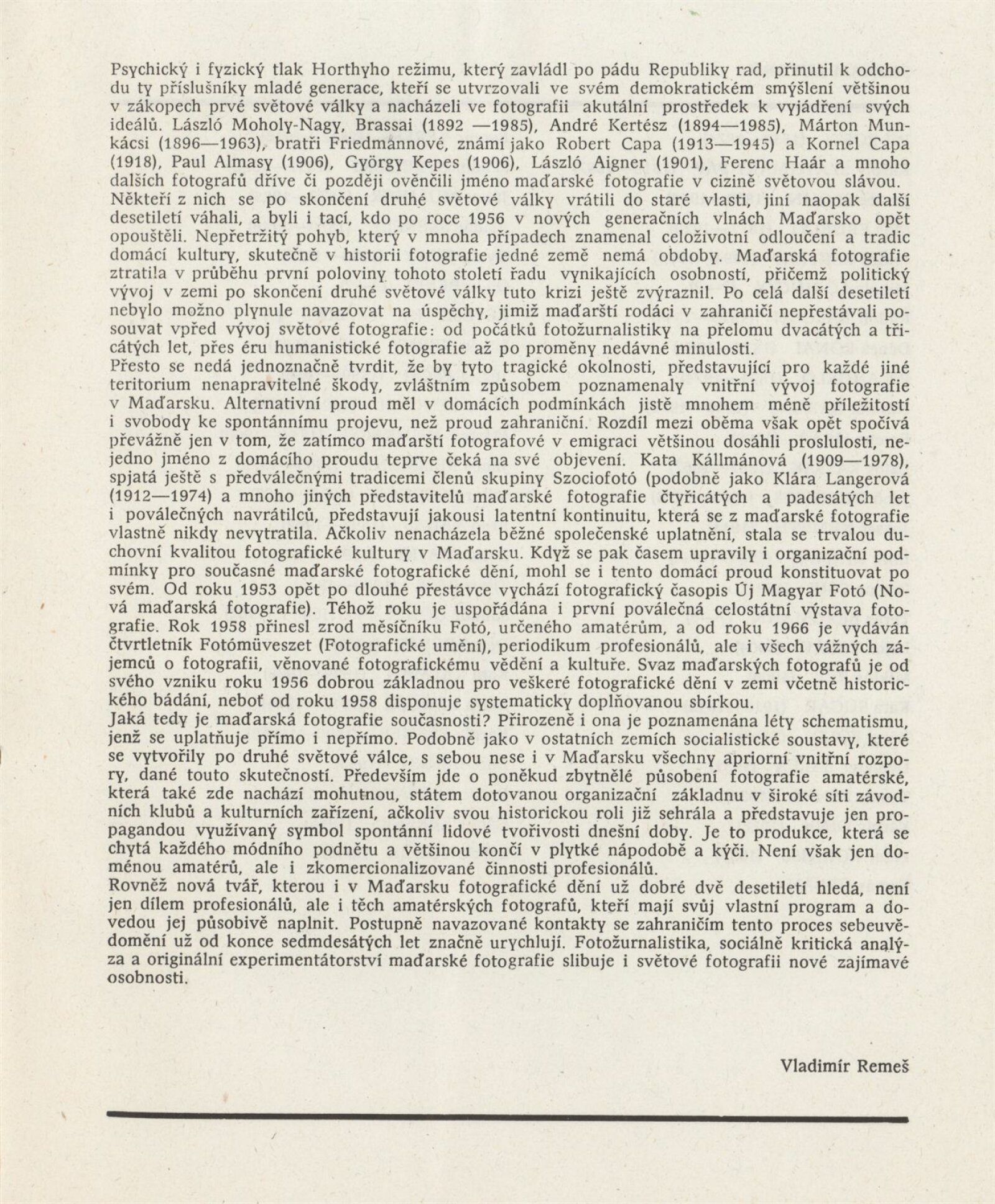 Cesty maďarské fotografie: Dům umění města Brna / Dům pánů z Kunštátu, Kabinet fotografie Jaromíra Funka, 23. 1. – 18. 2. 1990 / Text: Vladimír Remeš. – Praha: Maďarské kulturní středisko, [1990]. – [6] s., DPK 931