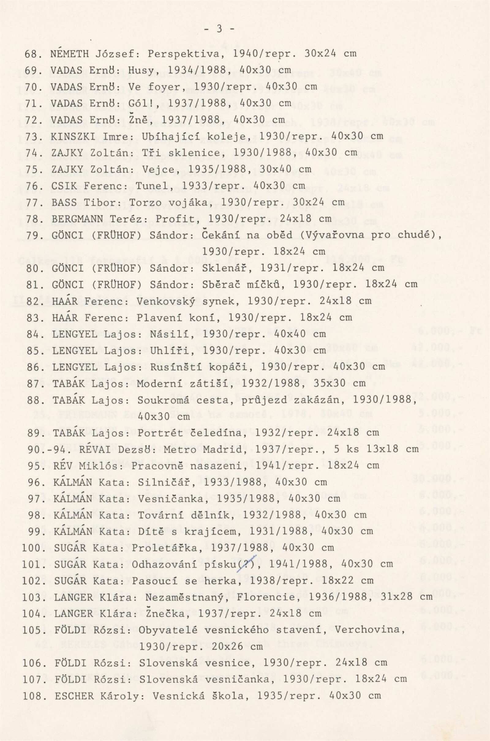 katalog (převzatý), seznam exponátů, pojistný seznam, provozní korespondence