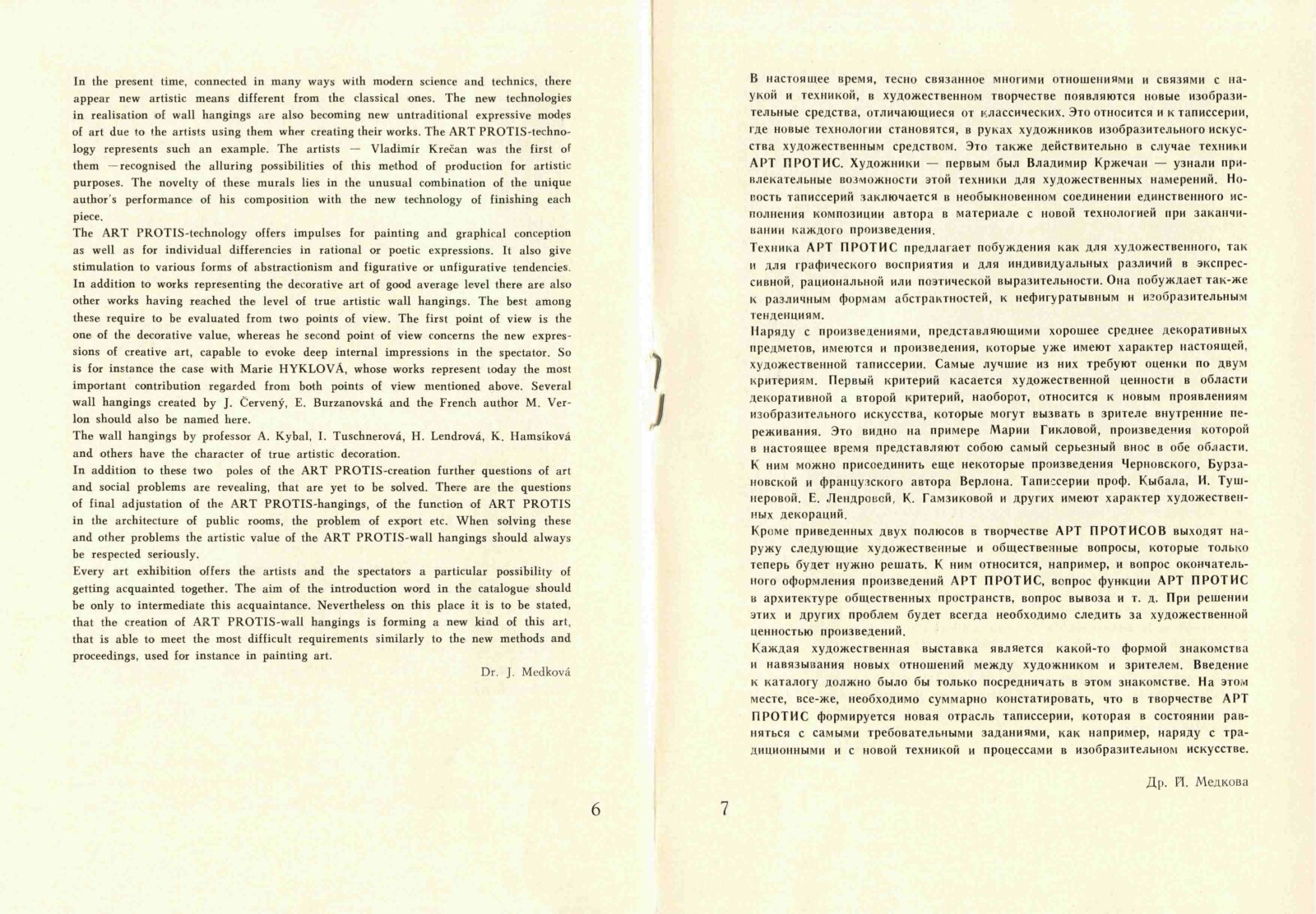 Cetok. Textilní a oděvní průmysl včera, dnes a zítra: Dům umění, 9. 10. – 1. 11. 1970 / Kromě řady propagačních materiálů vydán dílčí katalog Art protis. Text Jiřina Medková. – Brno: Rapid, československá reklamní agentura, 1970. – 10 s., seznam vybraných exponátů 4 s., skládačka 8 s., DU 554
