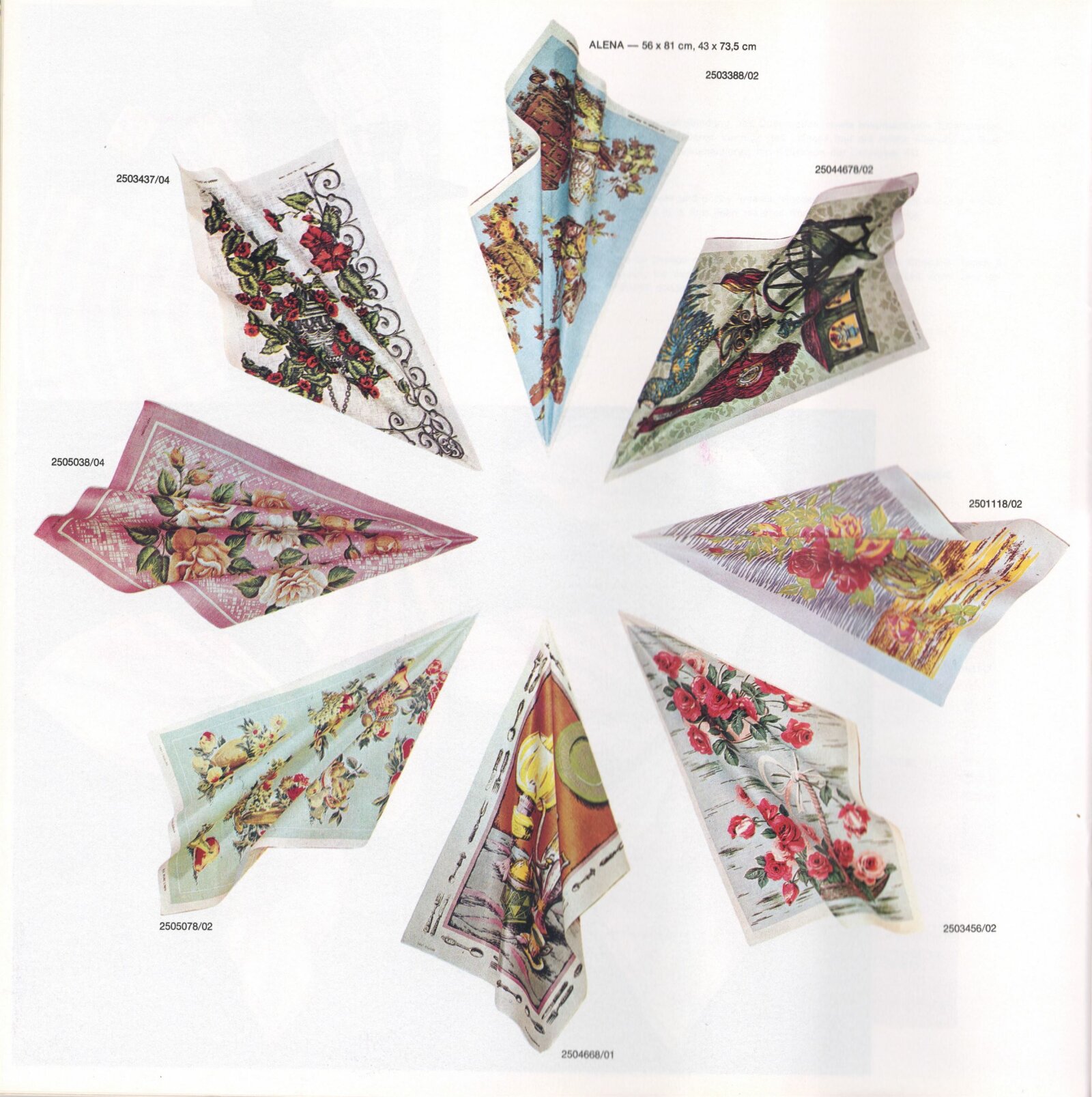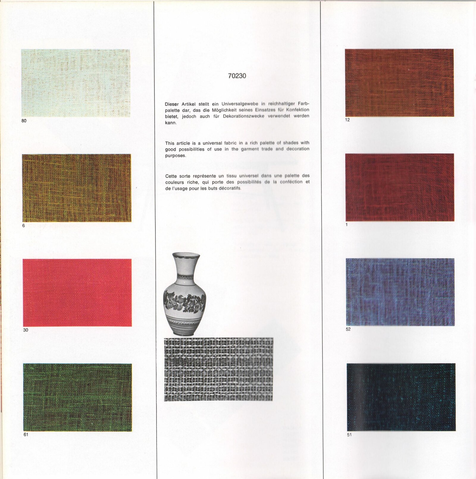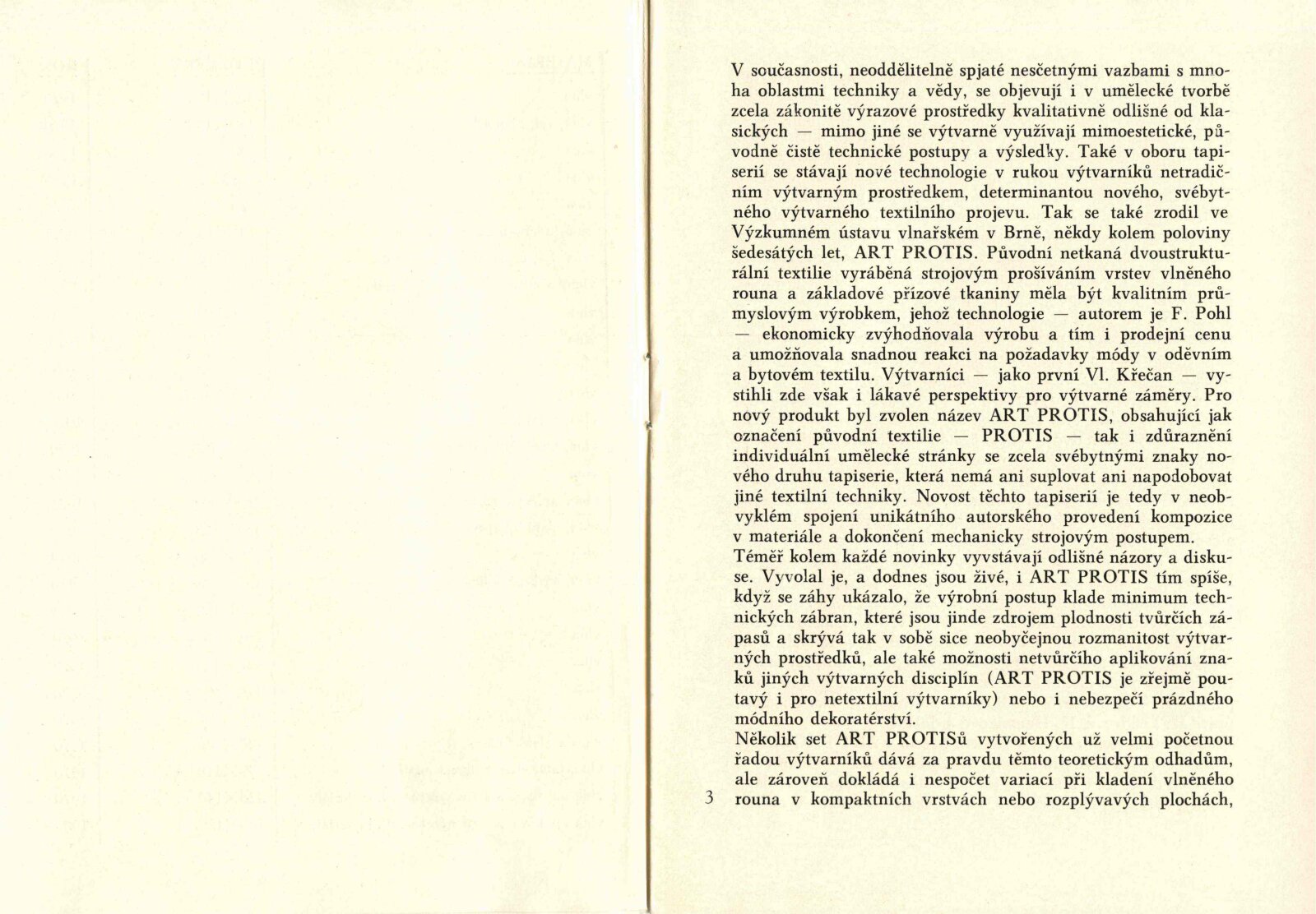 pozvánka, katalog Art Protis, katalog bavlnářského průmyslu (RJ, FJ, NJ), katalog Textilní a oděvní konference, plány rozvržení instalace na půdorysu DU, prodejní katalogy a reklamní materiály textilního průmyslu, zprávy v tisku
