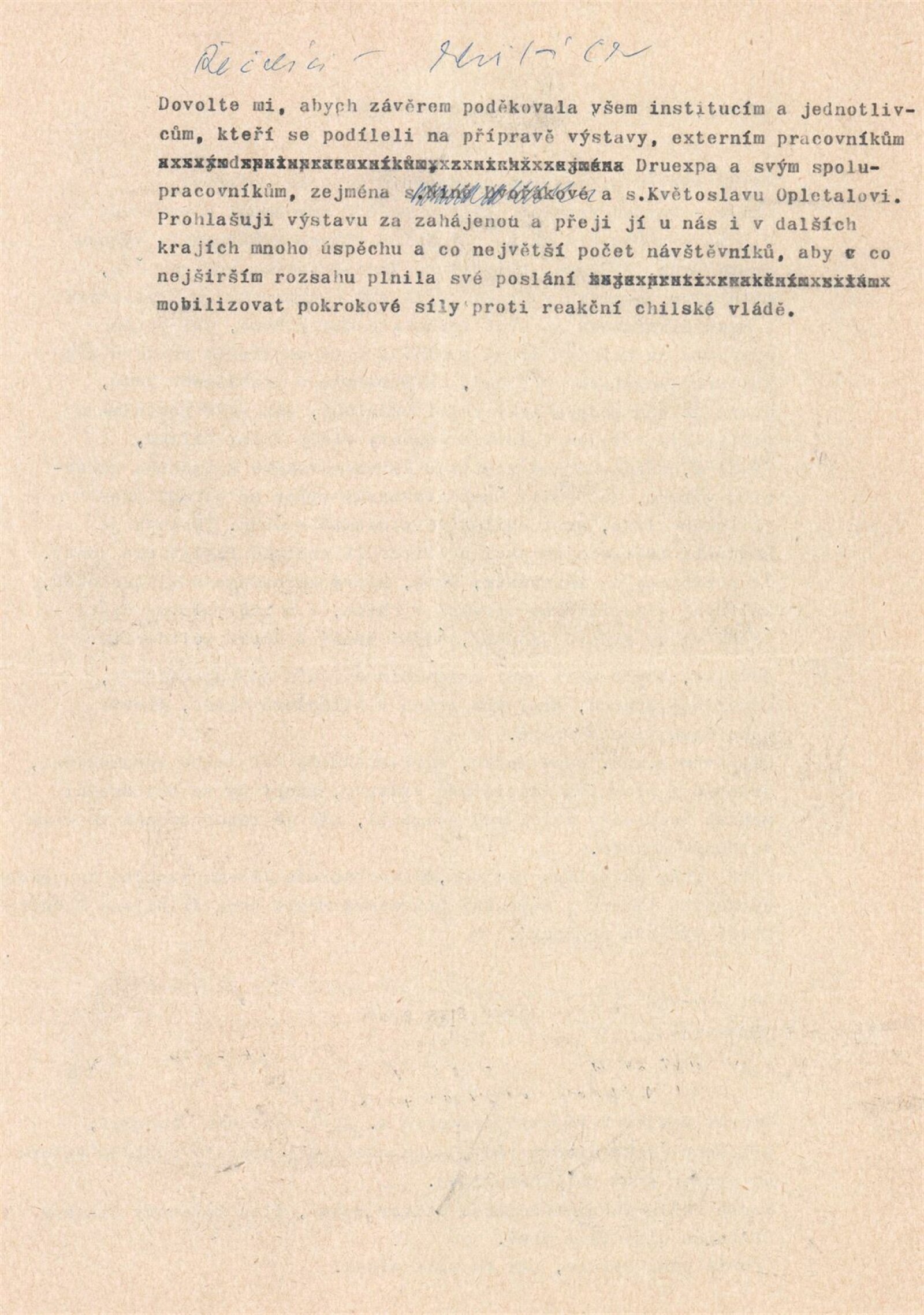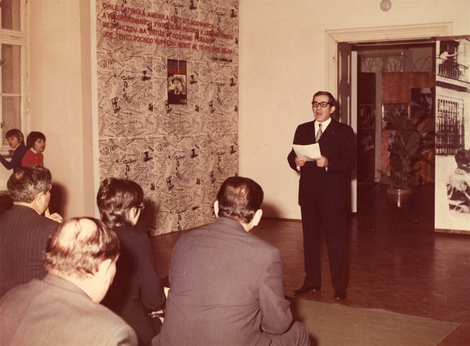 Výstavu zahájil Antonín Stejskal (zástupce Československého výboru na obranu práv chilského lidu).