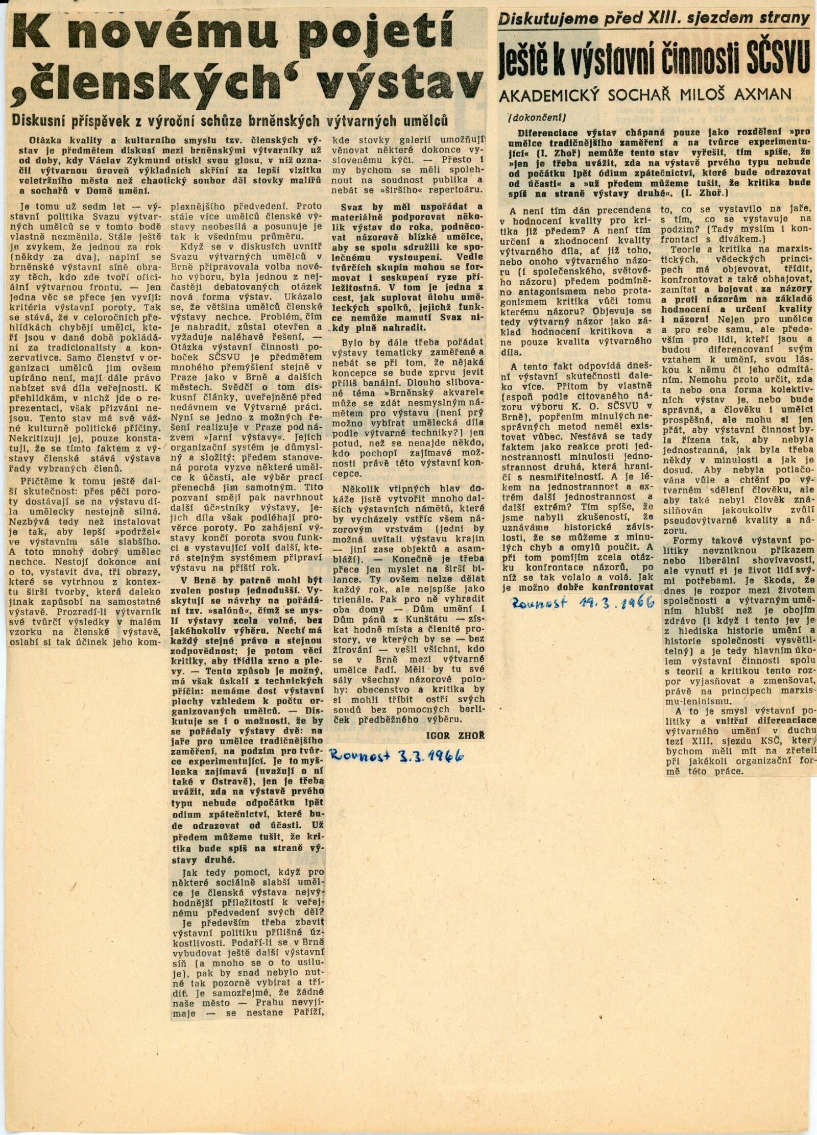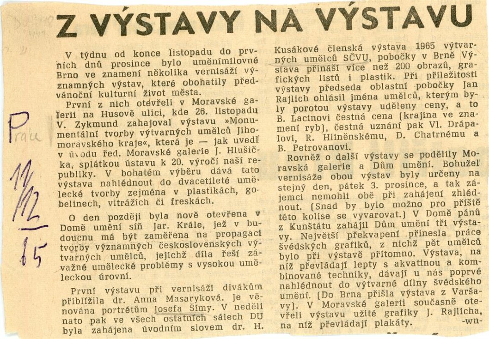Členská výstava oblastní pobočky Svazu československých výtvarných umělců v Brně: Dům umění Brno, 28. 11. 1965 – 3. 1. 1966 / Text: Helena Kusáková-Knozová. – Brno: SČSVU, 1966. – 28 s., obr., životní data vystavujících, DU 449. – Kubíček 7533; MZK; MG