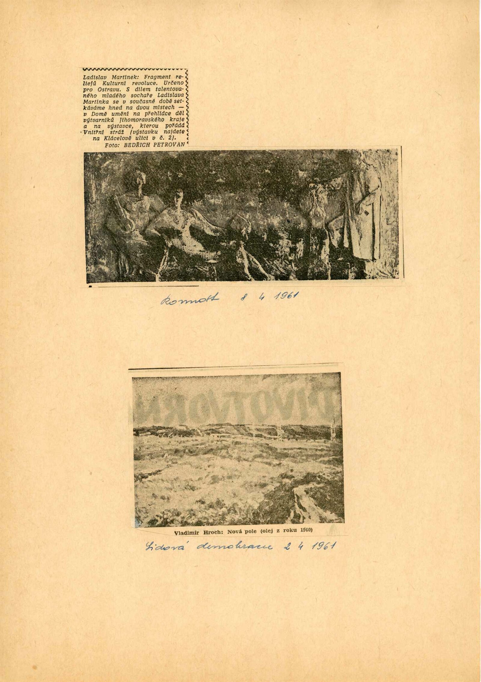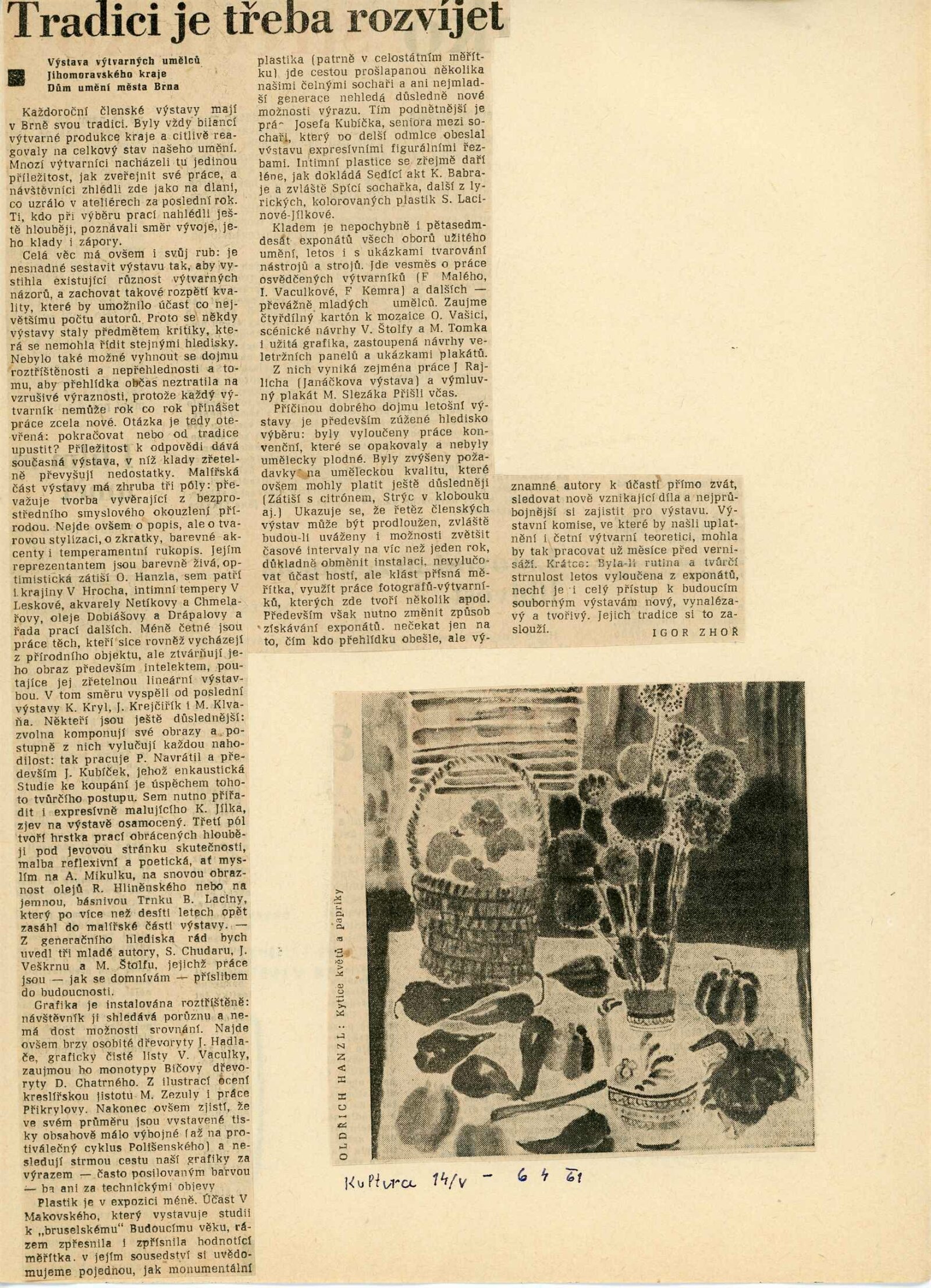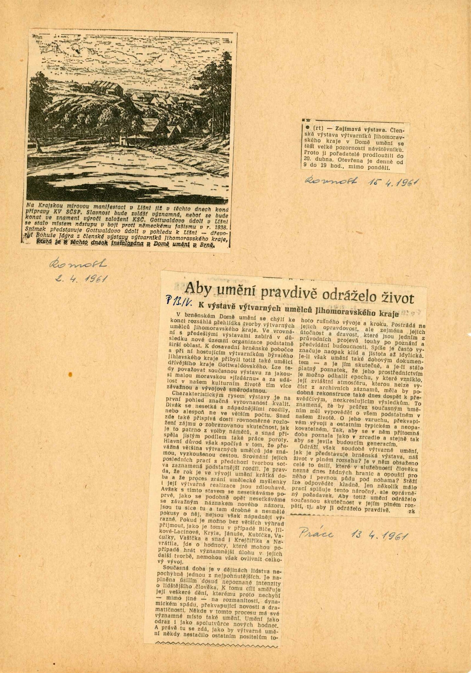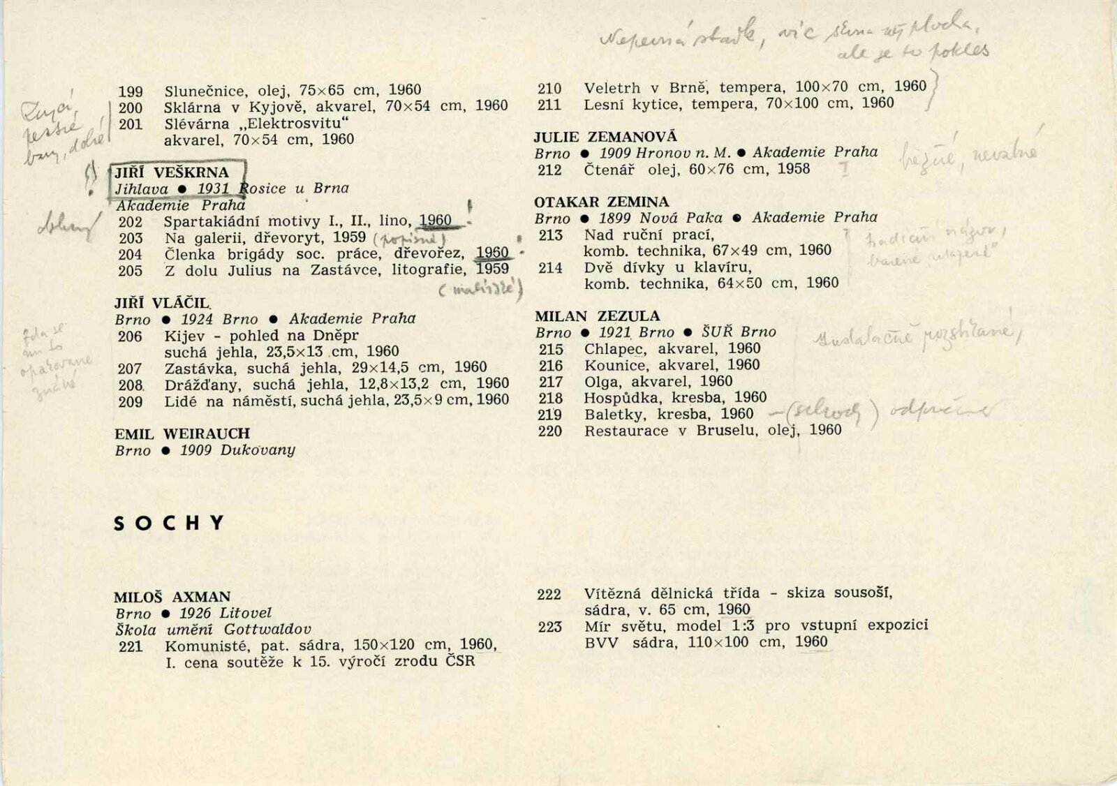 Členská výstava výtvarných umělců Jihomoravského kraje: Dům umění města Brna, 19. 3. – 16. 4. 1961 / Text: Ivo Krsek. – Brno: SČSVU, 1961. – 52 s., obr., životní data vystavujících umělců, DU 396. – MZK; MG