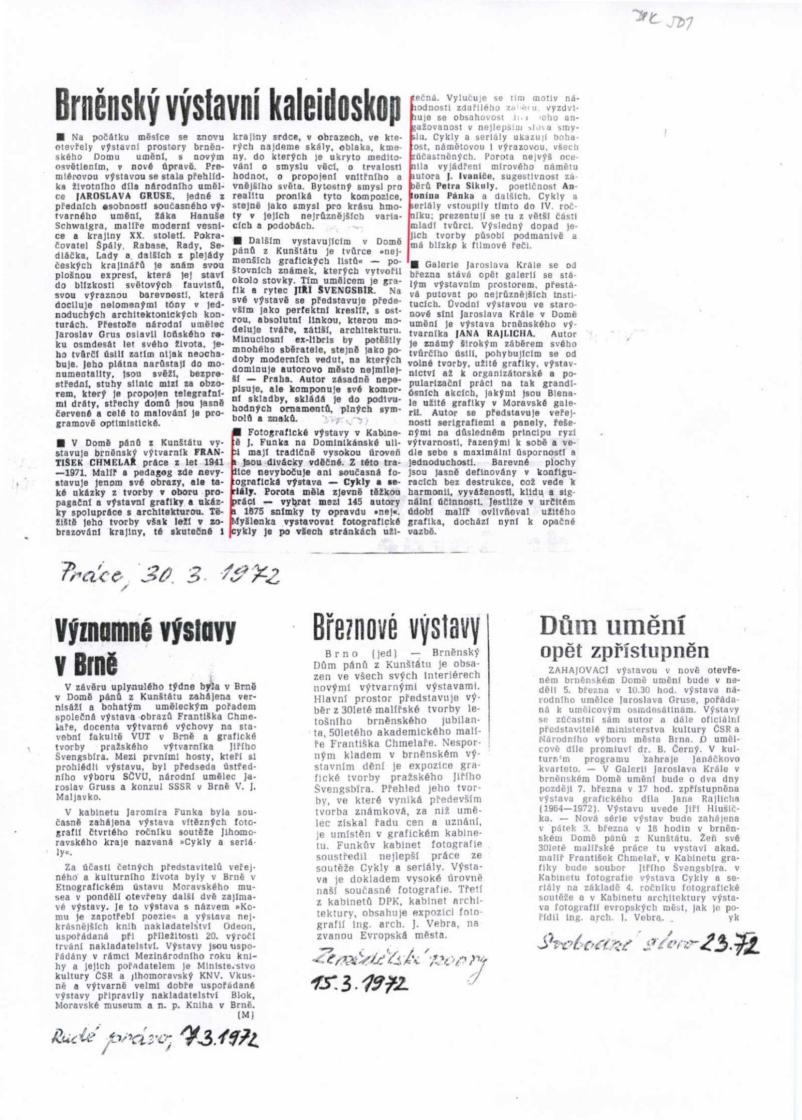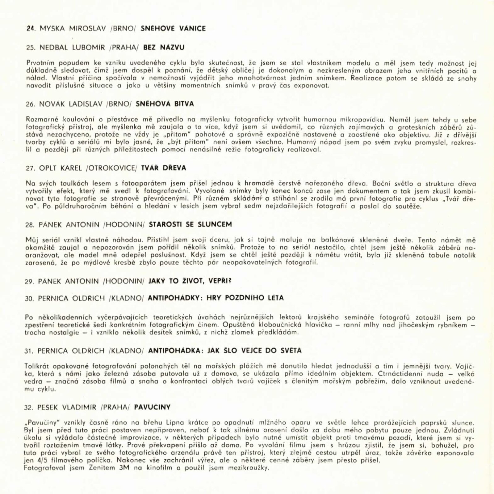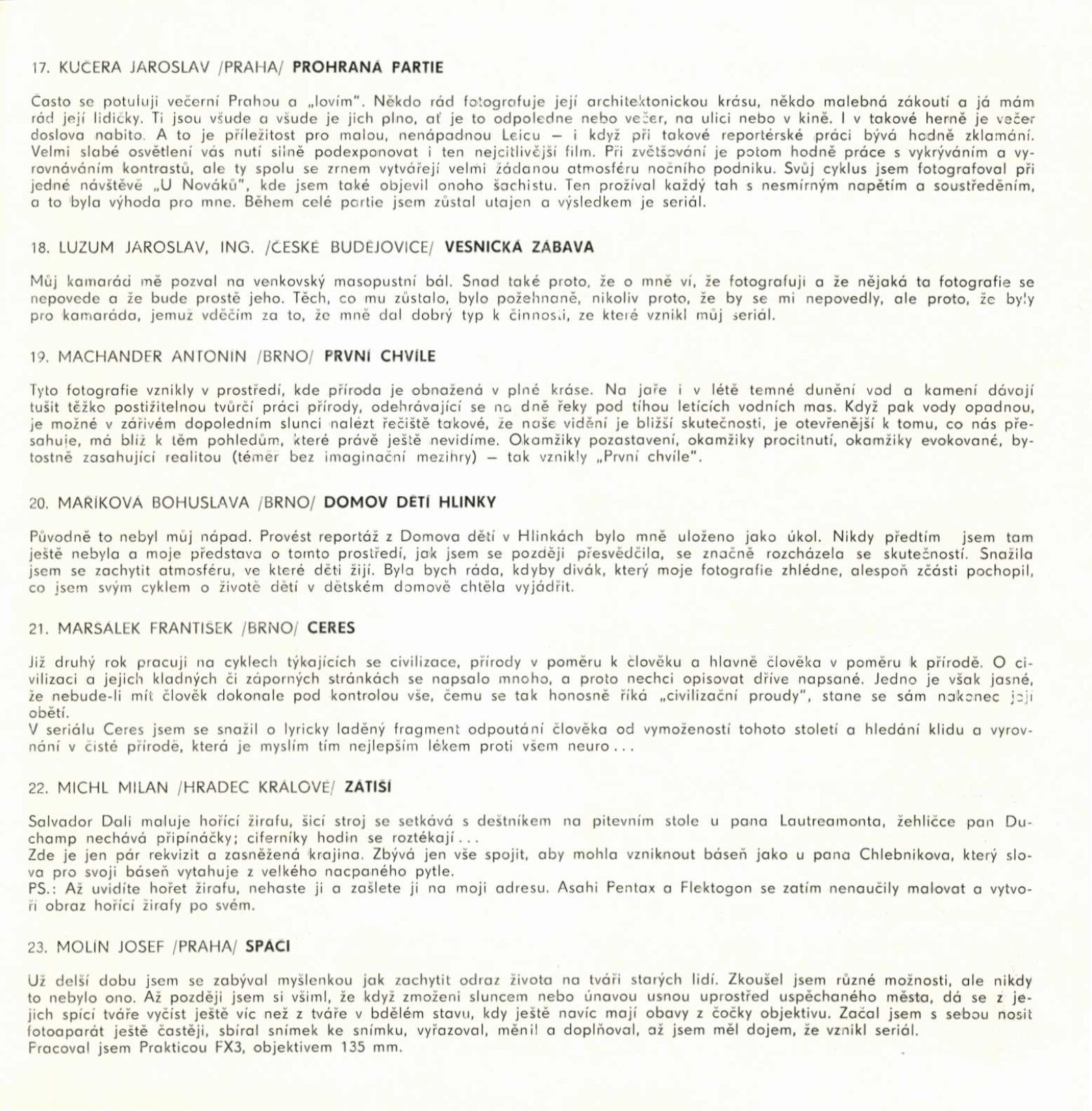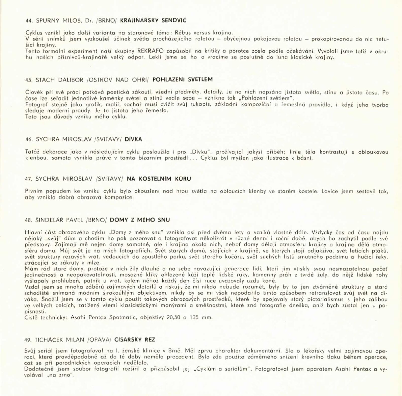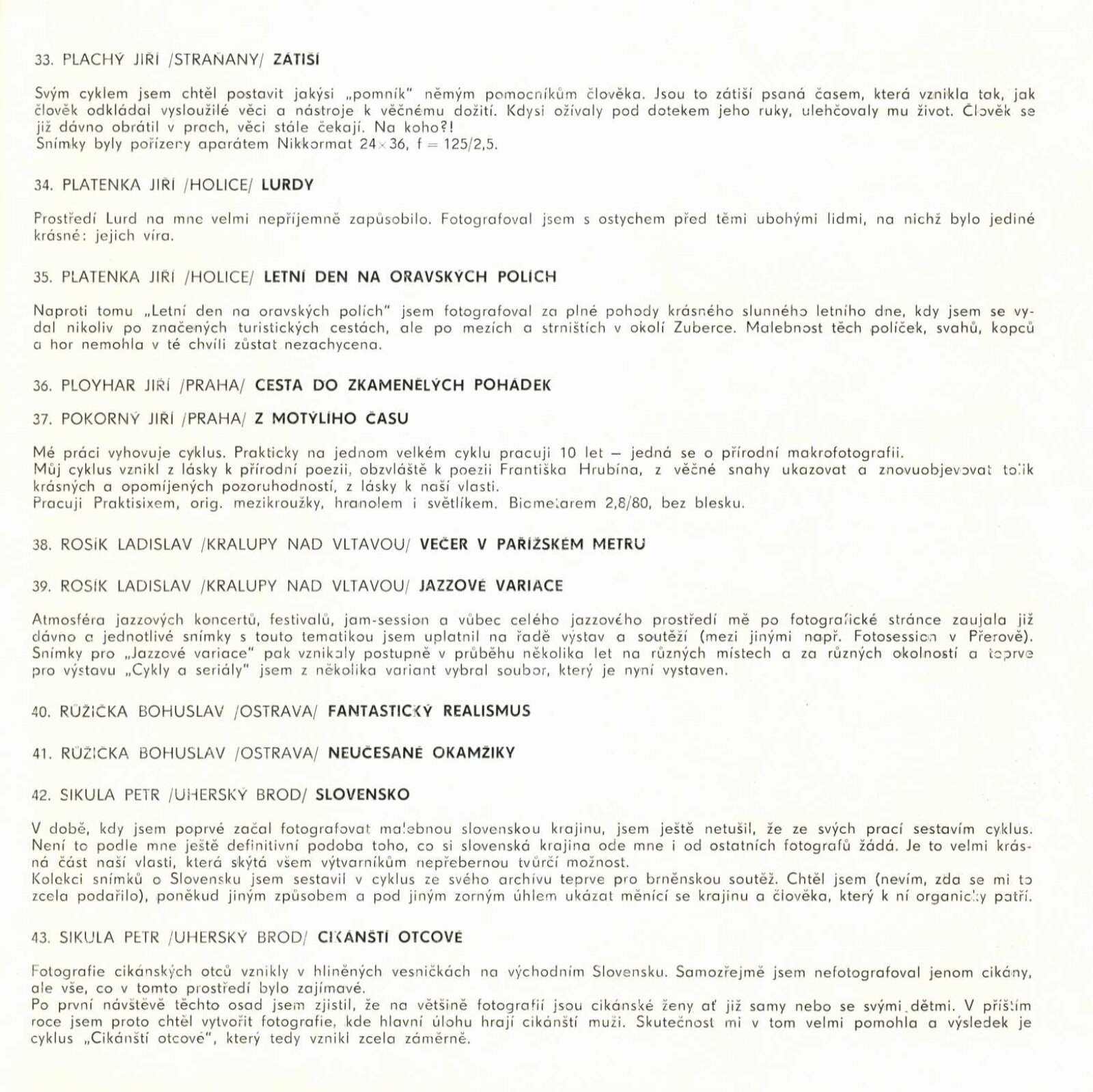 Cykly a seriály. Katalog výstavy: Dům umění města Brna / Dům pánů z Kunštátu, 120. výstava Kabinetu fotografie Jaromíra Funka, 3. 3. – 26. 3. 1972 / Texty: Antonín Koutník, autoři fotografií. – Brno: Krajské kulturní středisko, 1972. – 30 s., obr., DPK 501. – MZK