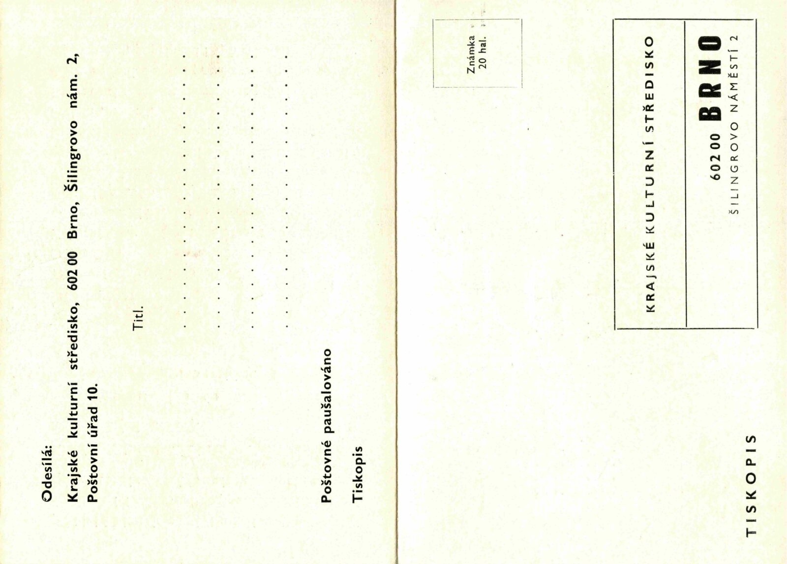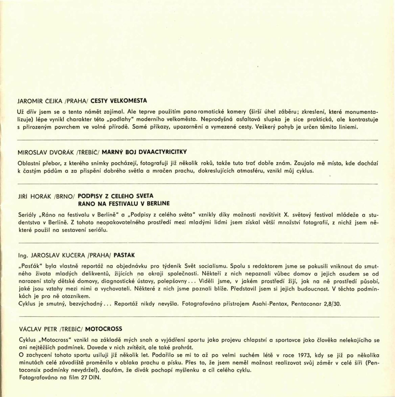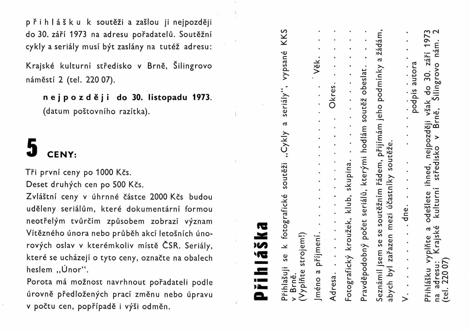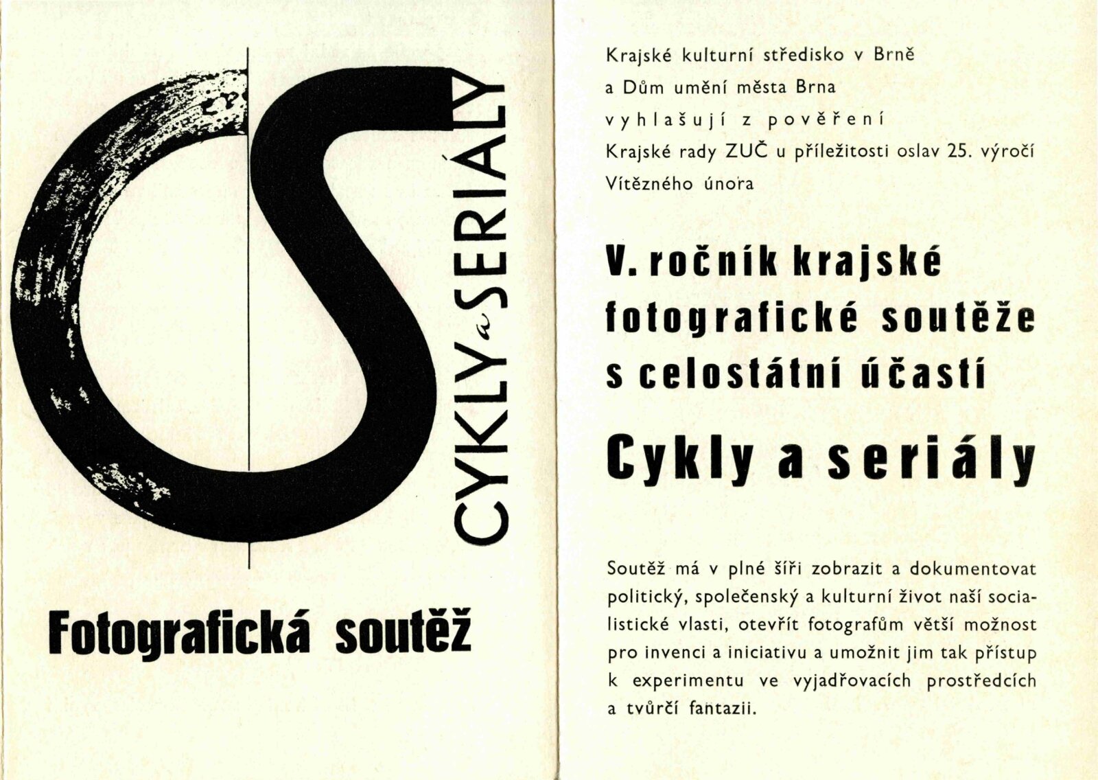 Cykly a seriály: Dům umění / Dům pánů z Kunštátu, 8. 3. – 14. 4. 1974 / Katalog výstavy pořádané Krajským kulturním střediskem a Domem umění města Brna. – Texty: Antonín Koutník a někteří autoři fotografií. – Brno: Krajské kulturní středisko, 1974. – 24 s., obr., DPK 564