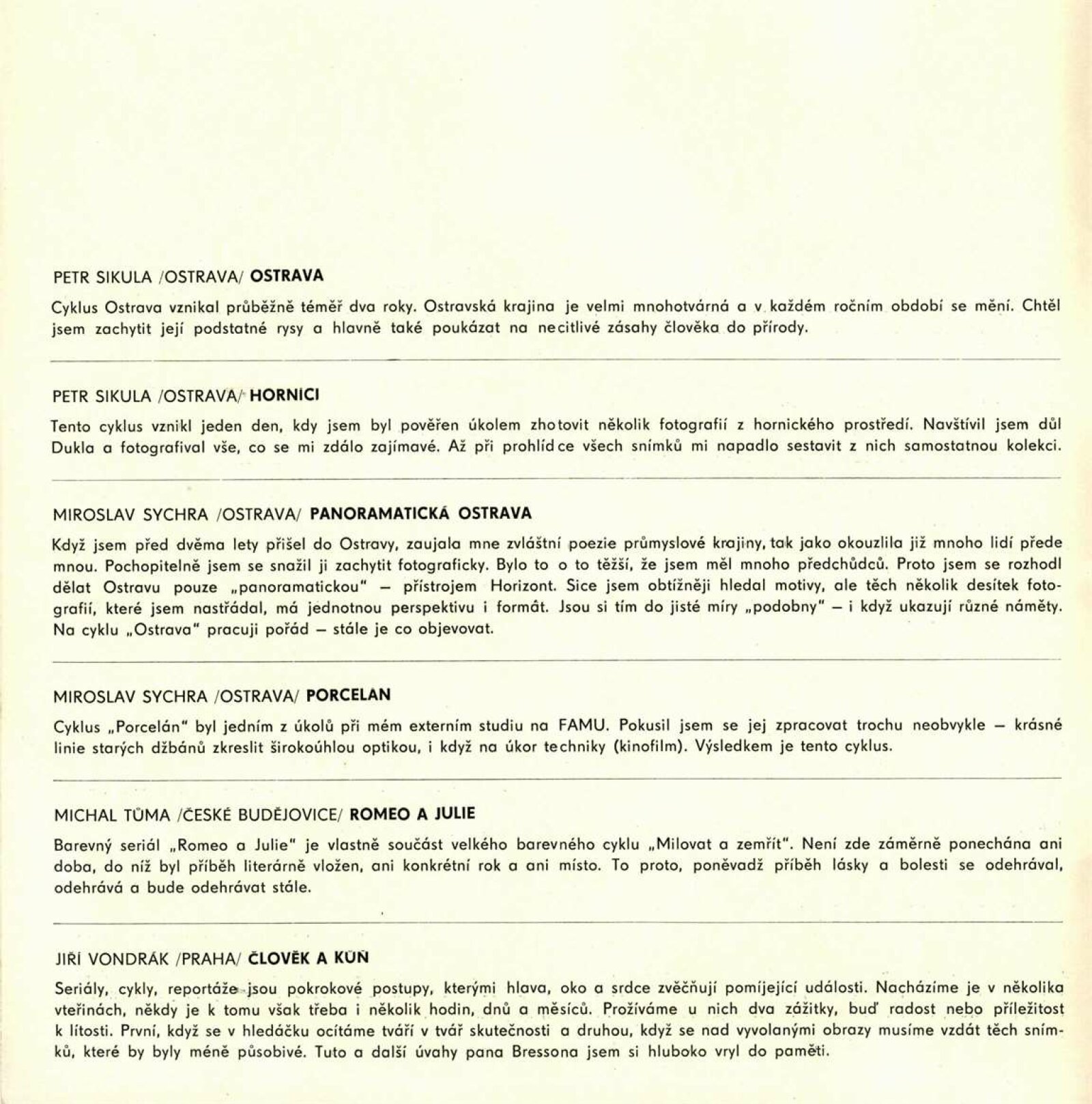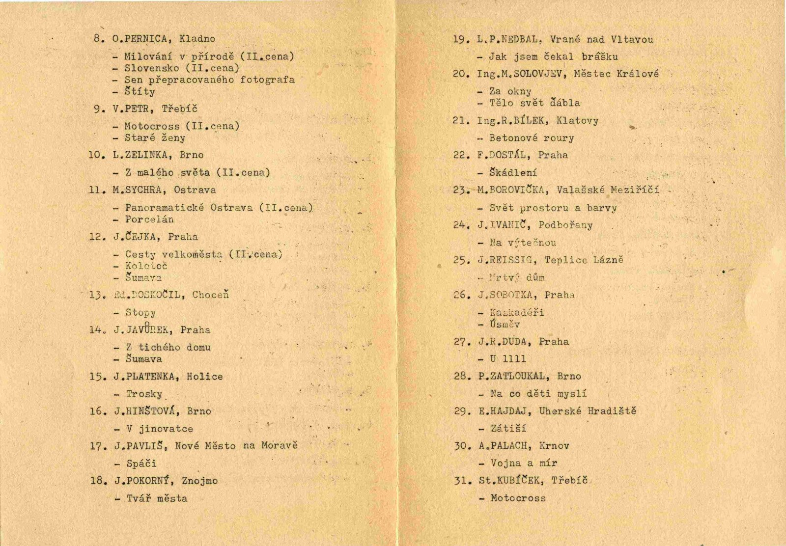 Jiří Horák, Petr Sikula, Michal Tůma, Jaromír Čejka, Miroslav Dvořák, Jaroslav Kučera, Václav Petr, Miroslav Sychra, Jiří Vondrák, Oldřich Pernica, Martin Votava, Lubomír Zelinka, Eduard Doskočil, Jaroslav Pavliš, Stanislav Kubíček, Rostislav Košťál, Josef Javůrek, Jiří Platenka, Jitka Hinštová, Jiří Pokorný, Lubomír P. Nedbal, Miroslav Solovjev, Rudolf Bílek, Milan Borovička, J. Ivanič, Jiří Reissig, Jiří Sobotka, Jakub Rudolf Duda, Pavel Zatloukal, Evžen Hajdaj, A. Palach, Michal Novotný, František Maršálek, Vladimír Skoupil, Soňa Skoupilová, Vojtěch Bartek, Drahomír Josef Růžička, František Domin, K. Korba