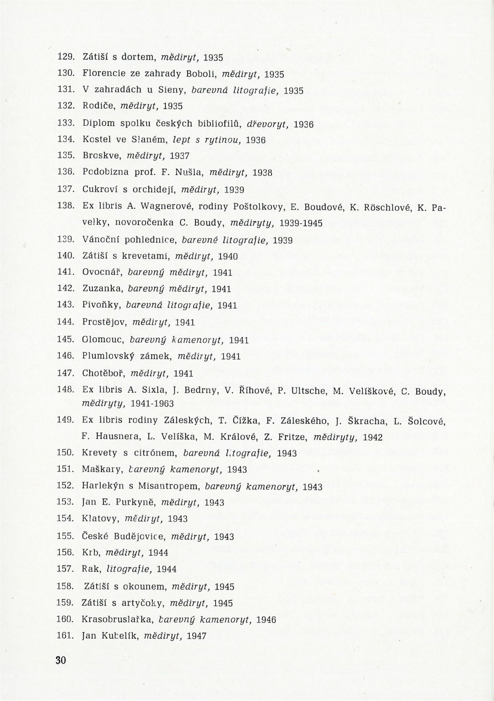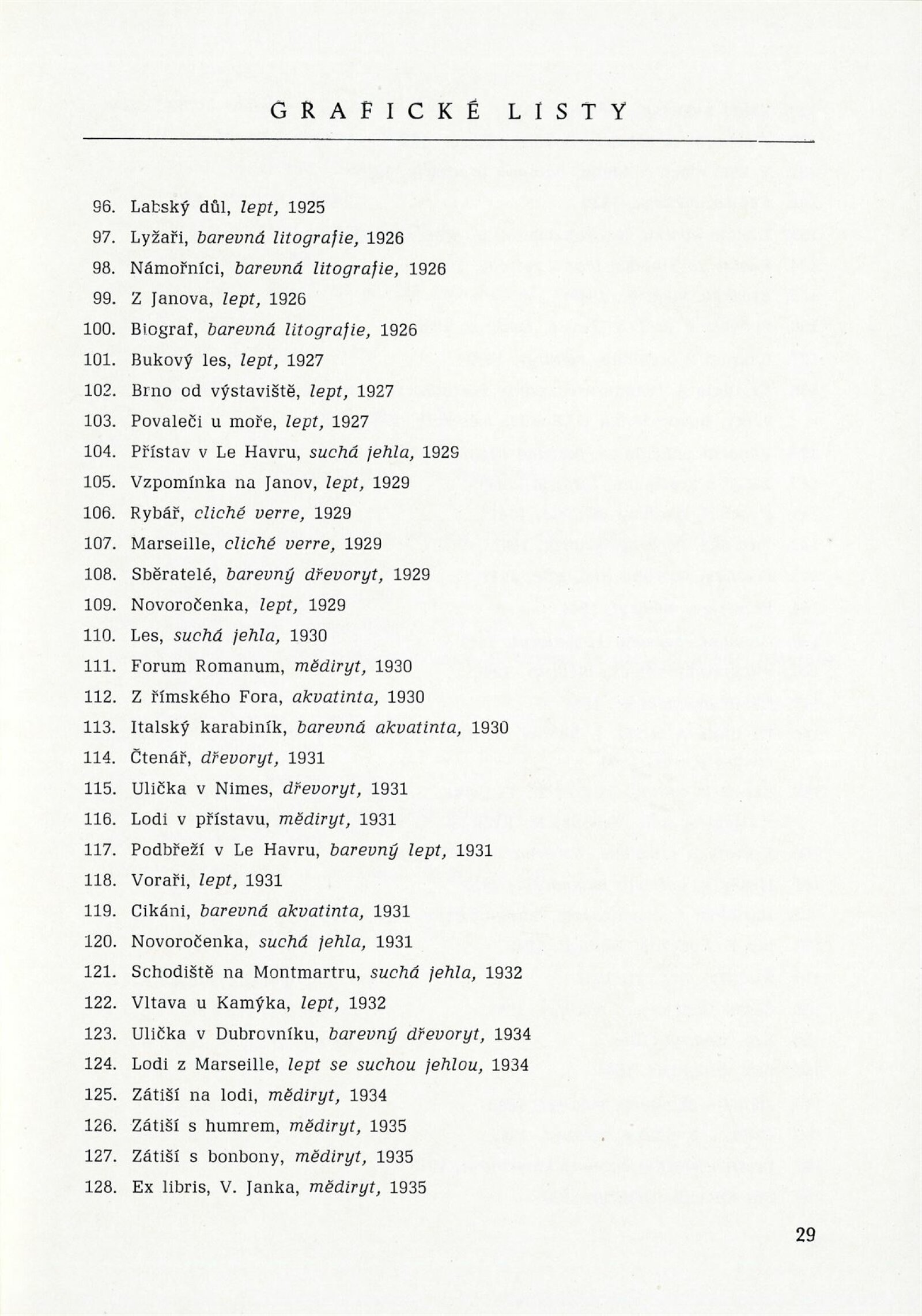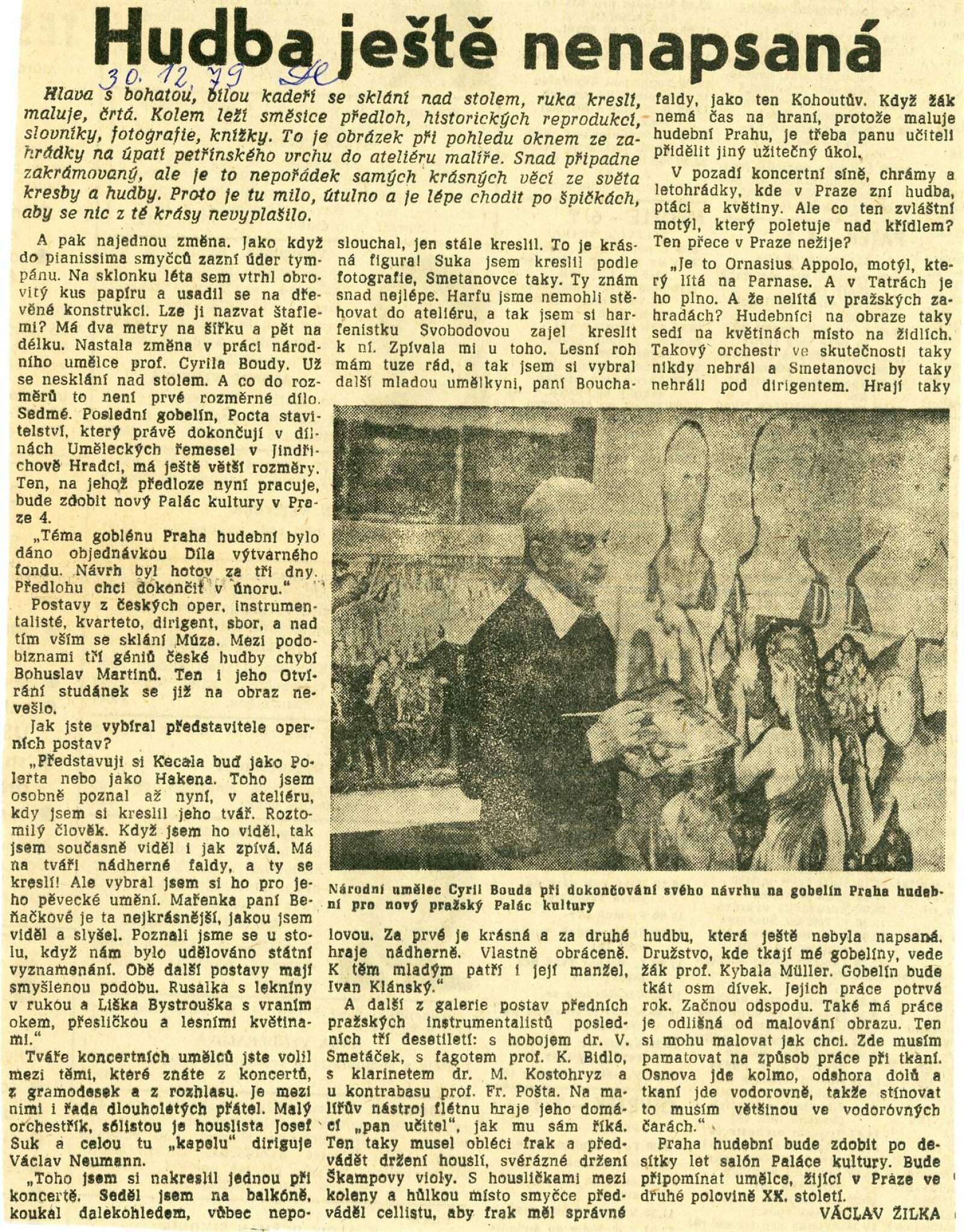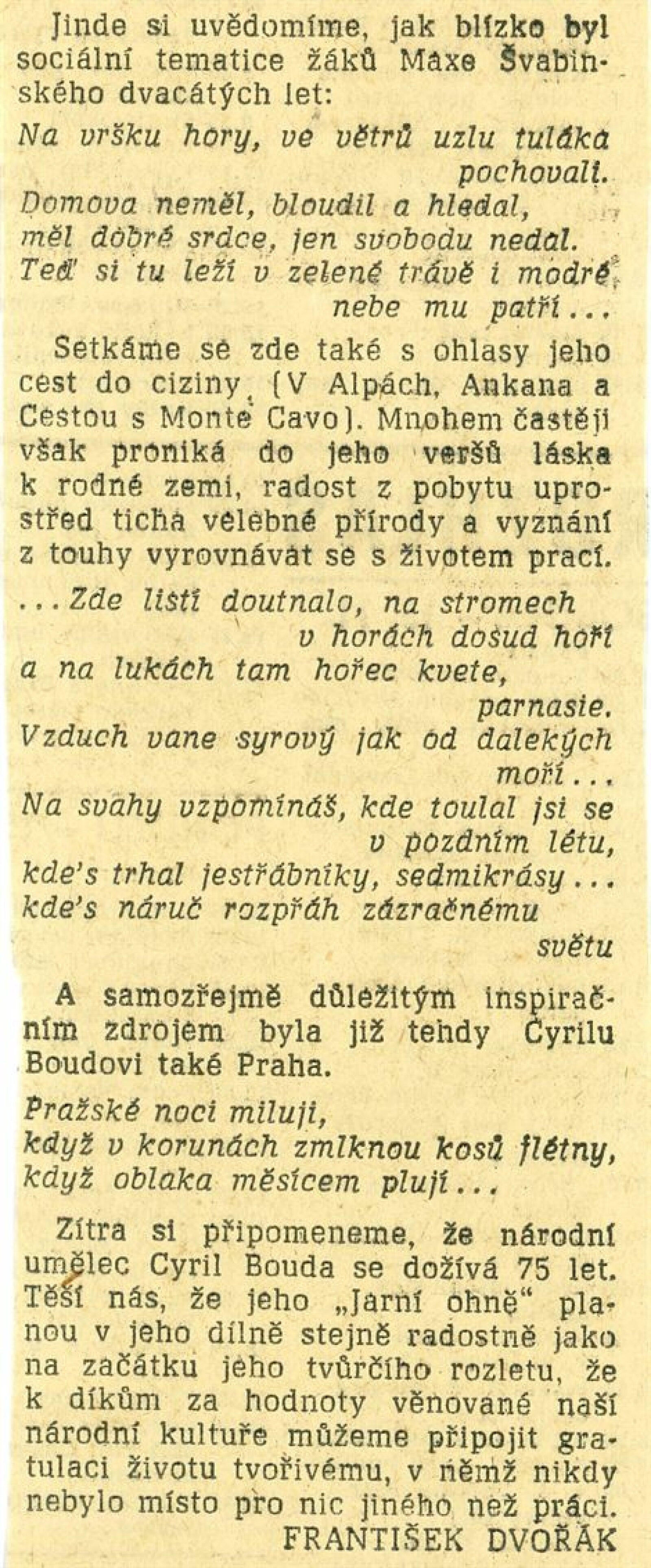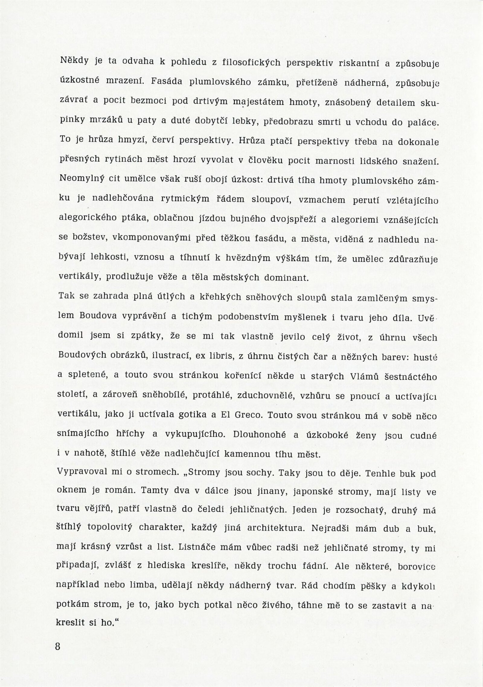 pozvánka, katalog DPK (společný s GVŠ Praha), úvodní slovo na vernisáži (Helena Kusáková-Knozová), seznam prací pro GVŠ Praha, provozní korespondence (SČVU, NG, DU), korespondence o převzetí výstavy (SČVU), žádost o povolení výstavy, recenze v tisku, parte Cyrila Boudy, pozvánka převzaté výstavy (Galerie Václava Špály v Praze), informační leták, katalog (Galerie Josefa R. Vilímka), leták k výstavě v Boskovicích (1976)