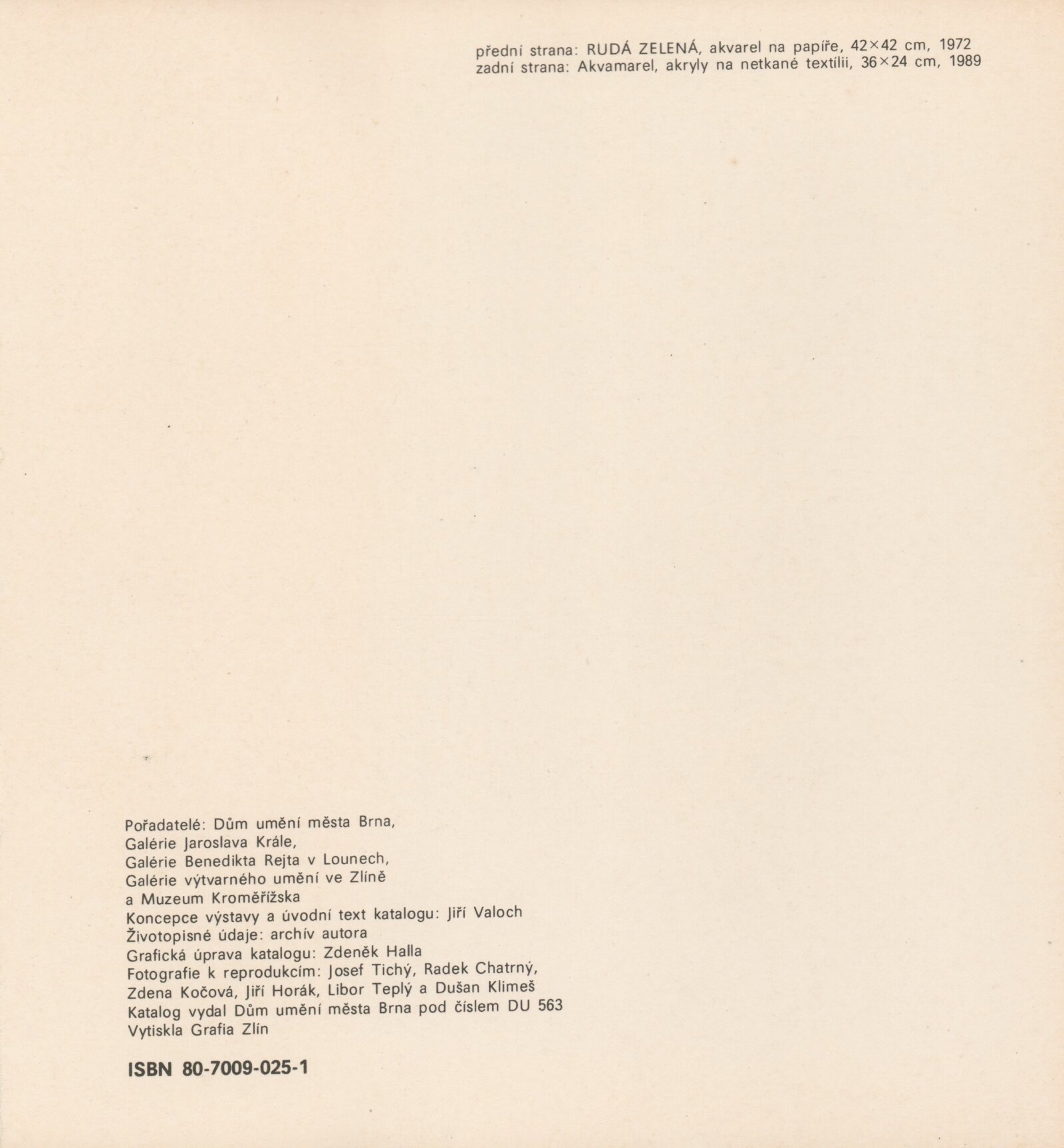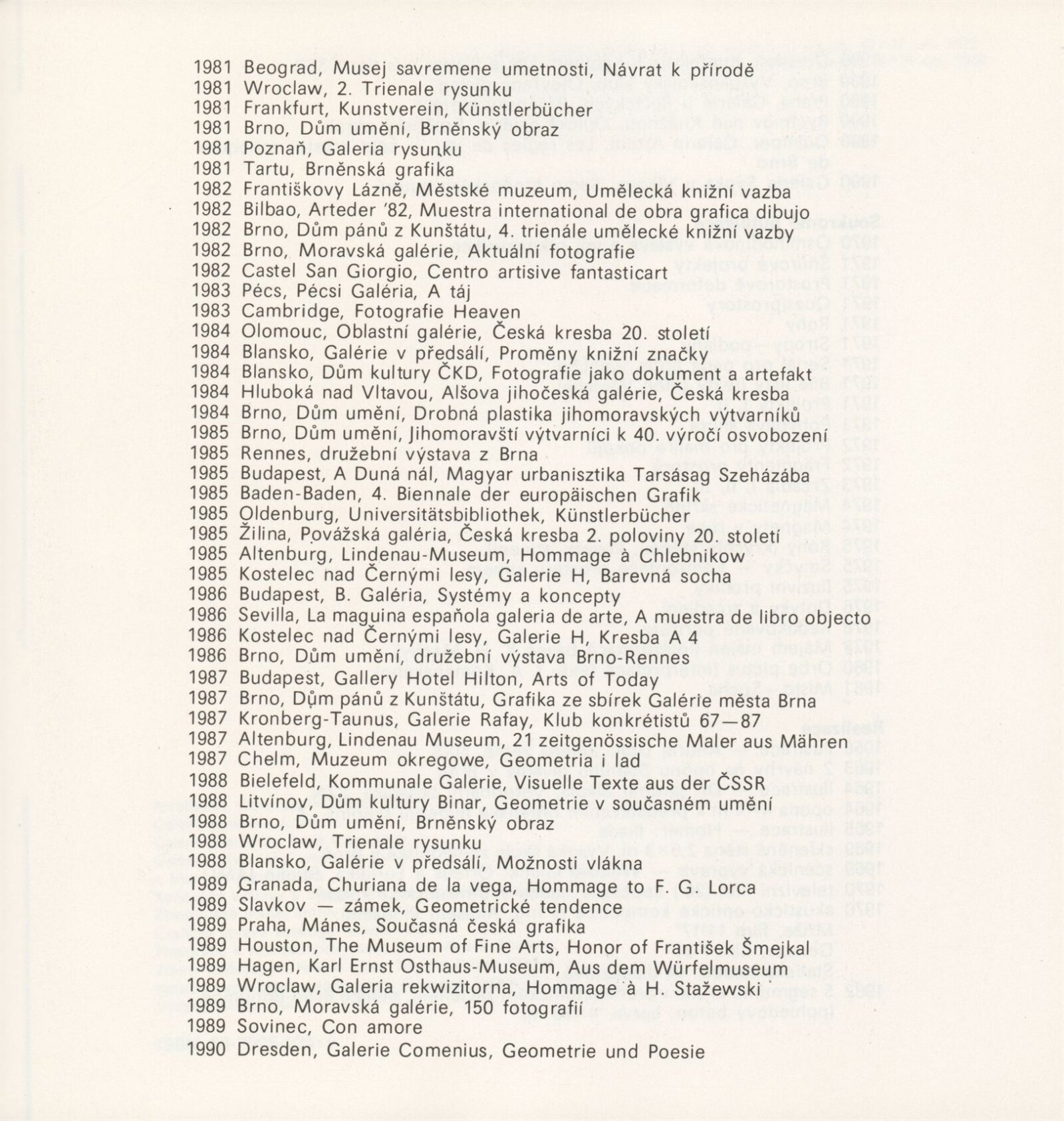 pozvánka , katalog , fotografie děl, výstavy a vernisáže, CD sken, pozvánka na tisk. konferenci, provozní korespondence, smlouva o výpůjčce, předávací protokol, recenze v tisku, poznámky, pozvánky z převzaté výstavy (Zlín), digitalizovaný videozáznam výstavy z archivu Aleše Záboje (29.12.1990, 0:22, S-VHS, 1990/04/25)