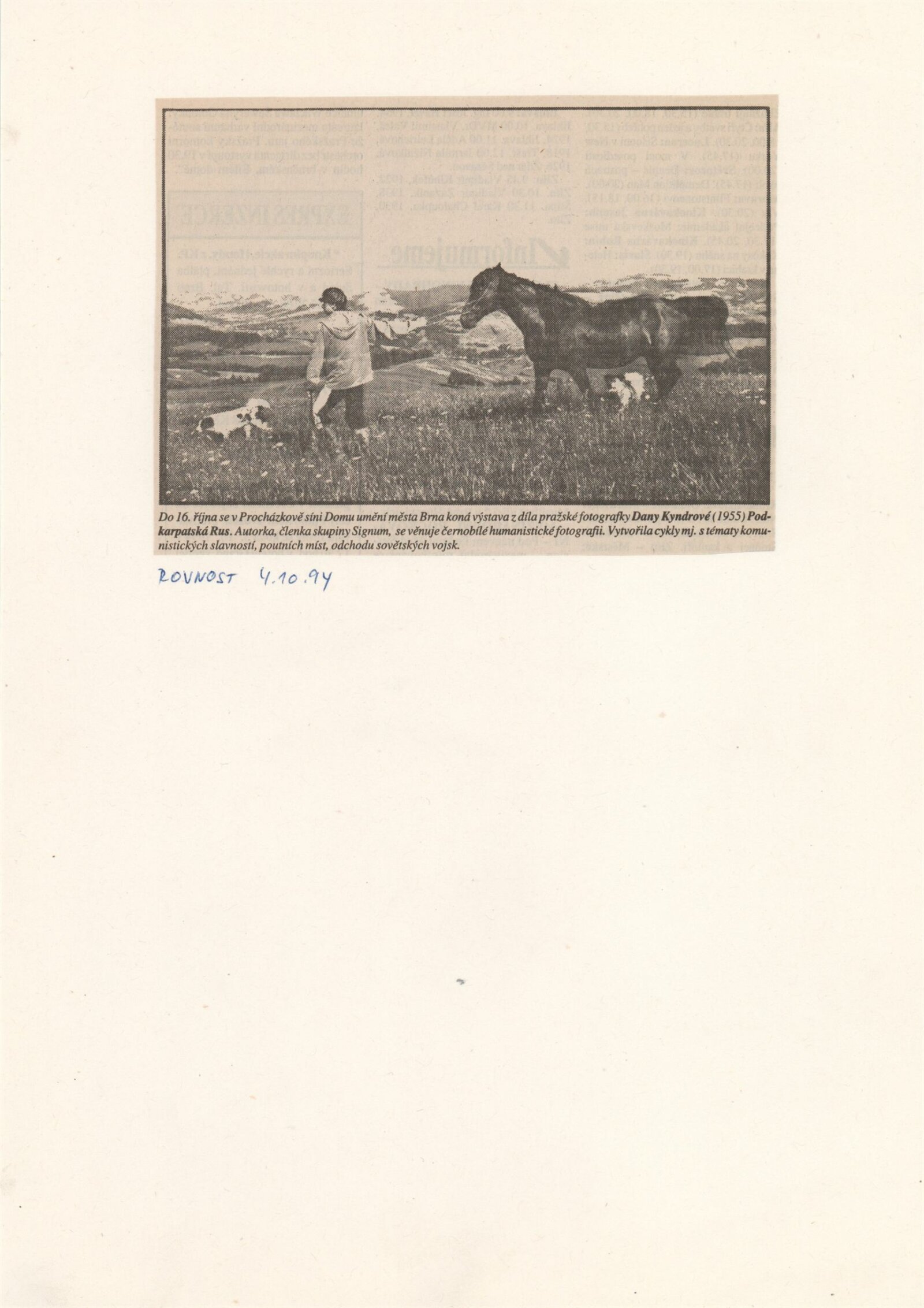 Dana Kyndrová. Fotografie: Dům umění města Brna, Procházkova síň, 8. 9. – 16. 10. 1994 / Text autorka. - Brno: DUmB, - 1 skládačka (6 s., obr.) DU 976