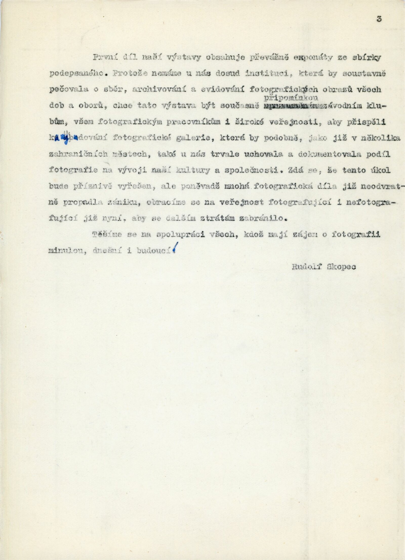 společná pozvánka DPK 74–76, katalog, strojopis textu katalogu, zápis z jednání o přípravě výstavy, návrh instalace výstavy, korespondence (Rudolf Skopec, Adolf Kroupa, J. Bouček, provozní korespondence), recenze v tisku