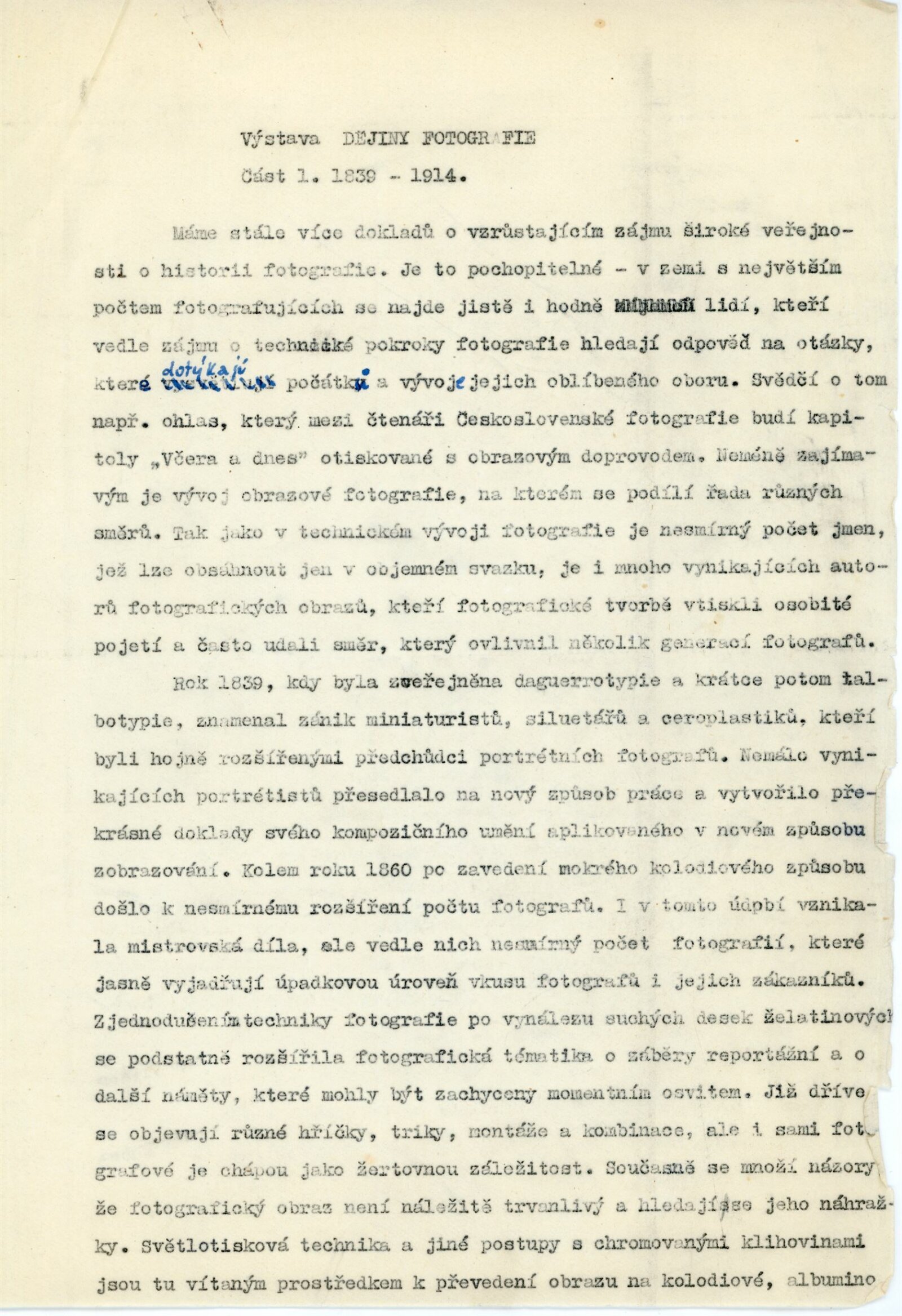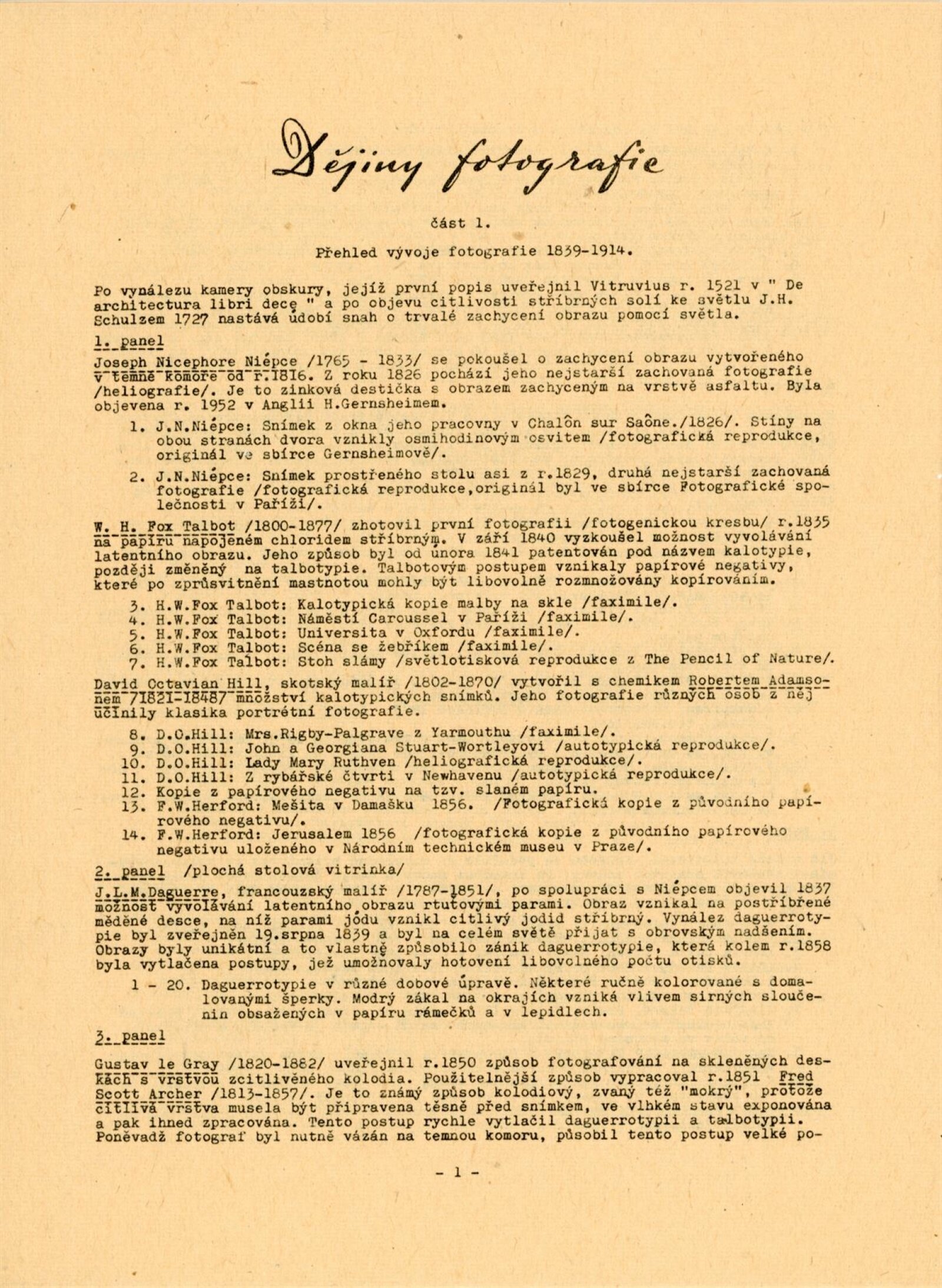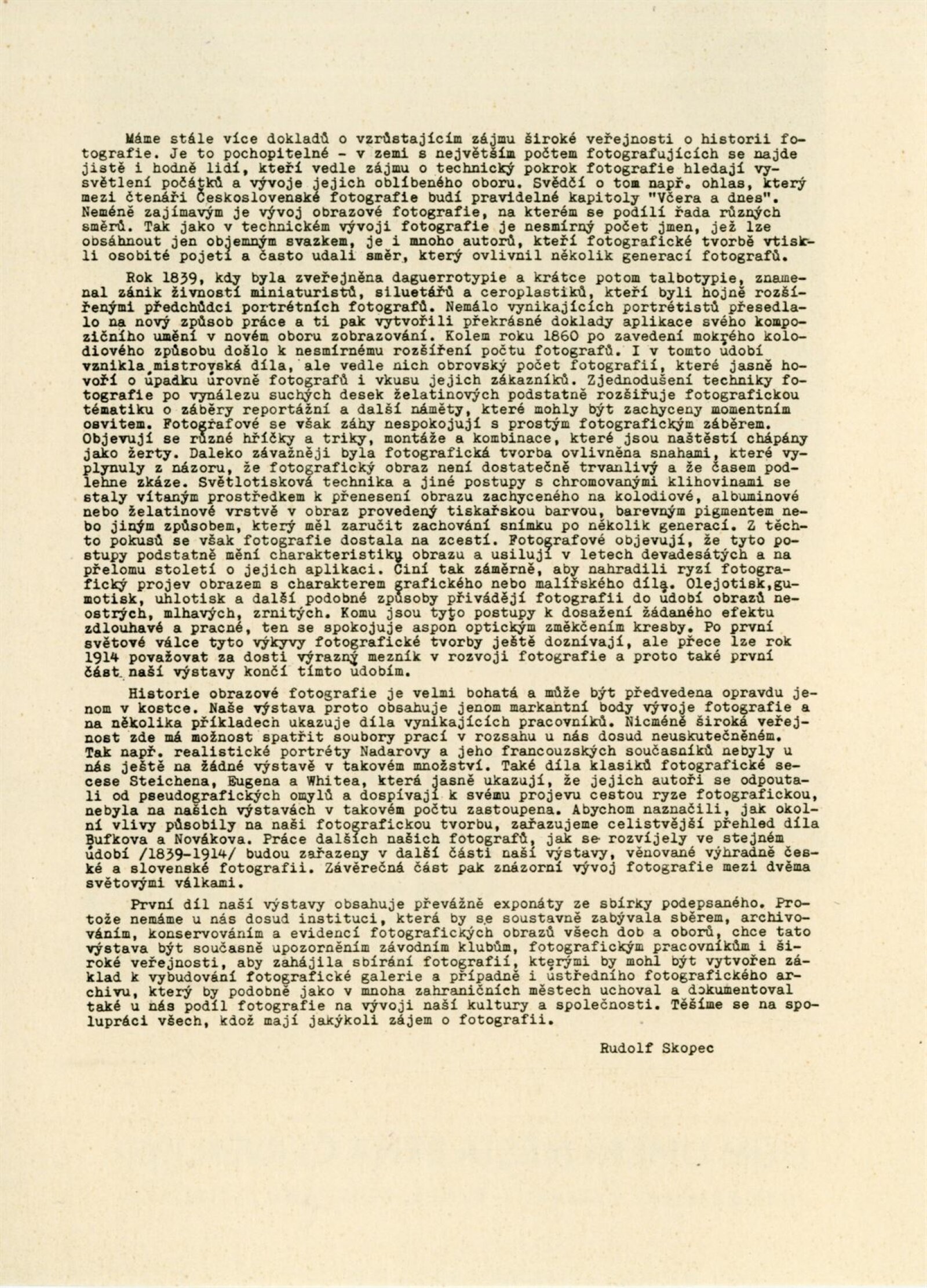 Dějiny fotografie. 1. 1839–1914: Dům umění města Brna / Dům pánů z Kunštátu, 14. výstava Kabinetu fotografie Jaromíra Funka, 2. 6. – 3. 7. 1960 / Text: Rudolf Skopec. – Brno: DUmB, 1960. – 8 s., DPK 76. – MG; MMB