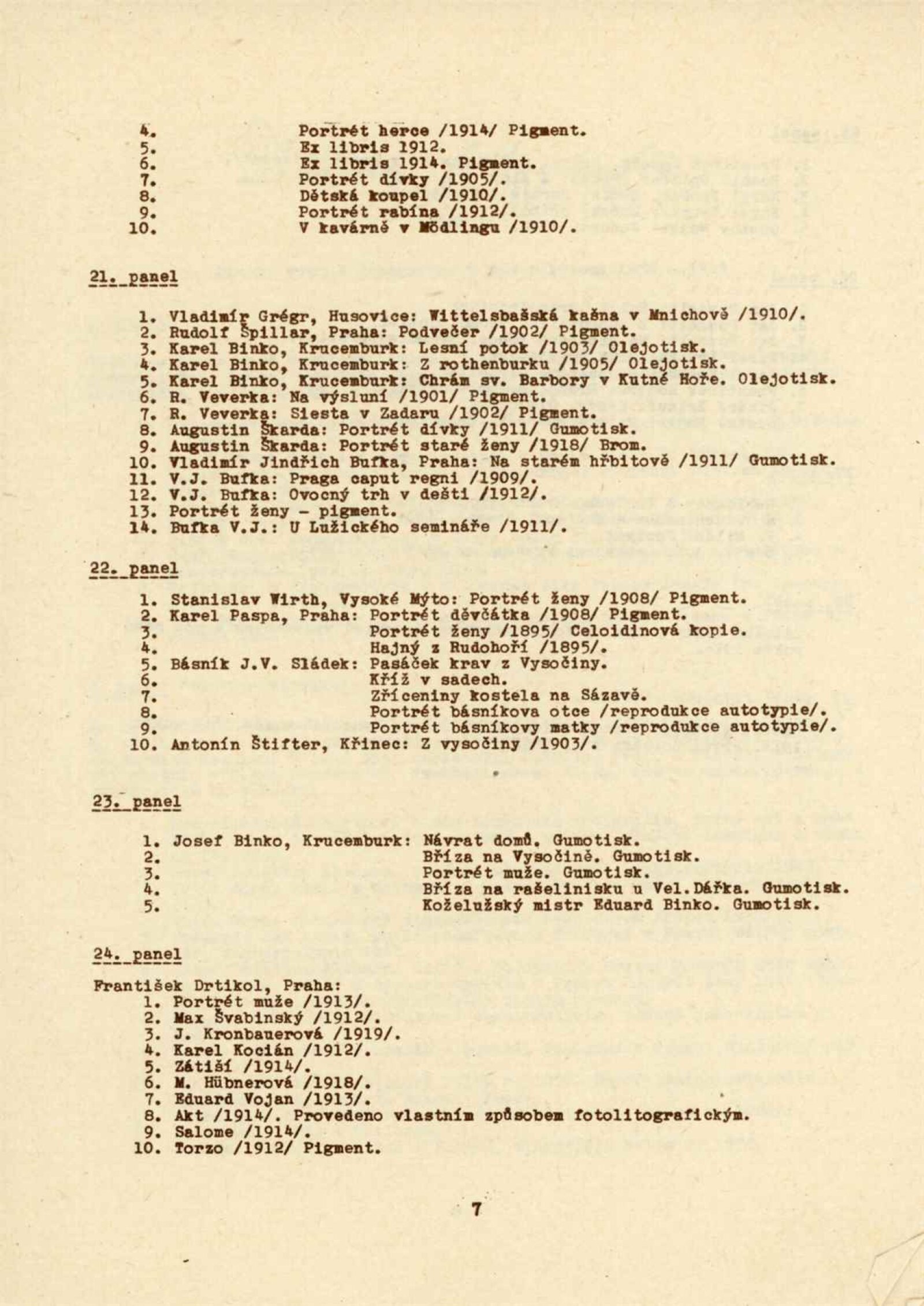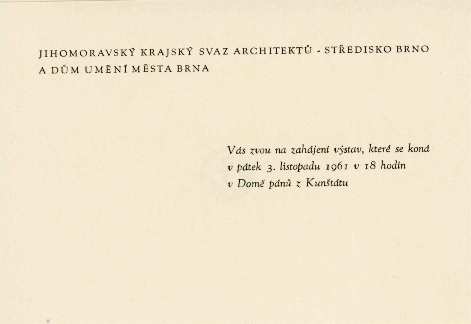 pozvánka, katalog, podmínky pro uspořádání výstavy, žádost o povolení výstavy, korespondence o přípravě a deinstalaci výstavy (Gerta Pospíšilová, Rudolf Skopec, František Brüstl), recenze v tisku