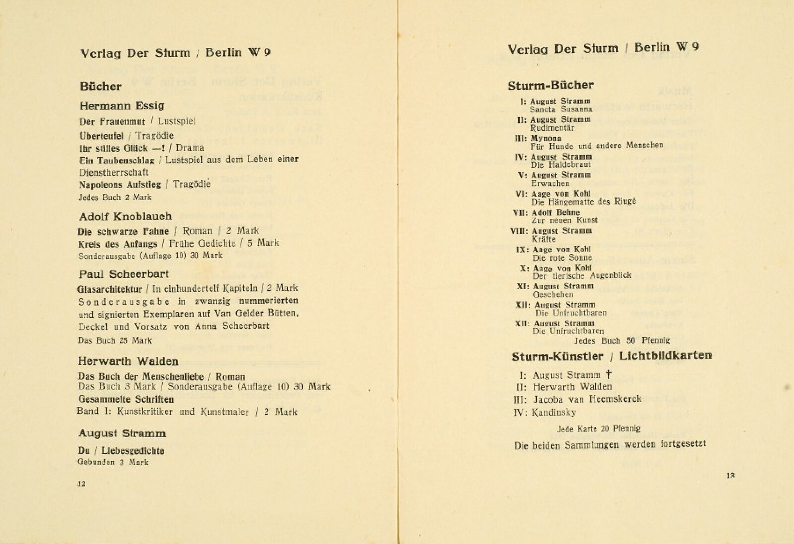 Katalog výstavy je veřejně dostupný v Der Sturm, digitale Quellenedition zur Geschichte der Internationalen Avantgarde, Abteilung III, Kataloge, https://sturm-edition.de/quellen/kataloge.html#y1916.