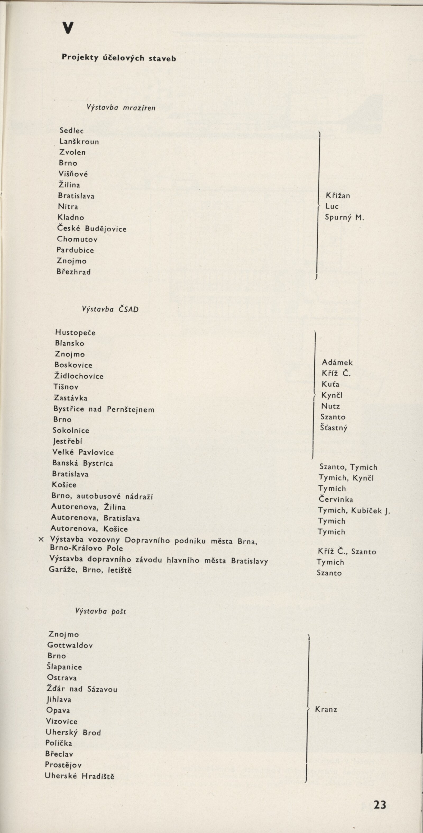 Alexa, Auermüller, K. Černý, Červinka, Gabriel, Herzán, Chlup, Denk, Dufek, Kalivoda, Kočí, Kopřivník, Kramoliš, Krasický, Krejčí, Krejza, Krchňák, Č. Kříž, Z. Kříž, Kuba, Kubíček, Kumpošt, Ladýř, Lang, Ledvina, Luc, Máčel, Machát, Matiovský, Nutz, Palčík, Pospíšil, Poříska, Prokop, Ryška, E. Říha, J. Říha, Smutný, Spurný, Steinhauser, Syrová, Szanto, Ševčík, Šťastný, Šteflíček, Tišnovský, Tureček, Tymich, Unzeitig, Valenta, Víšek, Volák, Zabel, Zavřel, Zounek, Železný