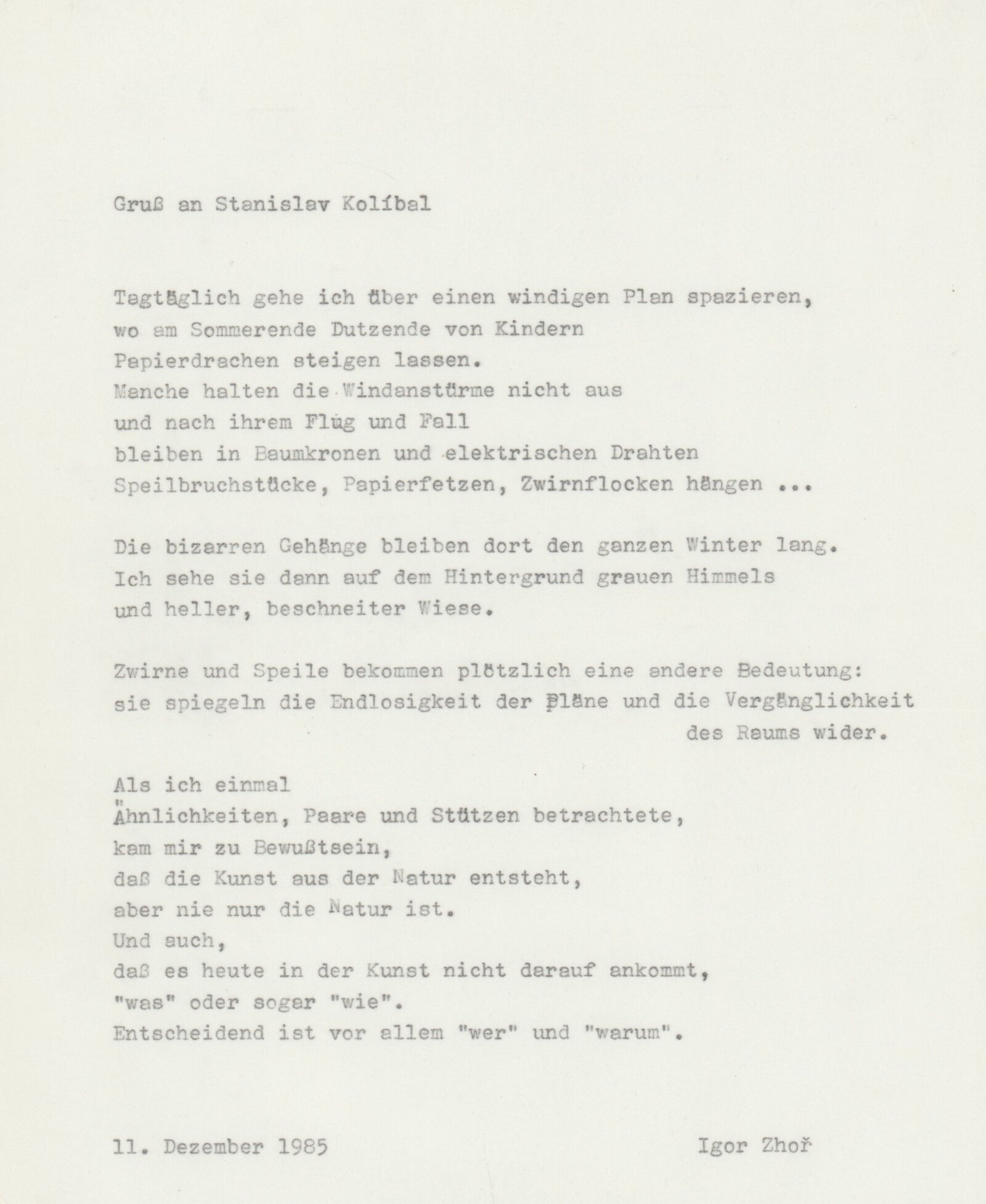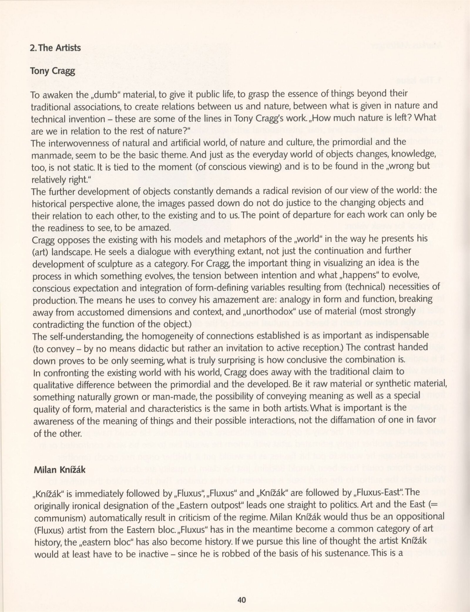Tony Cragg, Rudolf Fila, Milan Knižák, Stanislav Kolíbal, Joseph Kosuth, David Rabinowitch, Arnulf Rainer, Nancy Spero, Adriena Šimotová, Jiří Valoch