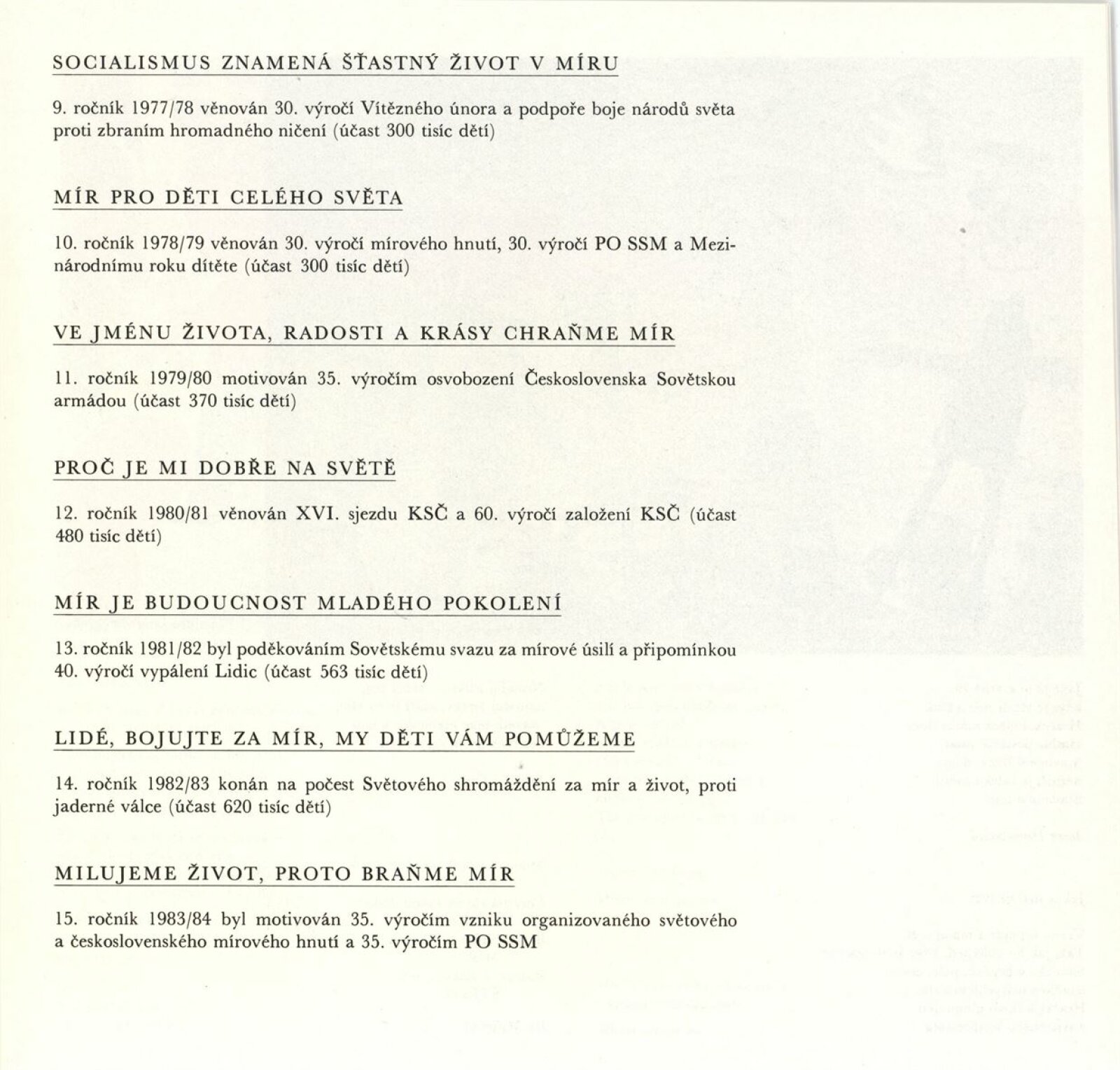 Děti, mír a umění 1969–1984, 15. ročník dětské výtvarné a literární soutěže